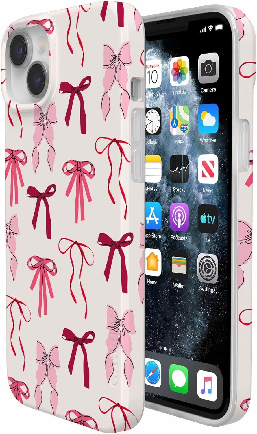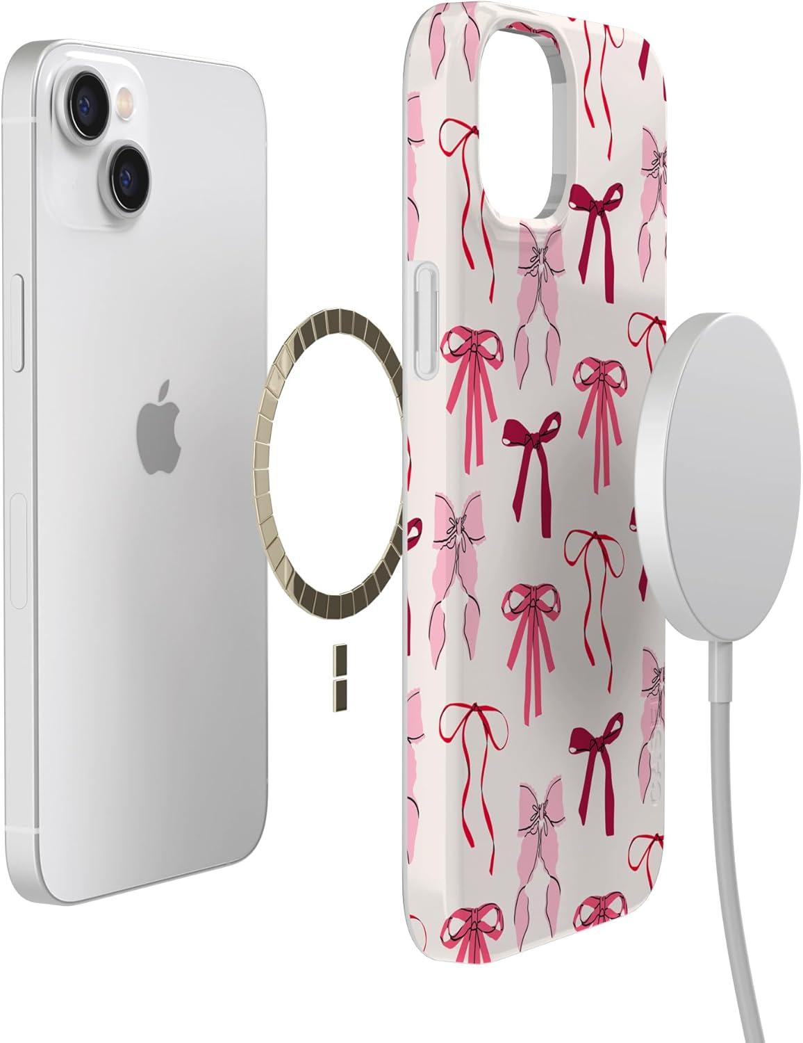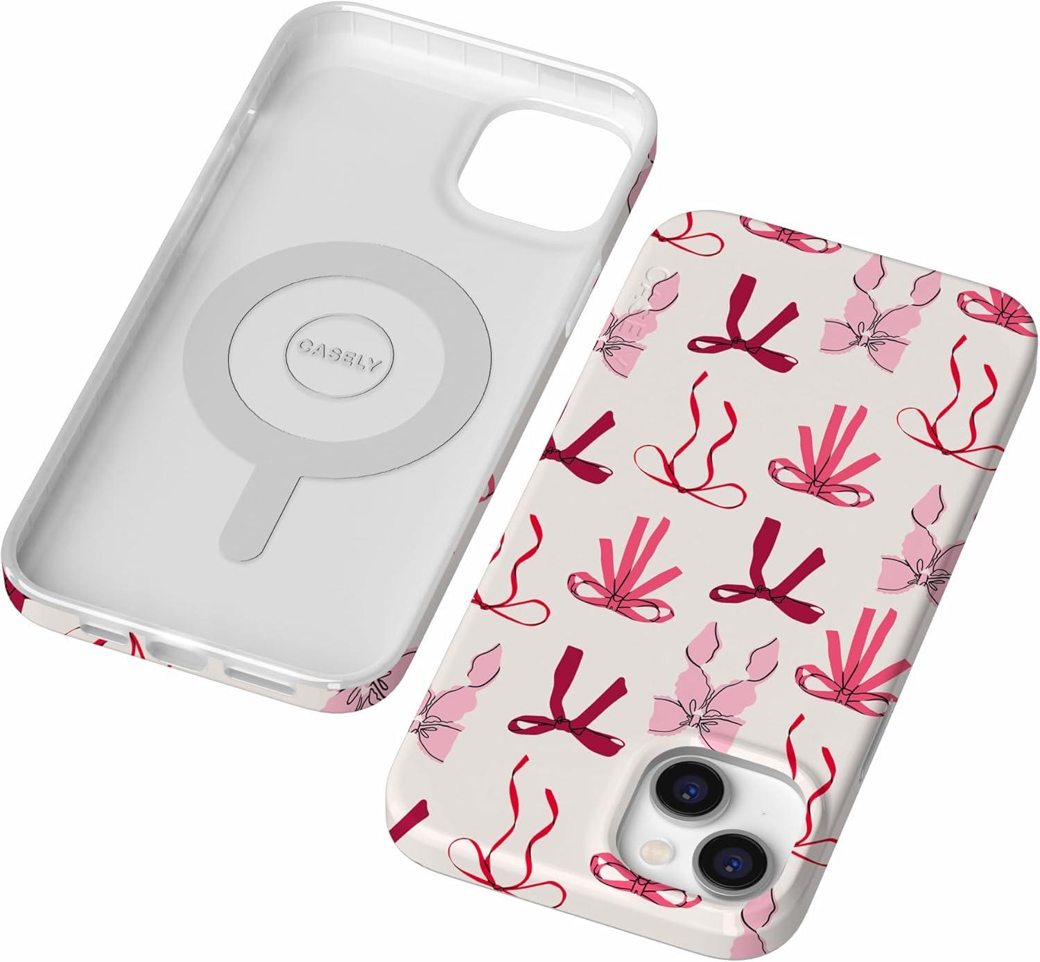 Casely iPhone 14 Plus Case | Palermo | Dippin’ Daisy’s Italian Coast | Compatible with MagSafe(Lover Girlie | Pink Bows)