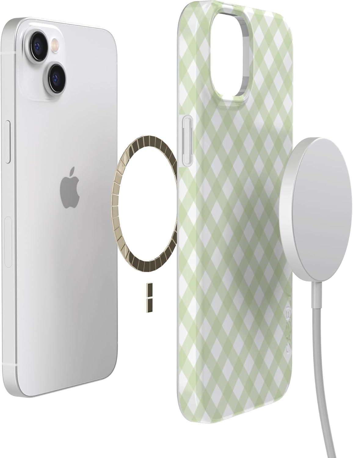Casely iPhone 14 Plus Case | Palermo | Dippin’ Daisy’s Italian Coast | Compatible with MagSafe(Mint Lattice | Sunday Best)