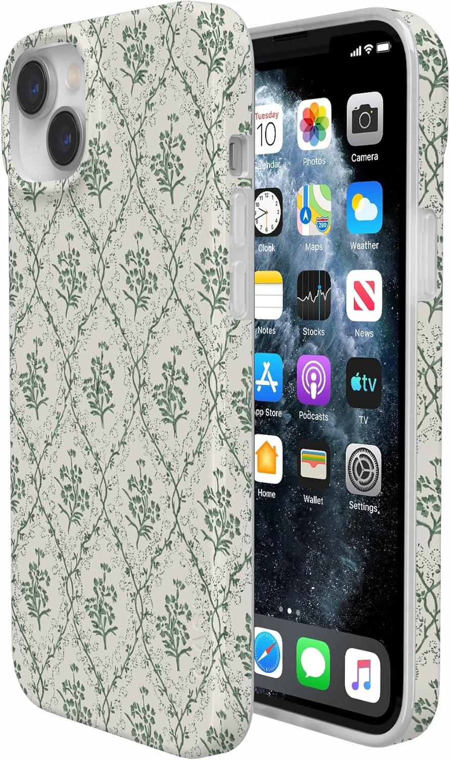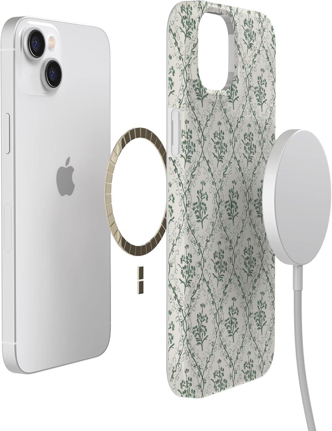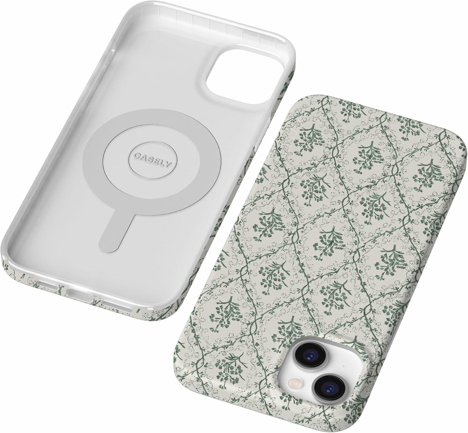 Casely iPhone 14 Plus Case | Palermo | Dippin’ Daisy’s Italian Coast | Compatible with MagSafe(Sage Tapestry | Floral Vines)