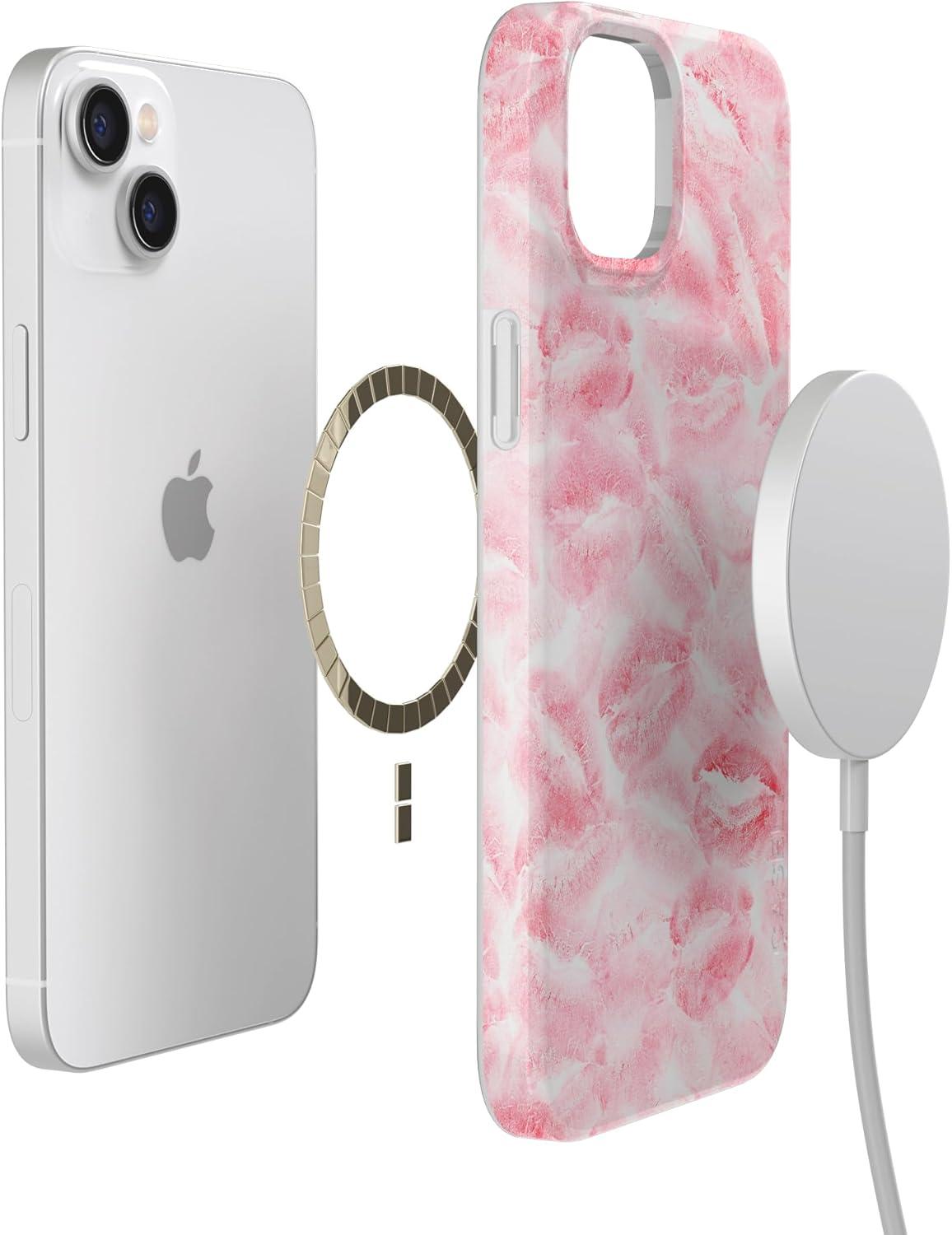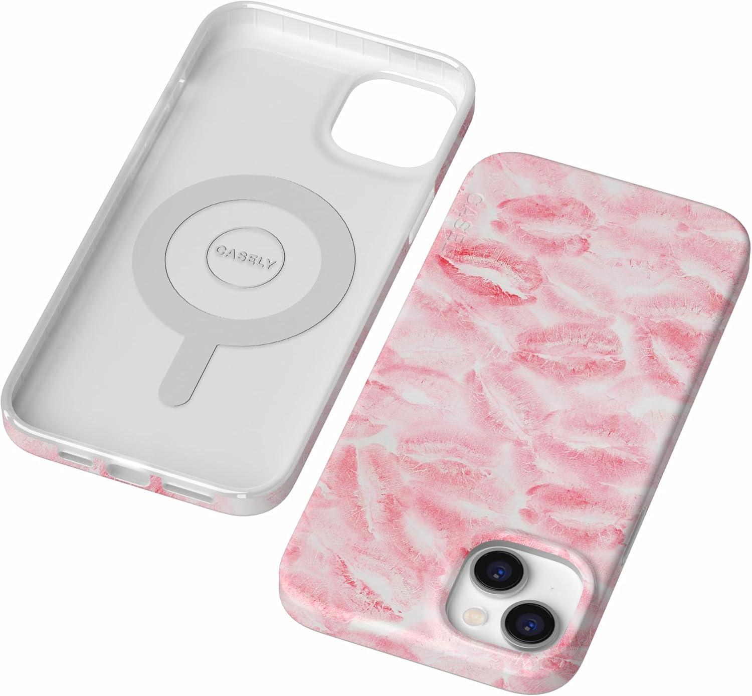 Casely iPhone 14 Plus Case | Palermo | Dippin’ Daisy’s Italian Coast | Compatible with MagSafe(Sealed with a Kiss | Pink Lipstick)