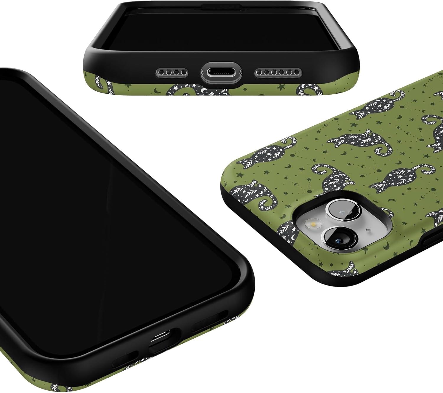 Every witch needs her familiar—meet the Sabrina’s Bestie | Black Cats Case. Featuring playful black cats on a green backdrop, this Halloween phone case is equal parts mystical and cute. A must-have for cat lovers and spooky season fans.