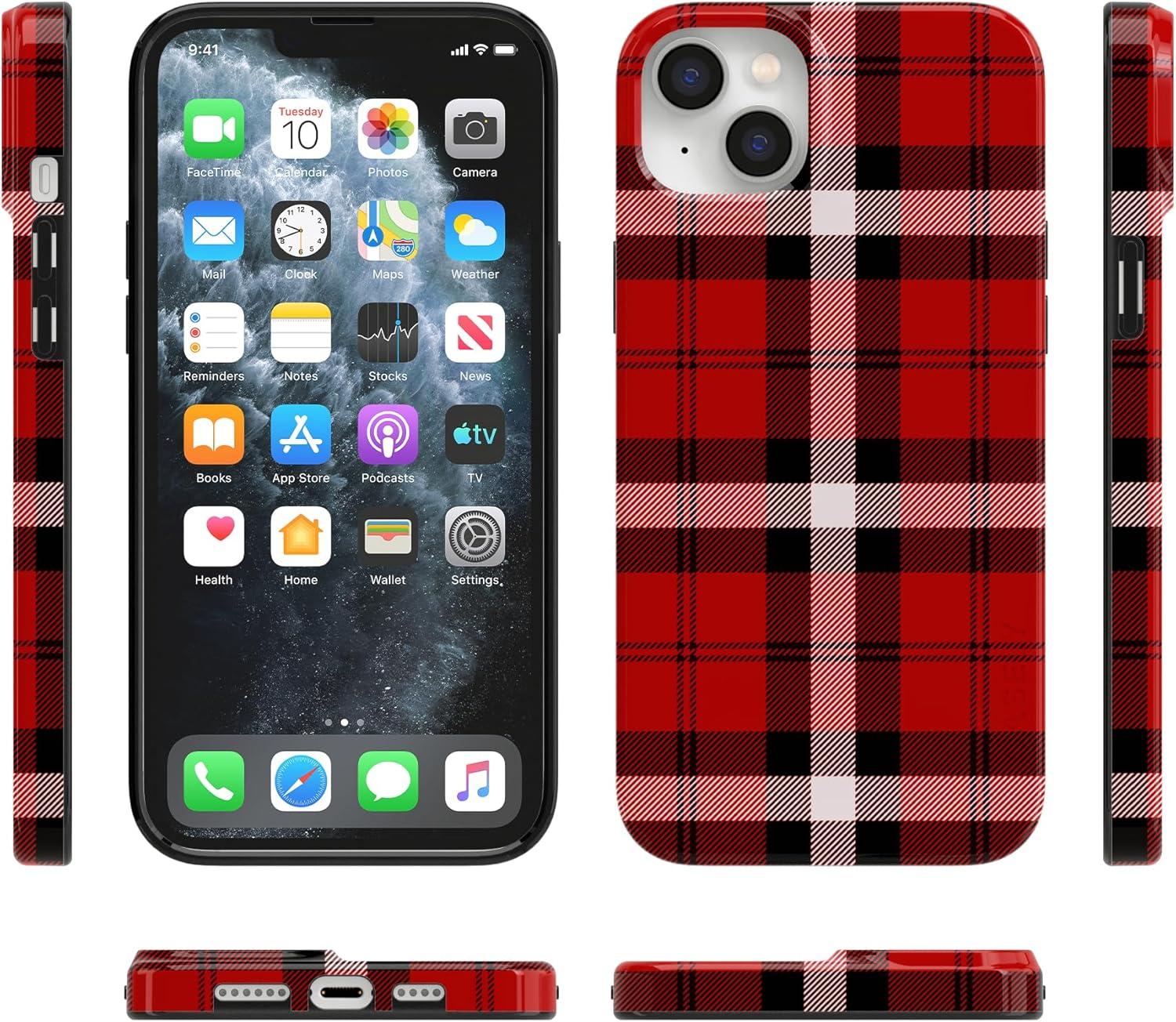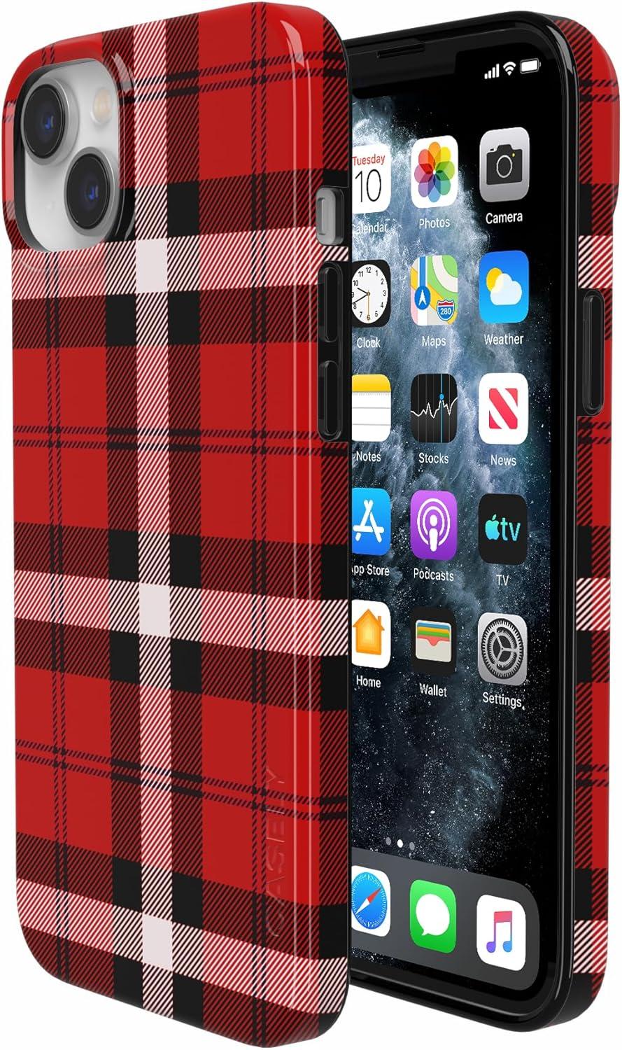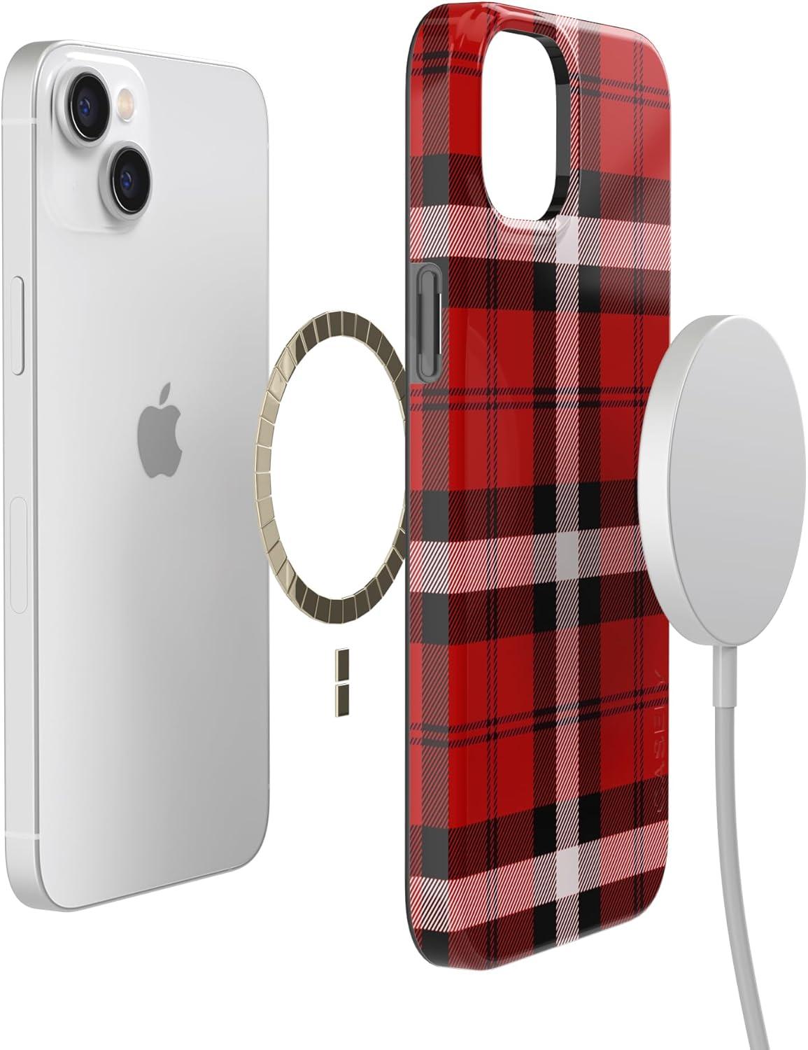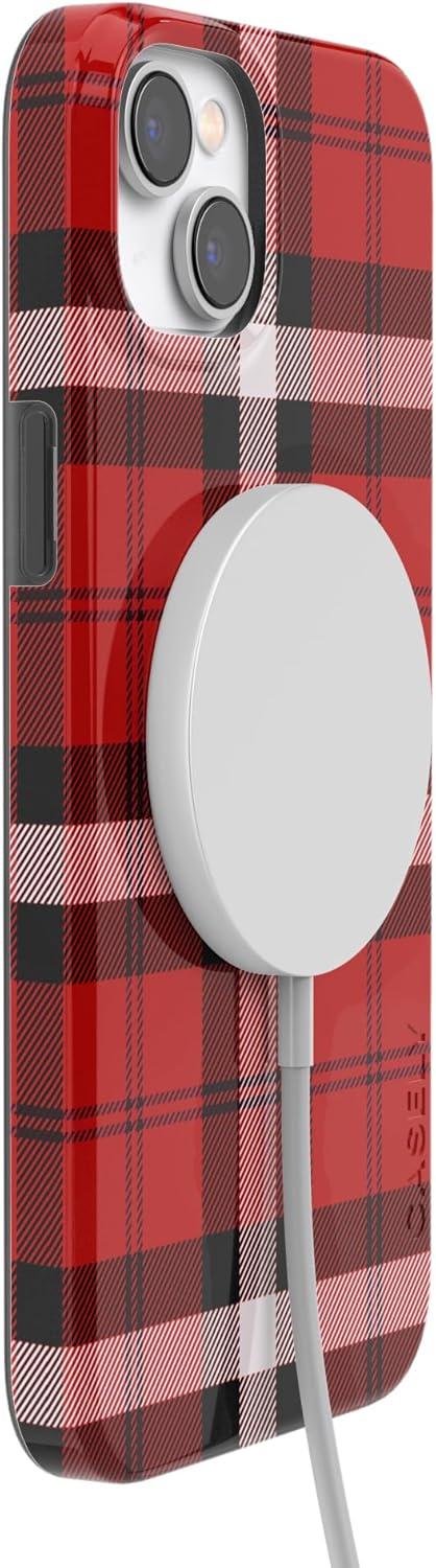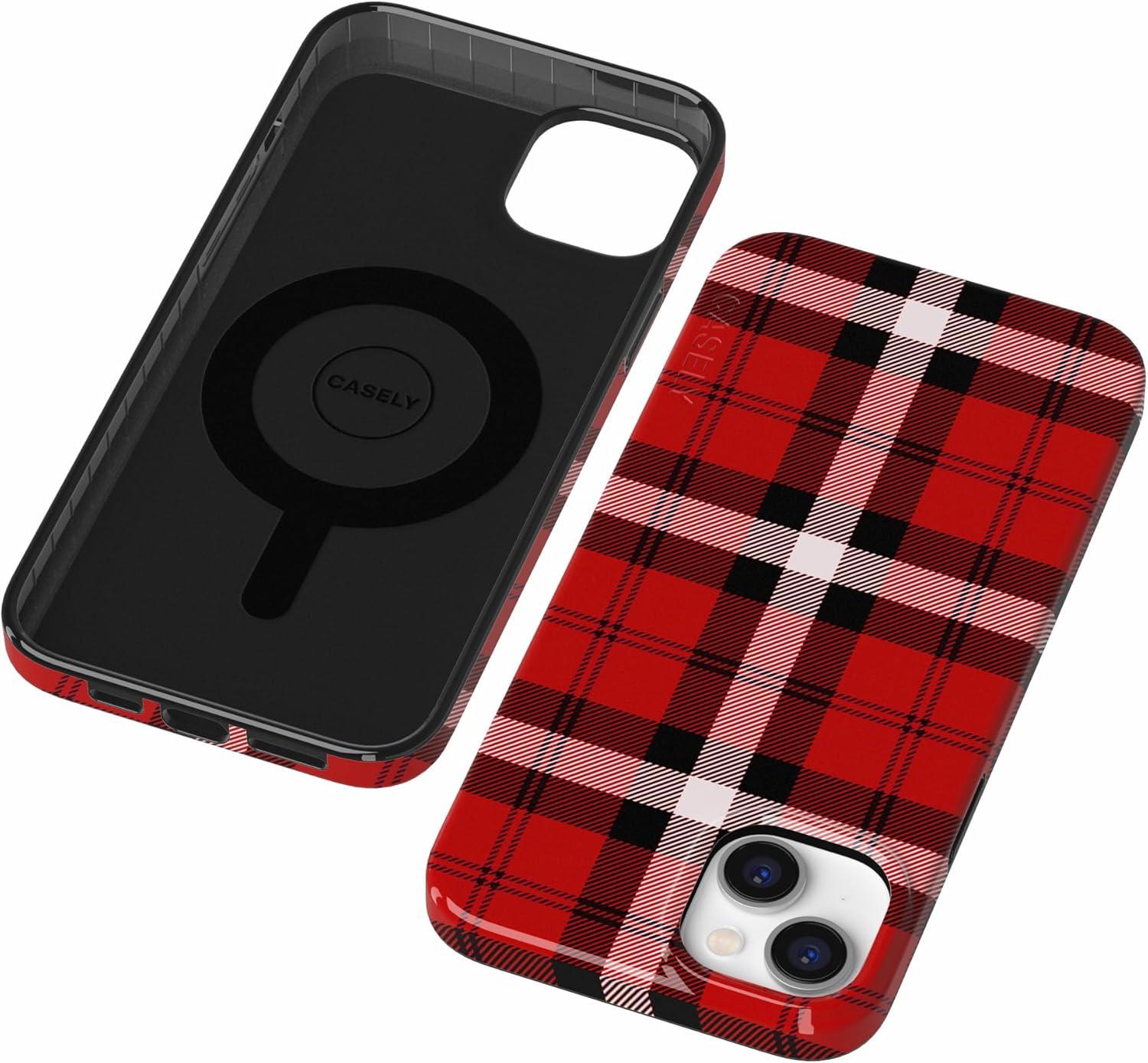 Casely iPhone 14 Plus Case | Van Gogh | Sunflowers Floral | Compatible with MagSafe | Classic Ultra Thin Design(As if! | Red Plaid)