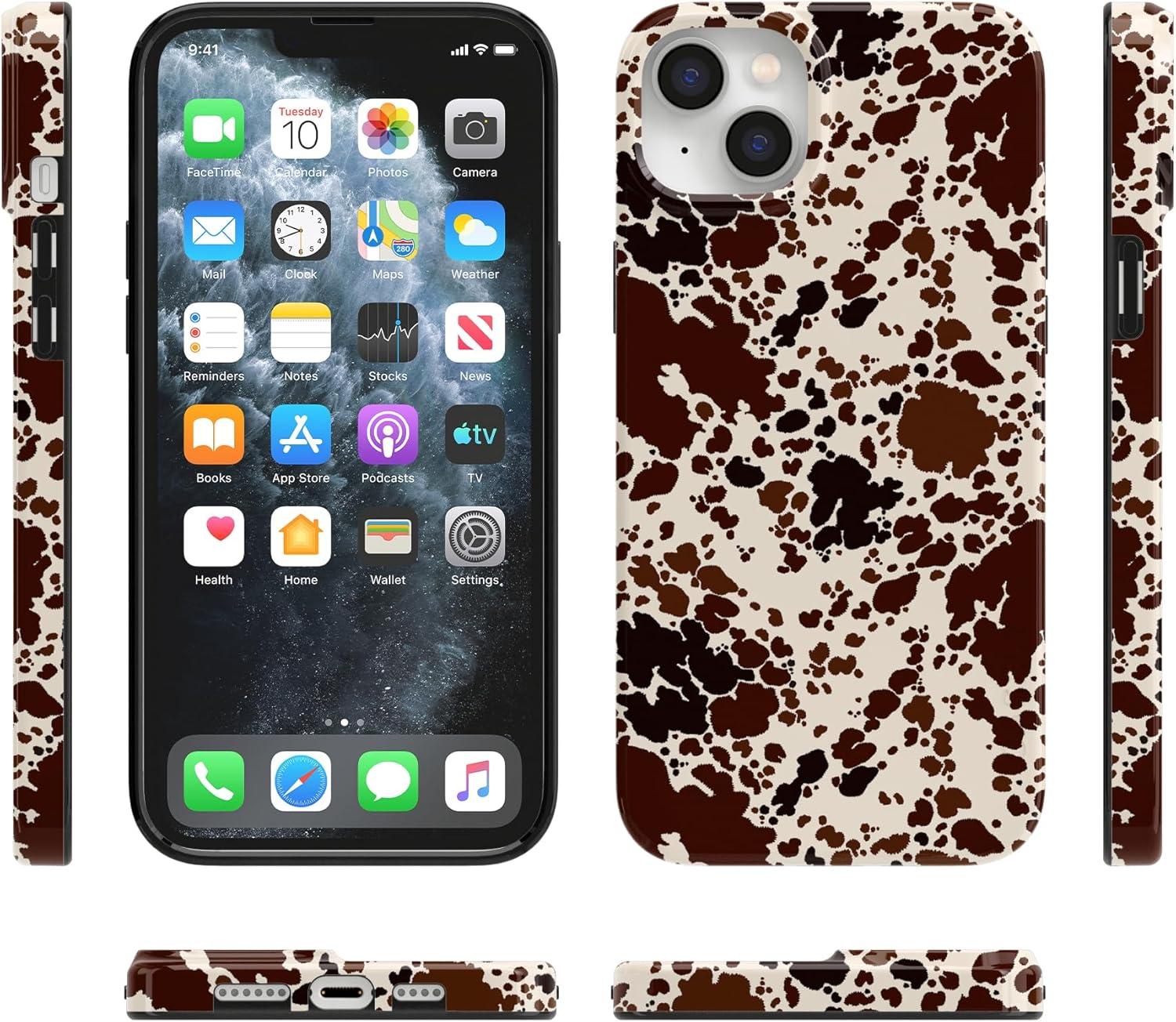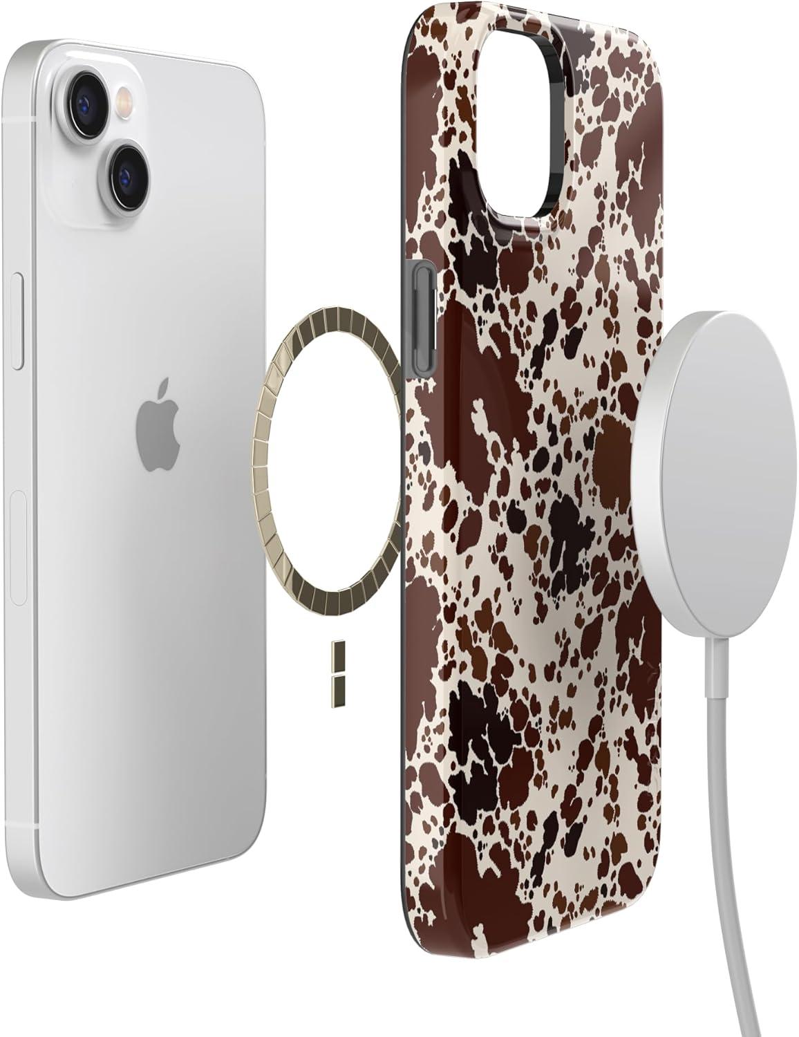 Casely iPhone 14 Plus Case | Van Gogh | Sunflowers Floral | Compatible with MagSafe | Classic Ultra Thin Design(Cowgirl Envy | Cow Print)