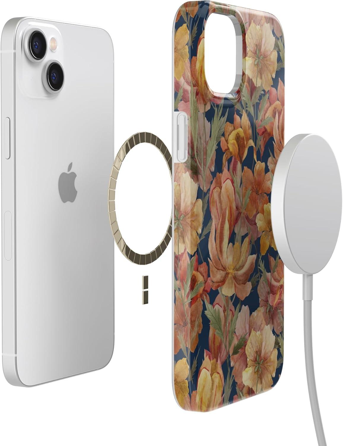 Casely iPhone 14 Plus Case | Van Gogh | Sunflowers Floral | Compatible with MagSafe | Classic Ultra Thin Design(Fallen Gold | Antique Floral)