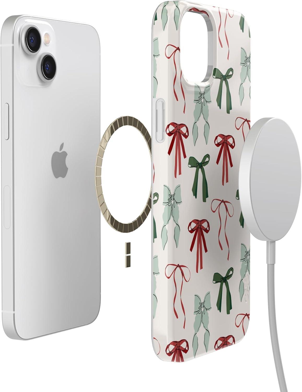 Casely iPhone 14 Plus Case | Van Gogh | Sunflowers Floral | Compatible with MagSafe | Classic Ultra Thin Design(Festive Girlie | Holiday Bows)