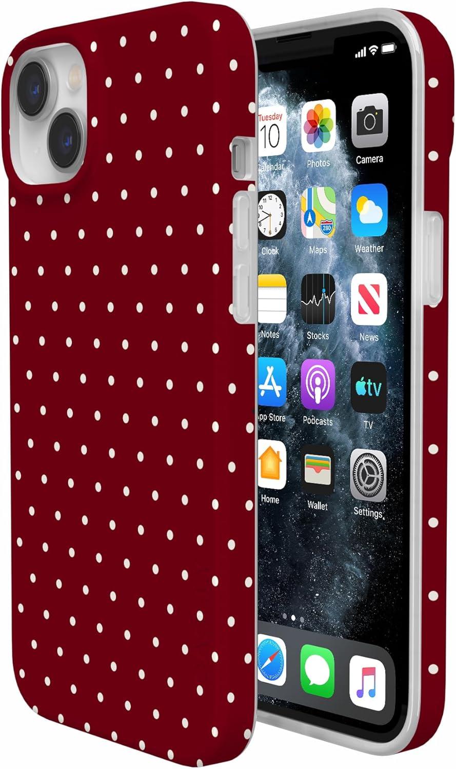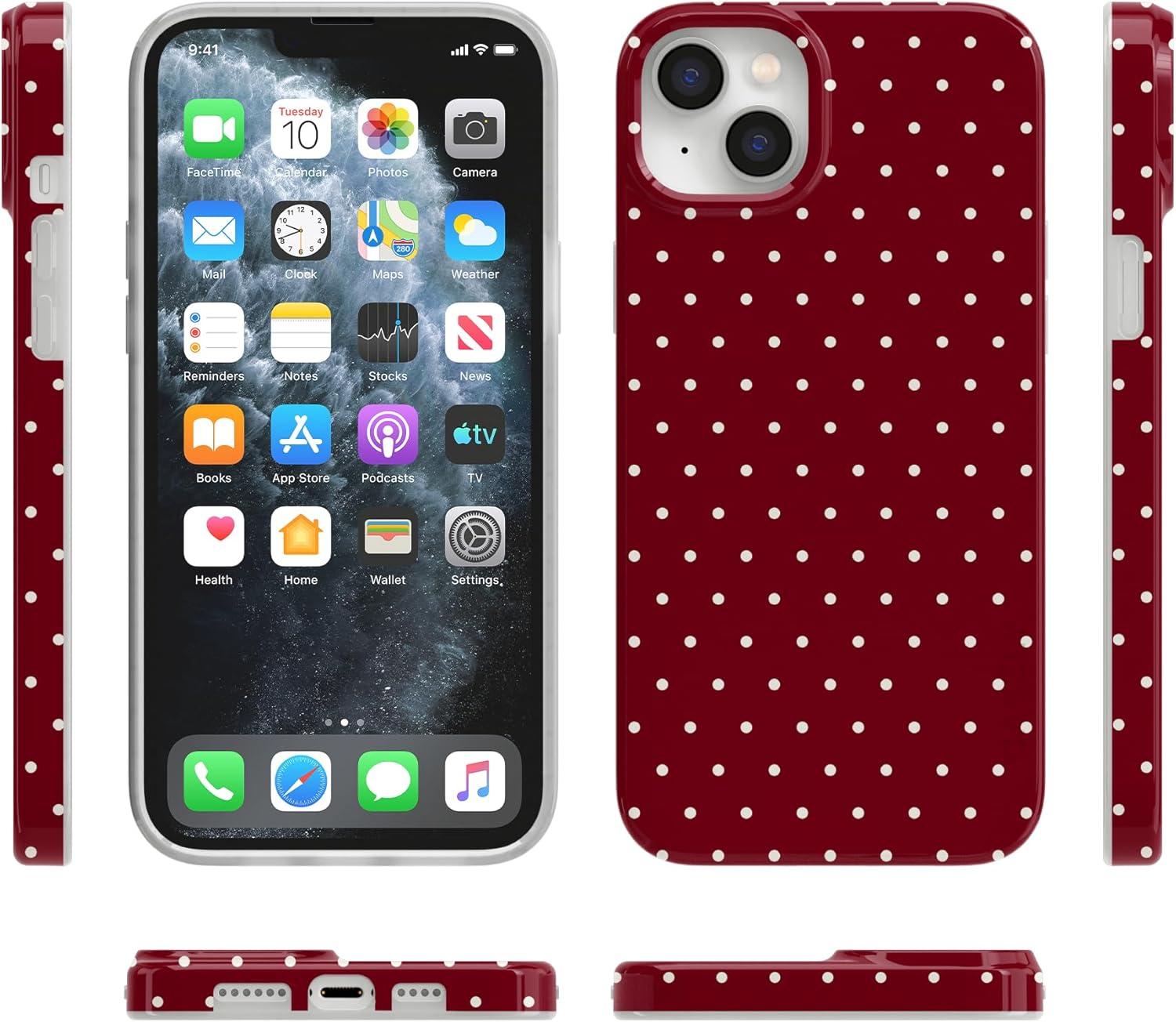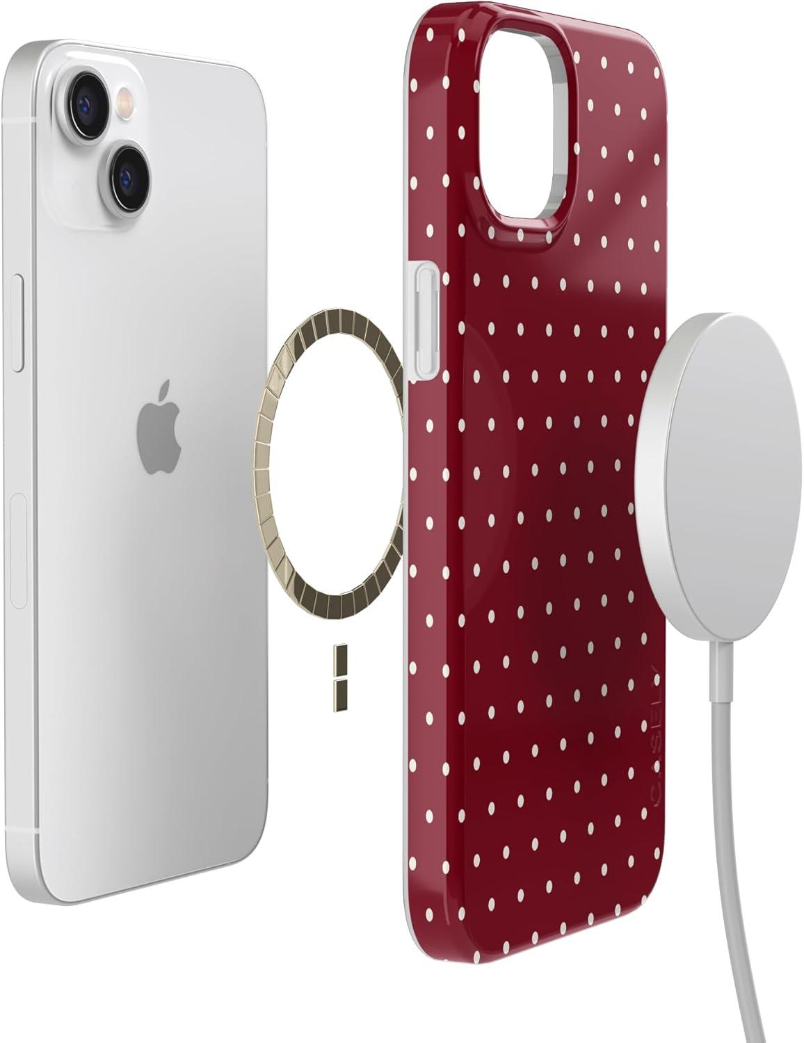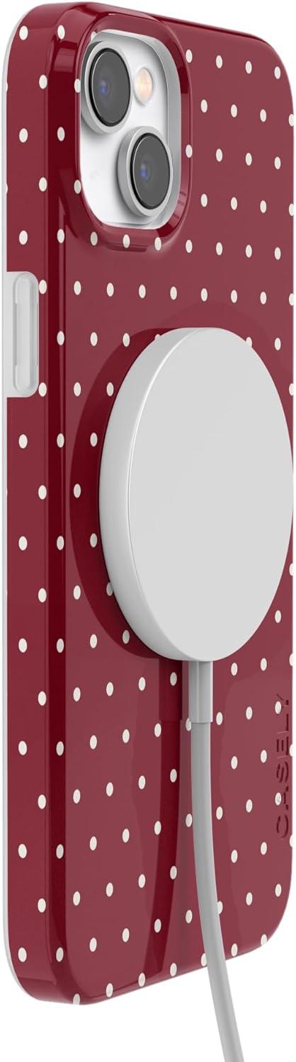 Casely iPhone 14 Plus Case | Van Gogh | Sunflowers Floral | Compatible with MagSafe | Classic Ultra Thin Design(On the Dot | Maroon Polka Dot)