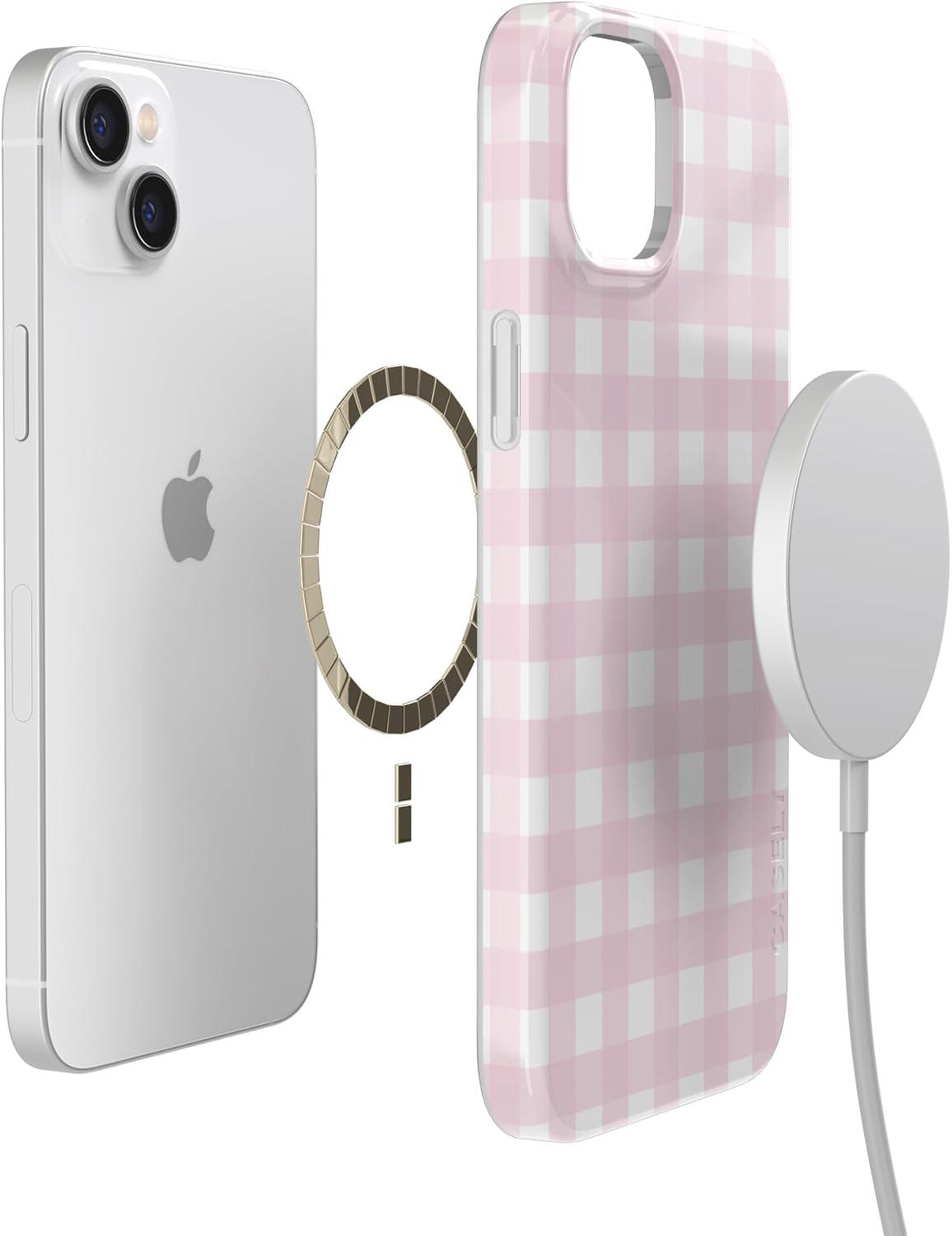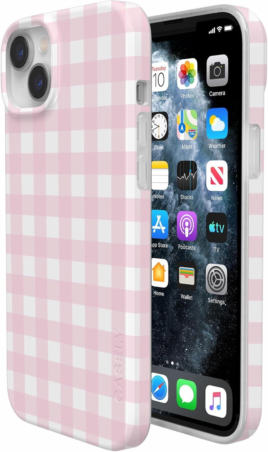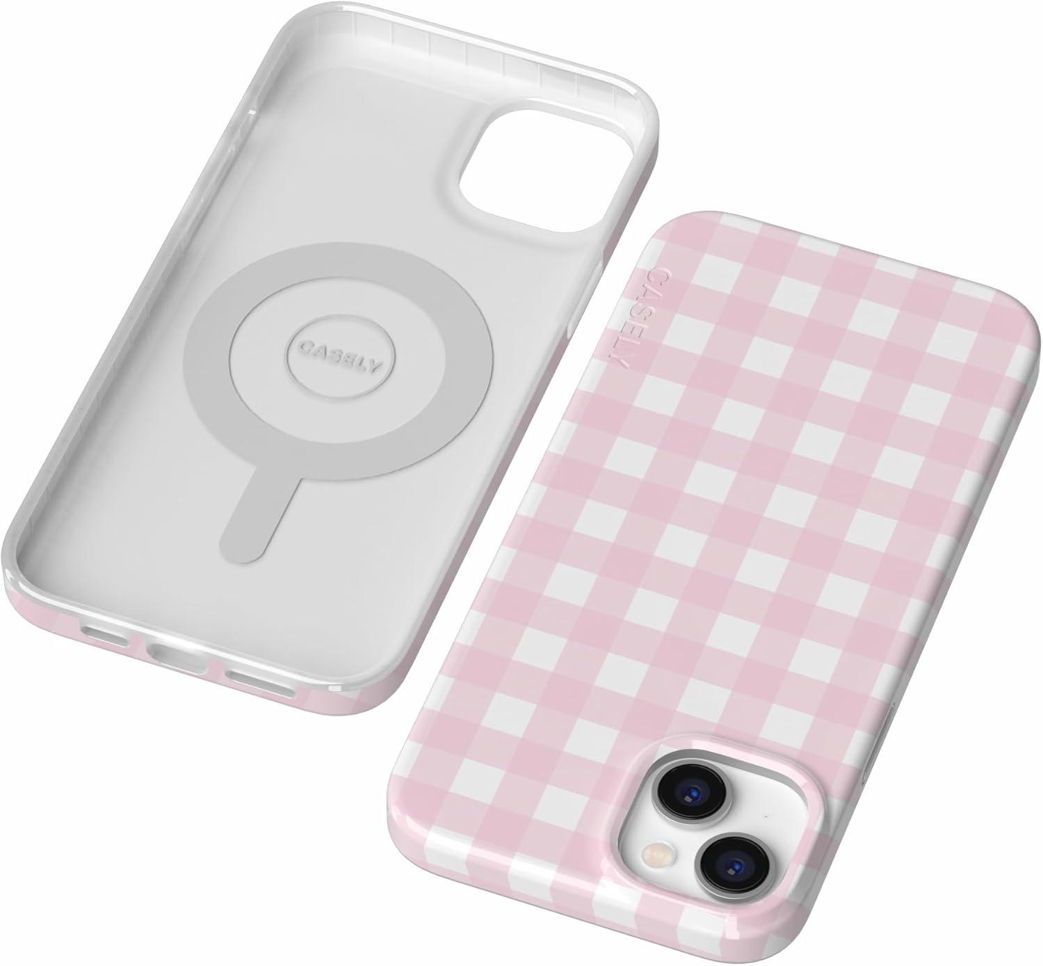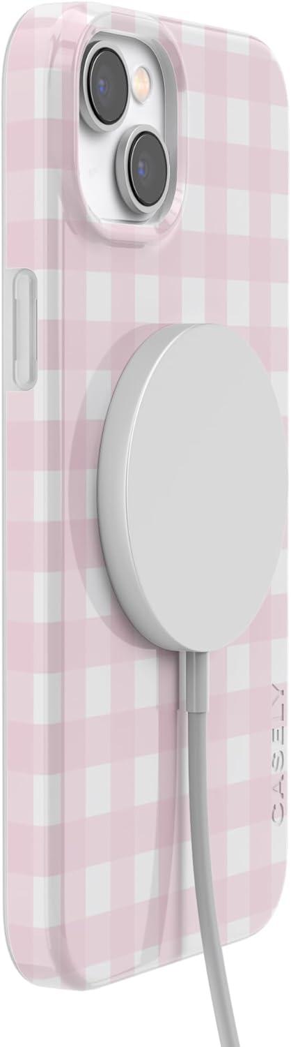 Casely iPhone 14 Plus Case | Van Gogh | Sunflowers Floral | Compatible with MagSafe | Classic Ultra Thin Design(Pink Plaid | Sunday Best)