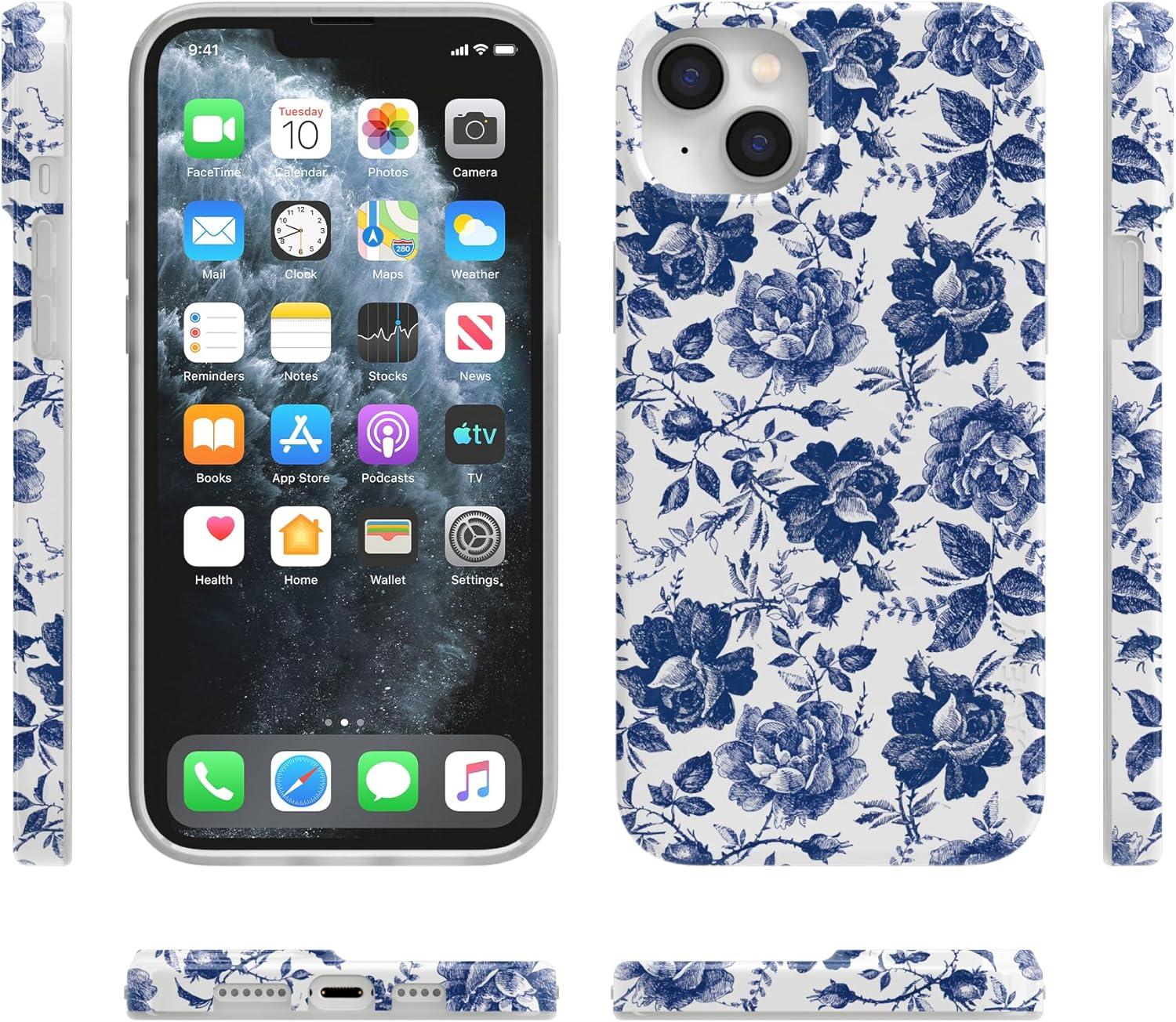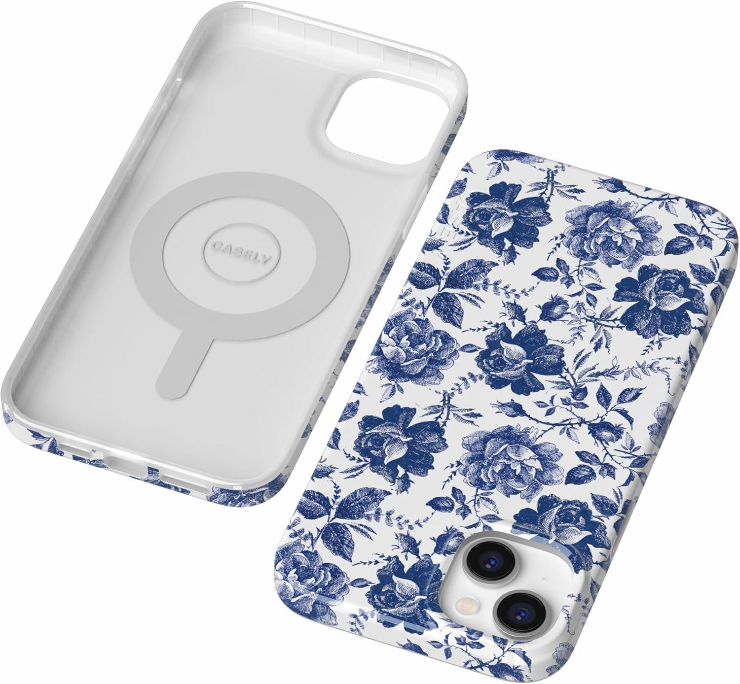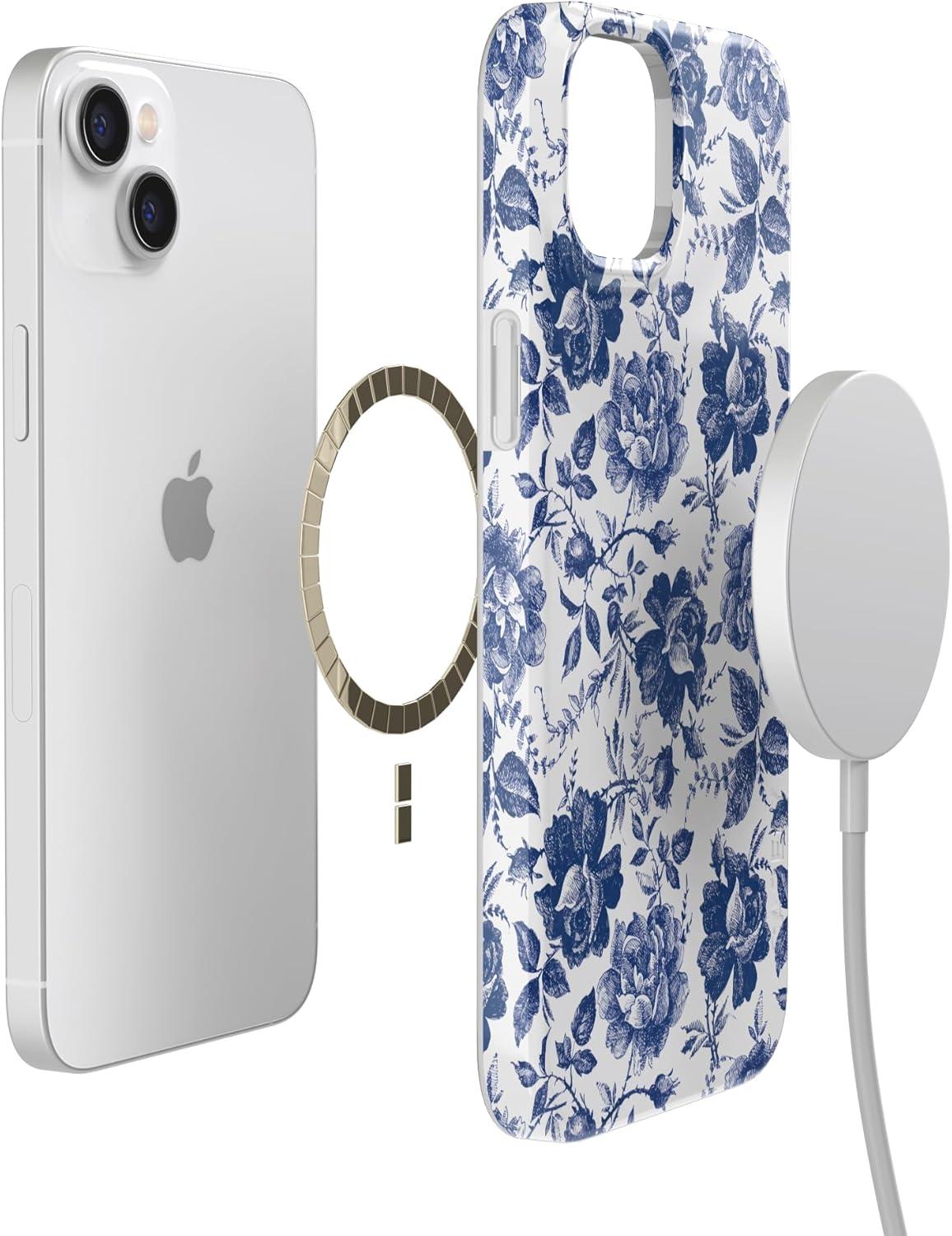 Casely iPhone 14 Plus Case | Van Gogh | Sunflowers Floral | Compatible with MagSafe | Classic Ultra Thin Design(Rose to Fame | Blue & White Floral)