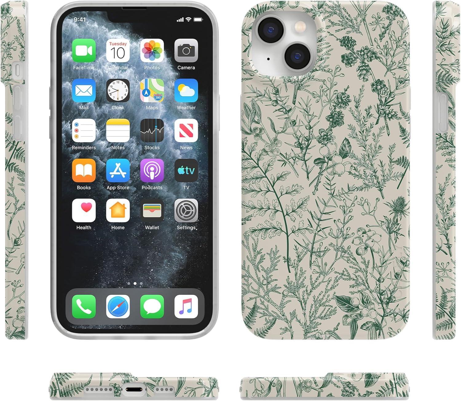 Casely iPhone 14 Plus Case | Van Gogh | Sunflowers Floral | Compatible with MagSafe | Classic Ultra Thin Design(Sage Garden | Green Floral Case)