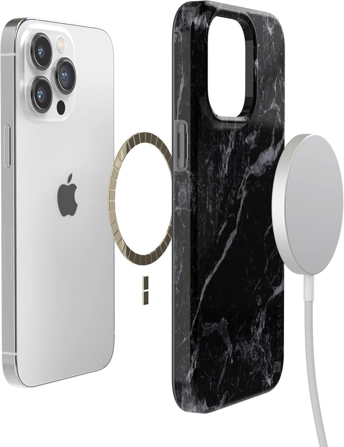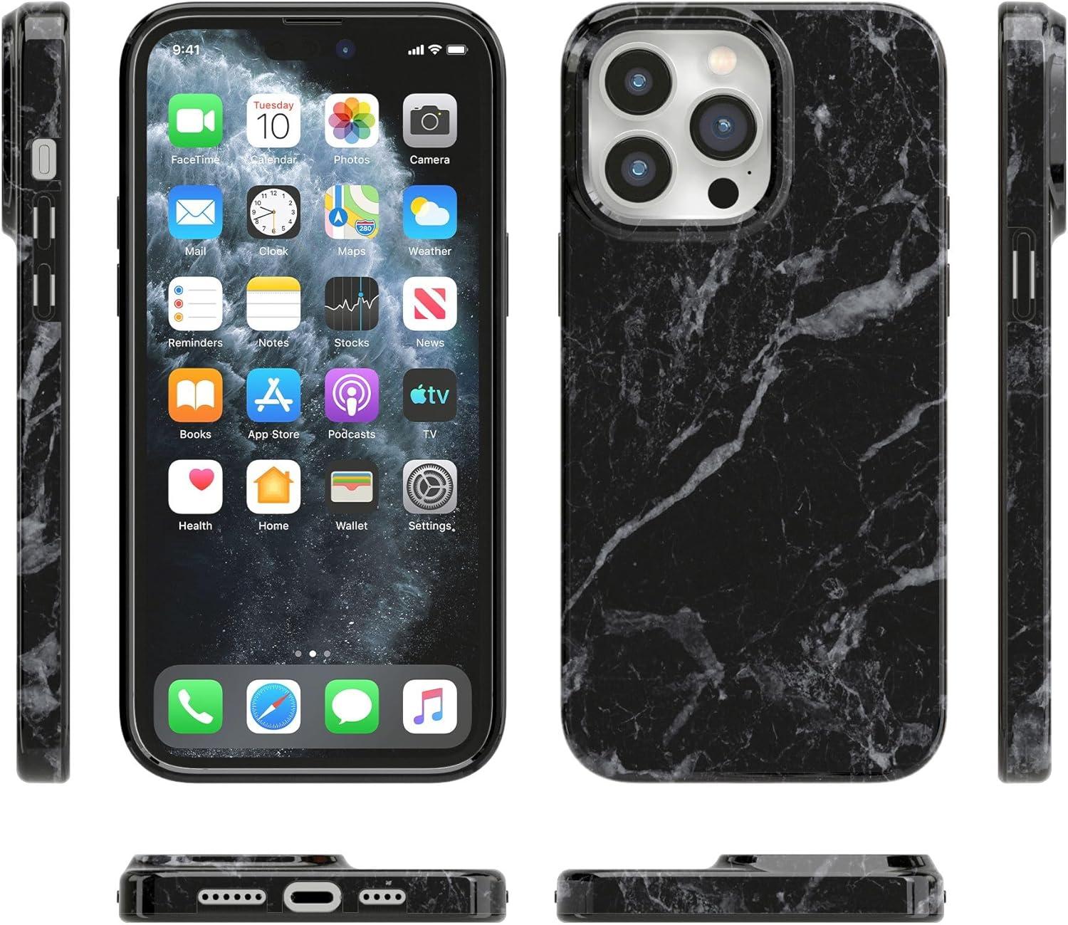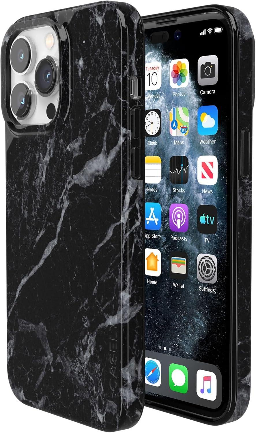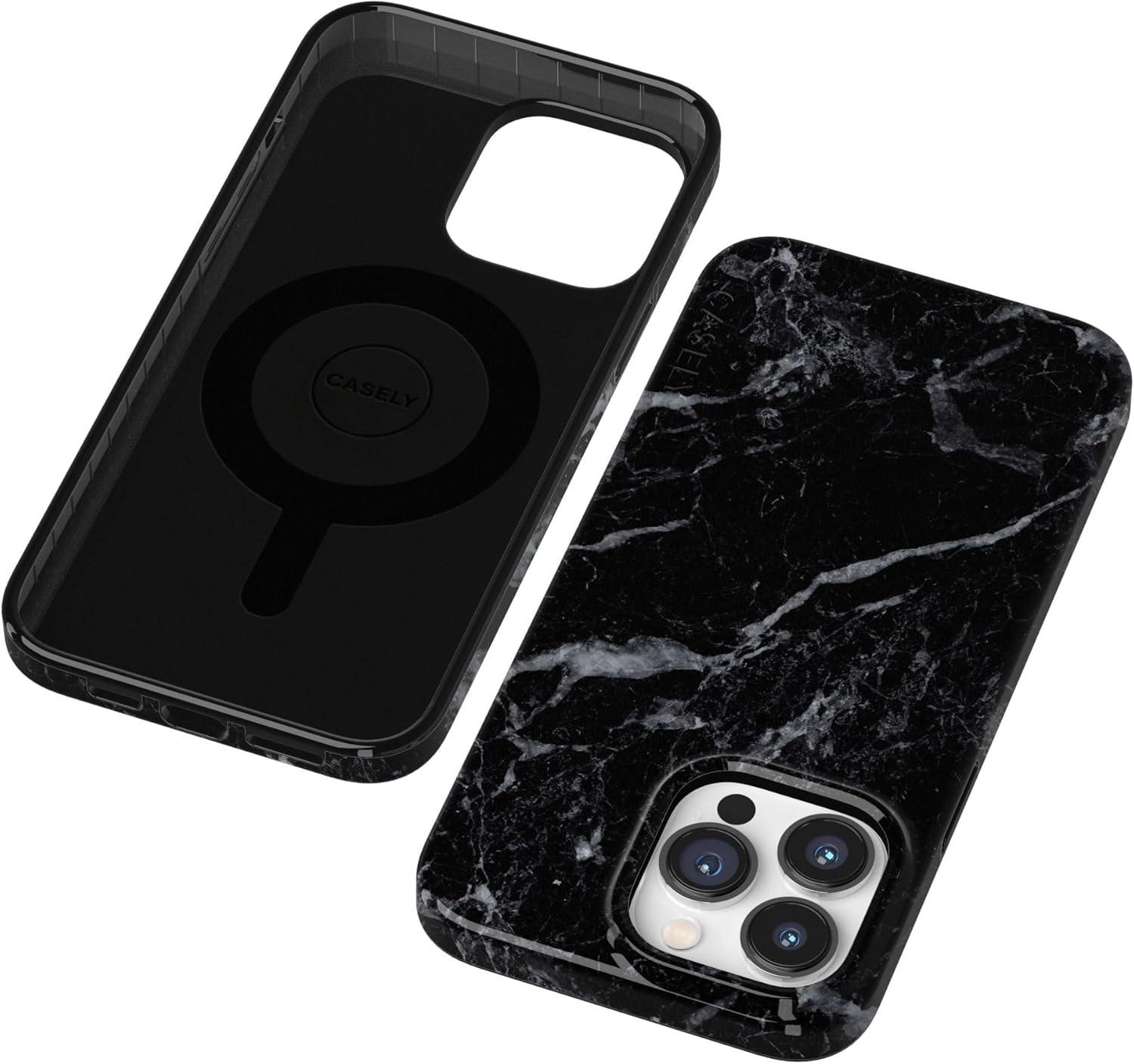 Casely iPhone 14 Pro Case | Black Pearl Marble | Compatible with MagSafe | Classic Ultra Thin Design(Black Pearl Marble)