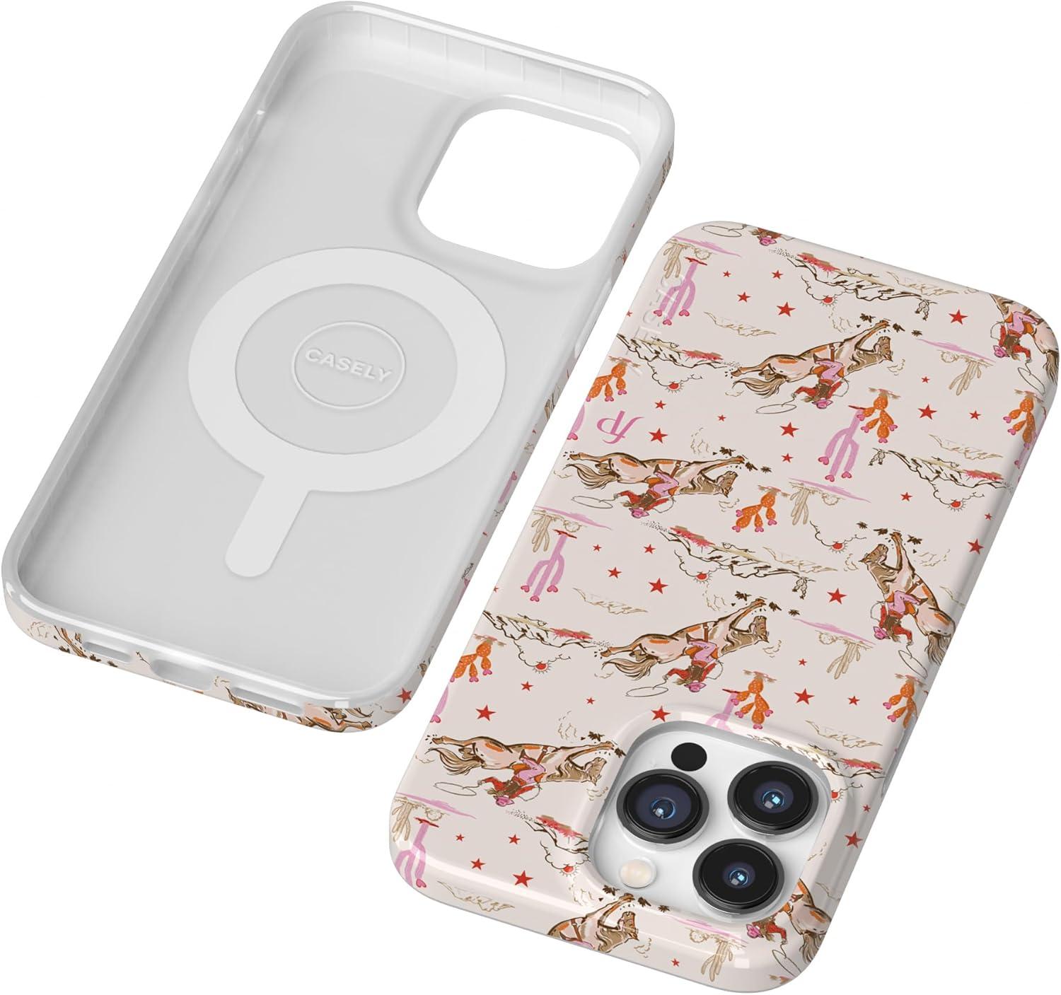 Casely iPhone 14 Pro Case | Black Pearl Marble | Compatible with MagSafe | Classic Ultra Thin Design(Cowgirl Canyon | FashionPass x Casely)
