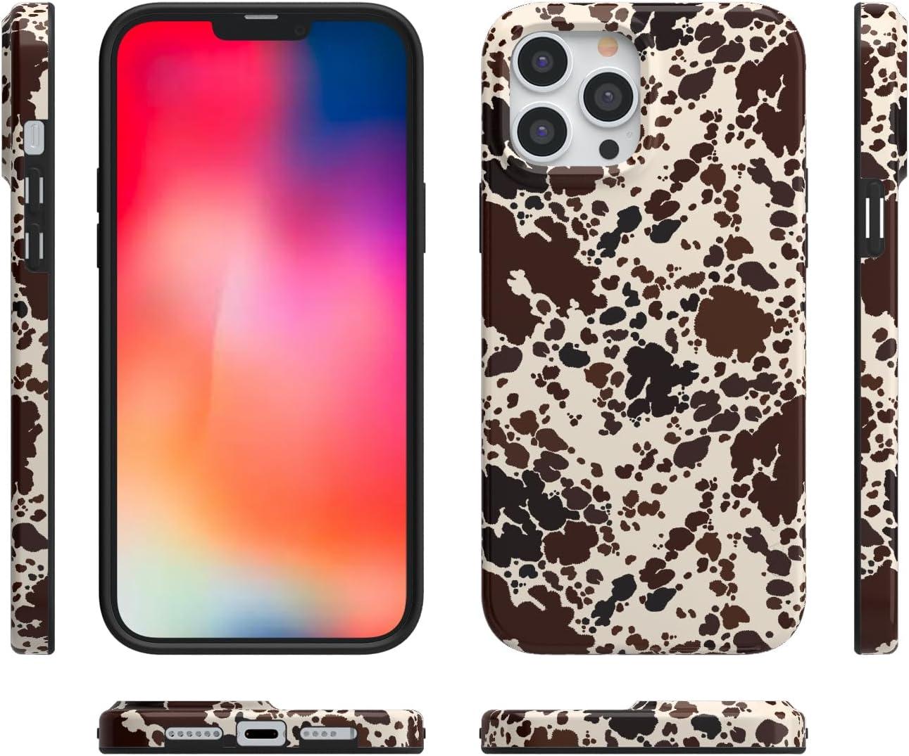 Casely iPhone 14 Pro Case | Black Pearl Marble | Compatible with MagSafe | Classic Ultra Thin Design(Cowgirl Envy | Cow Print)