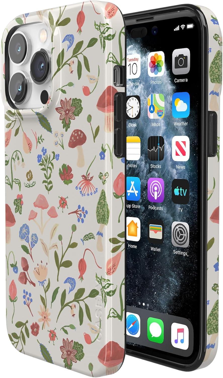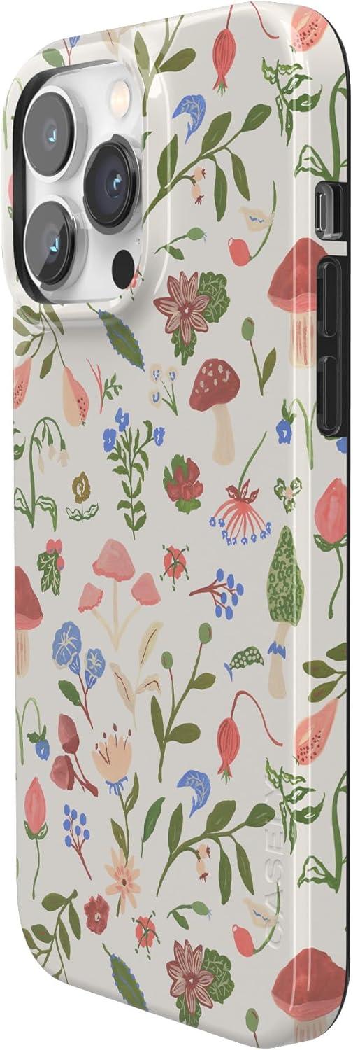 Casely iPhone 14 Pro Case | Black Pearl Marble | Compatible with MagSafe | Classic Ultra Thin Design(Garden Party | Mushroom Floral)