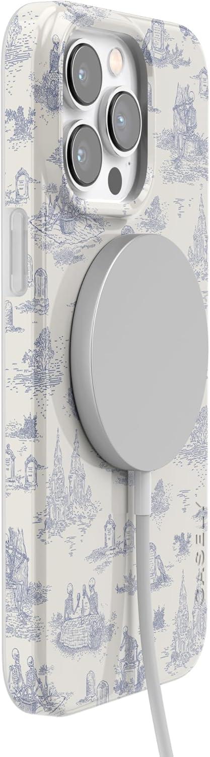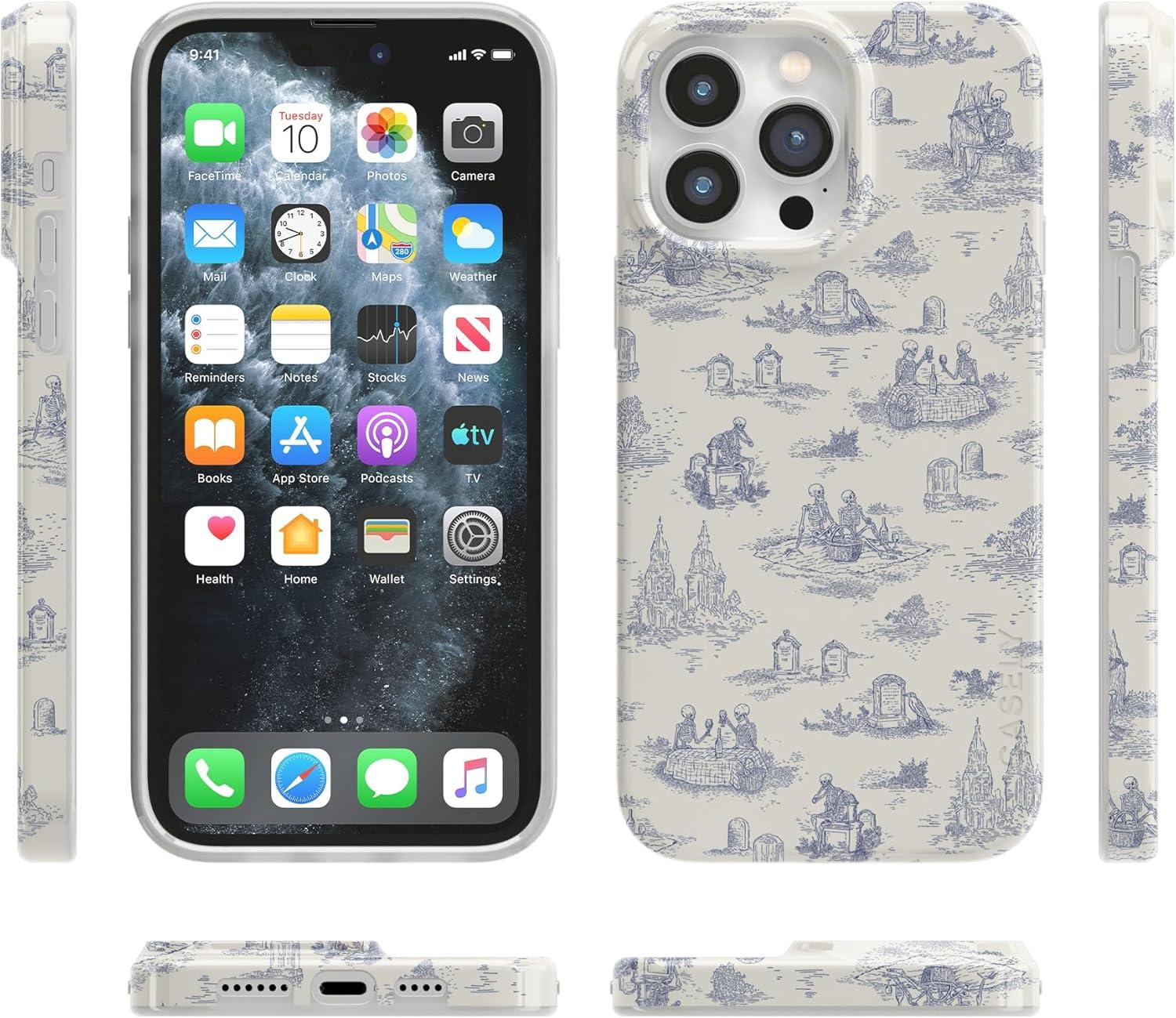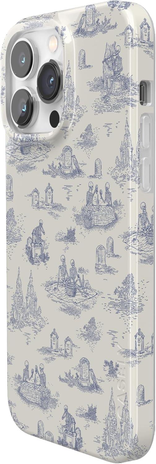 Casely iPhone 14 Pro Case | Black Pearl Marble | Compatible with MagSafe | Classic Ultra Thin Design(Graveyard Gathering | Skeleton Picnic)
