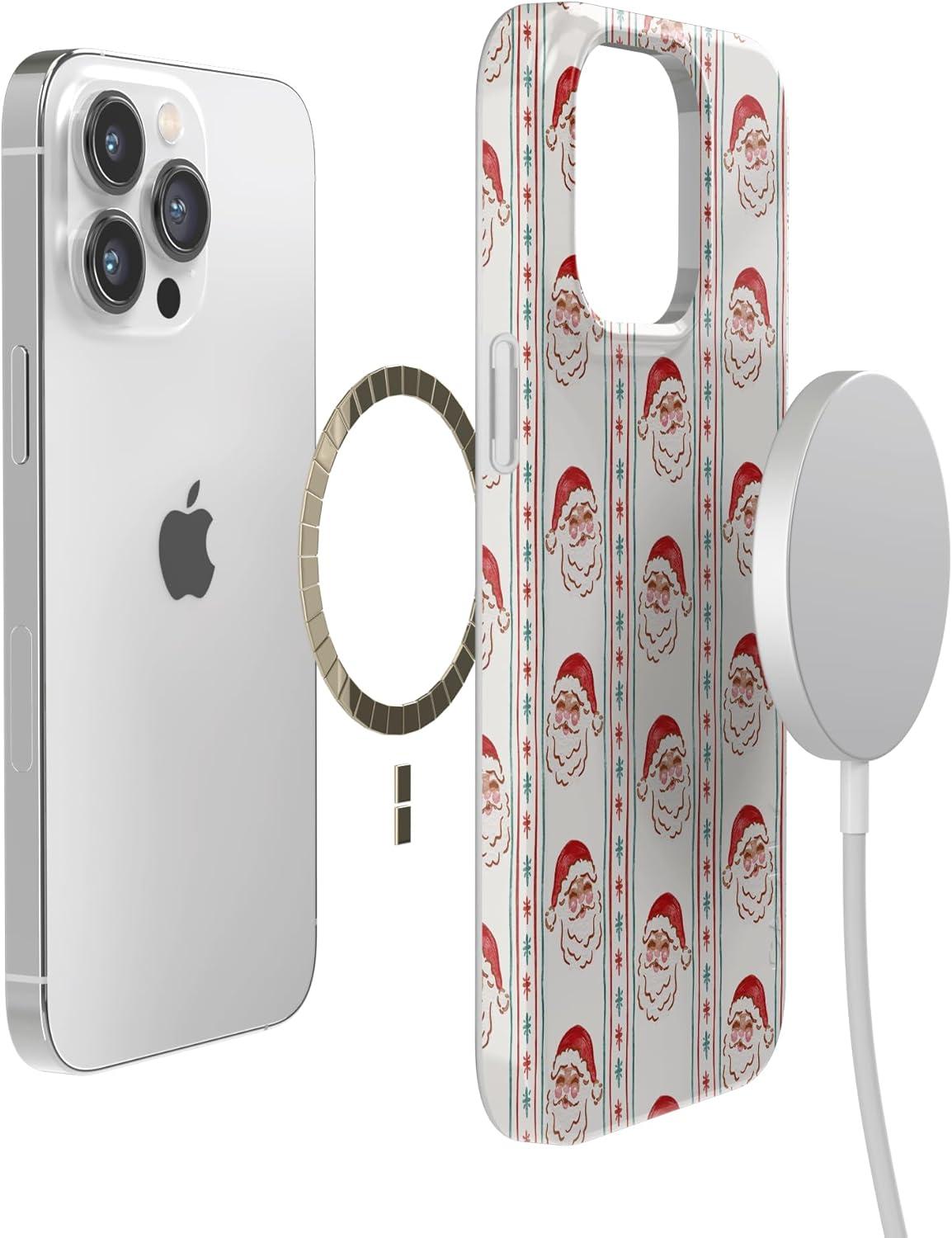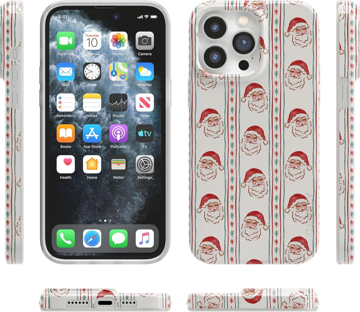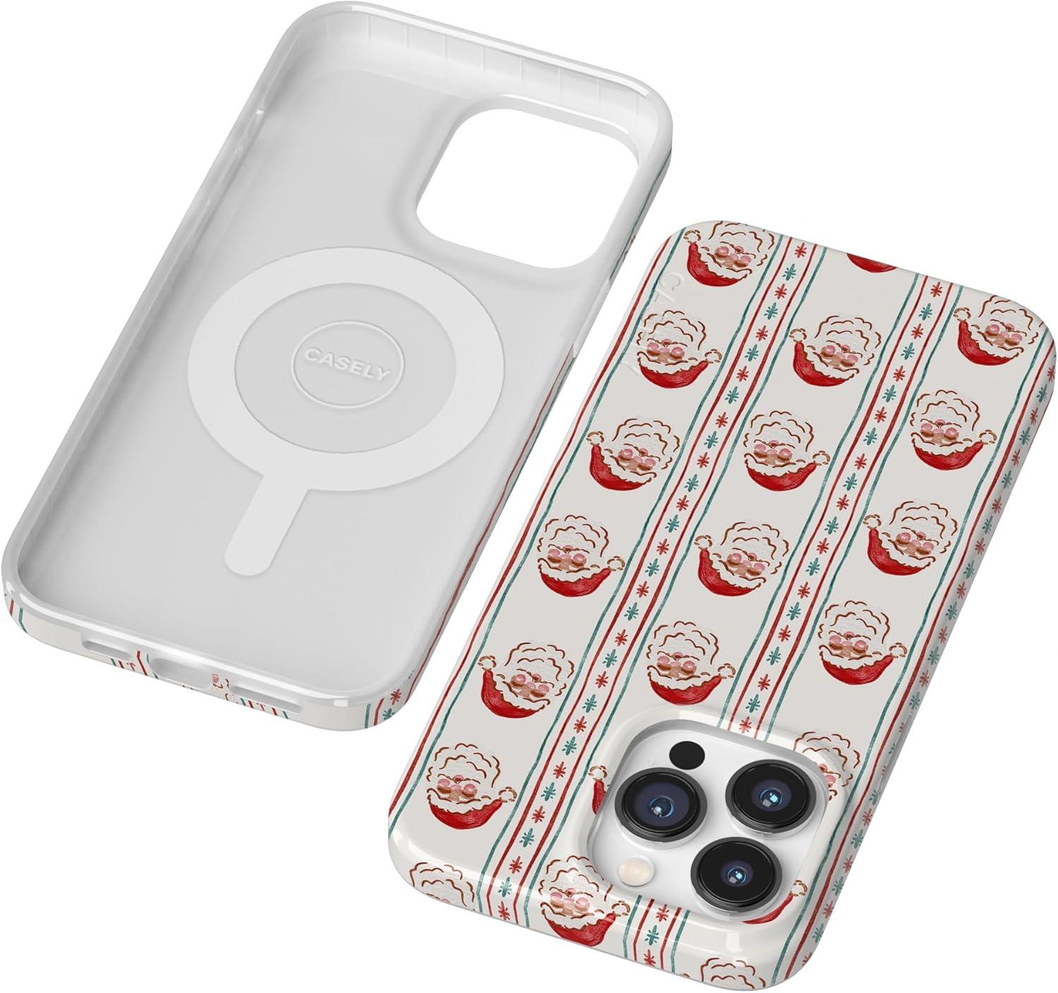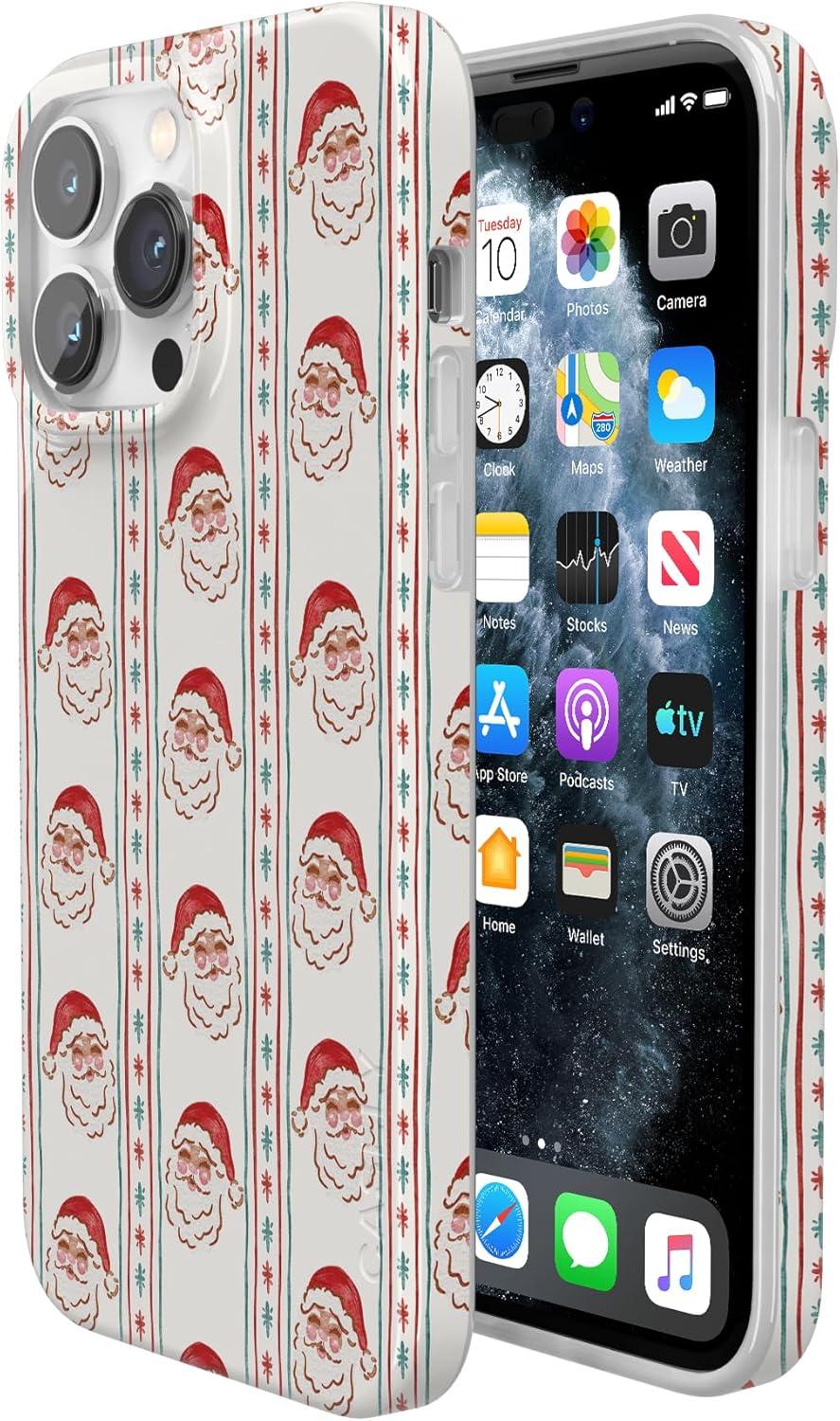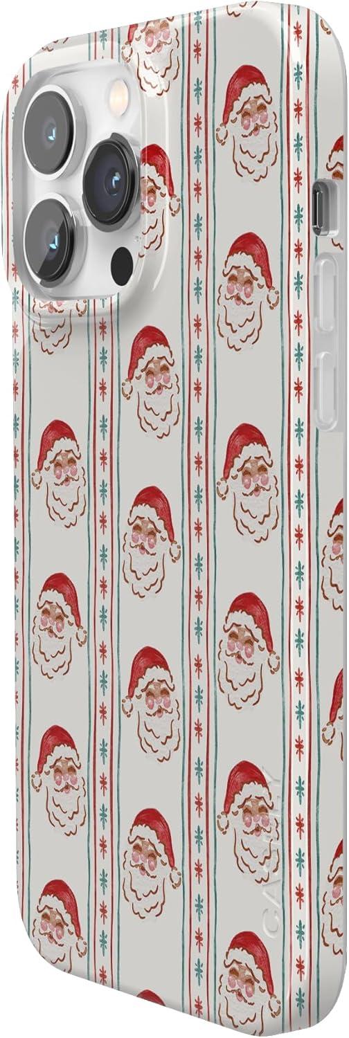 Casely iPhone 14 Pro Case | Black Pearl Marble | Compatible with MagSafe | Classic Ultra Thin Design(Jolly St. Nick | Retro Claus)