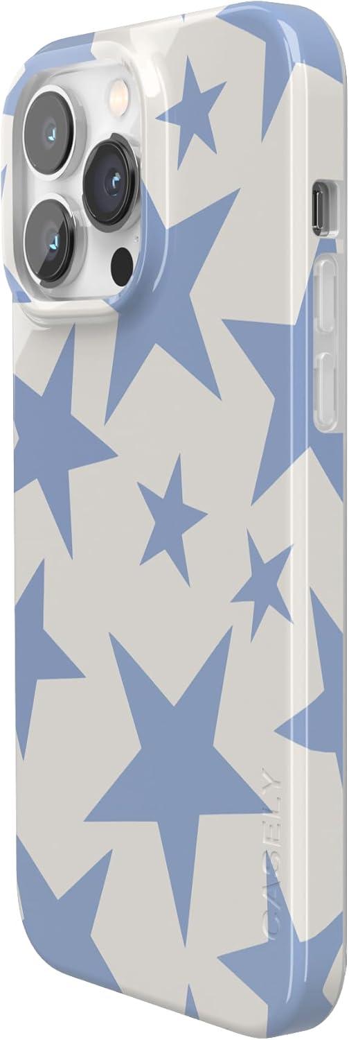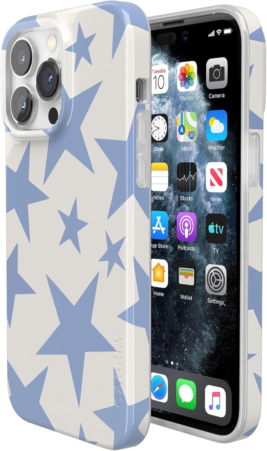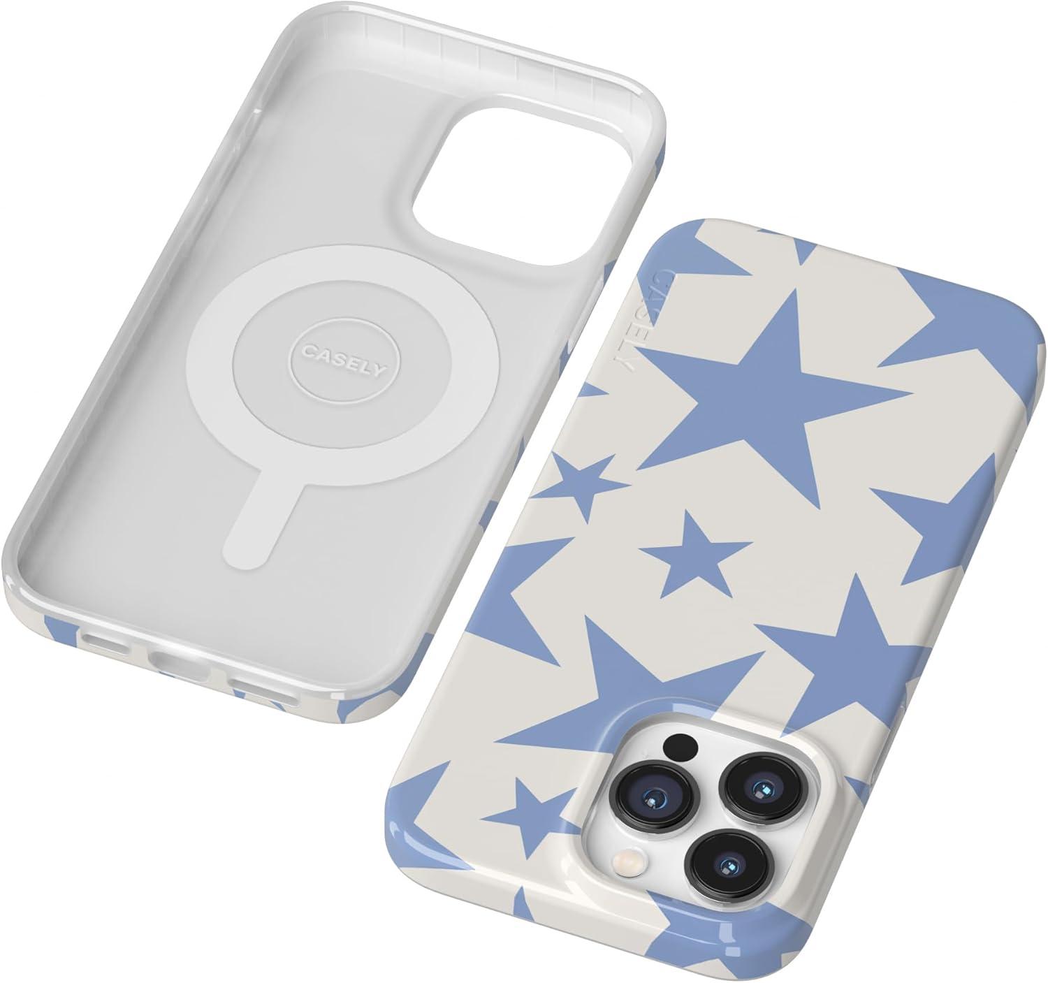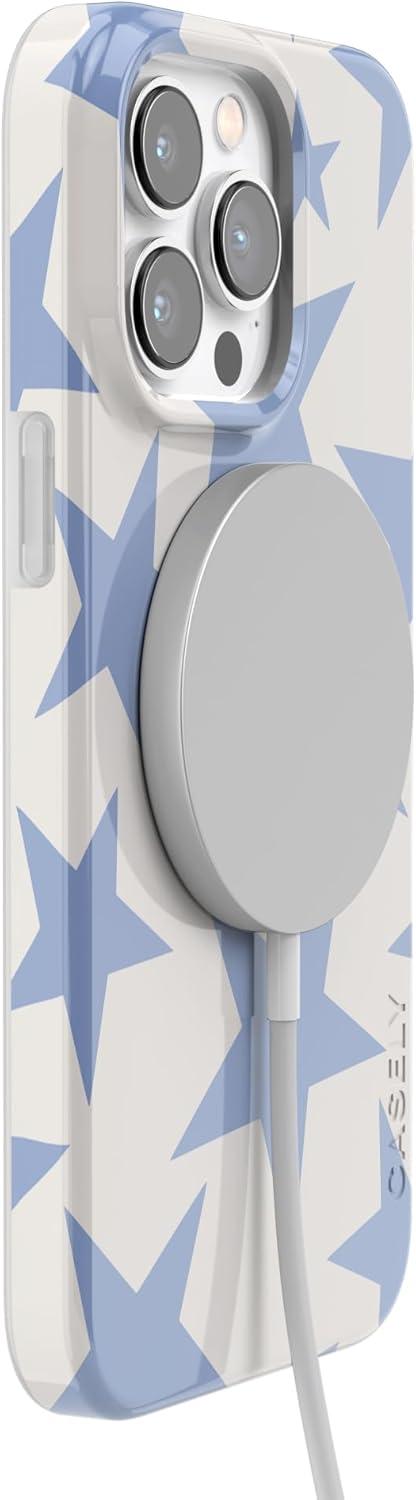 Casely iPhone 14 Pro Case | Black Pearl Marble | Compatible with MagSafe | Classic Ultra Thin Design(Stars Align | Blue & White Stars)