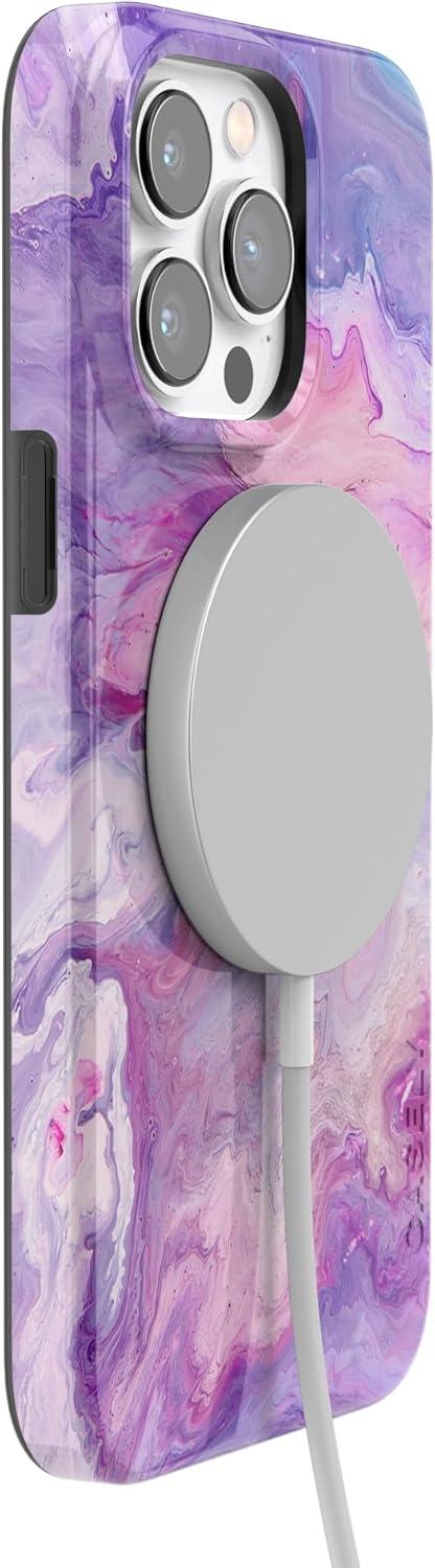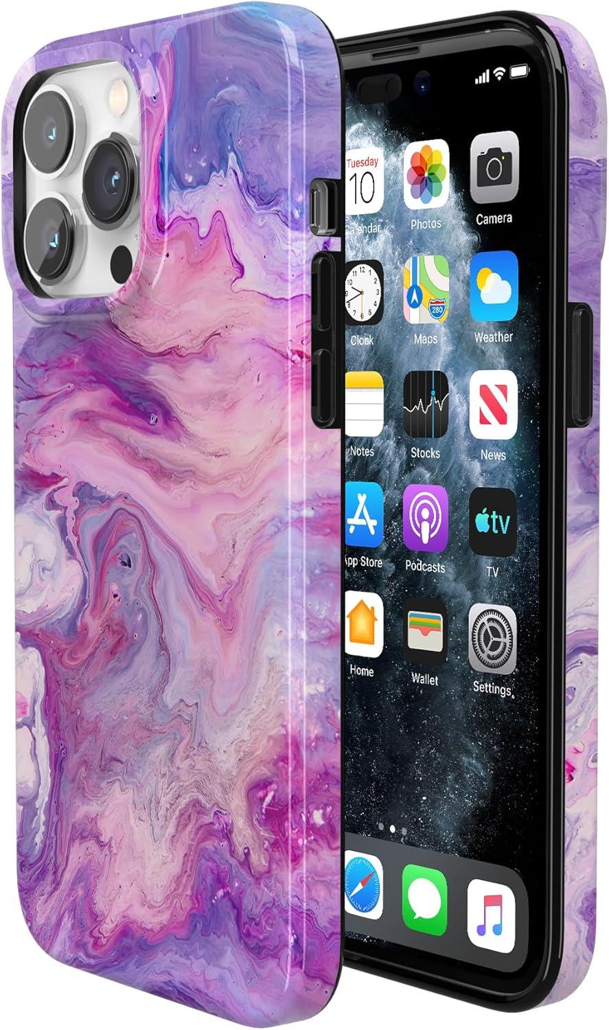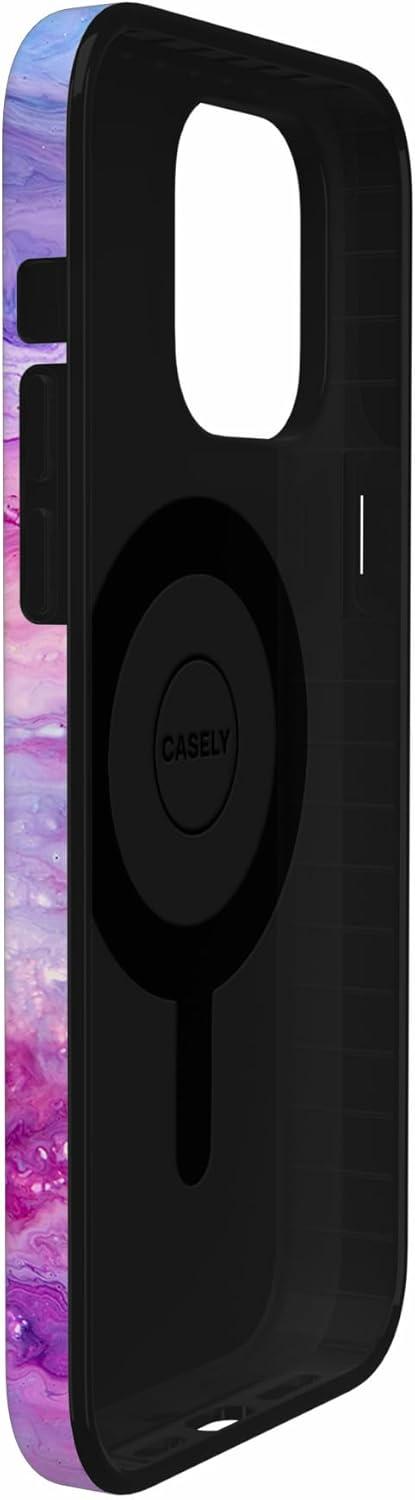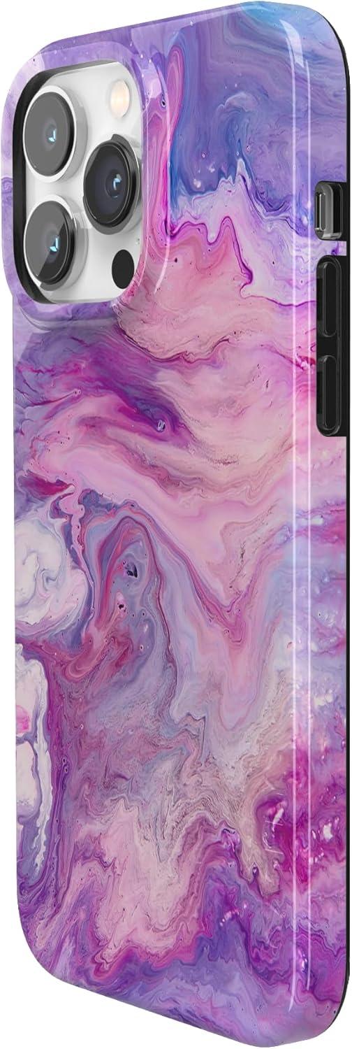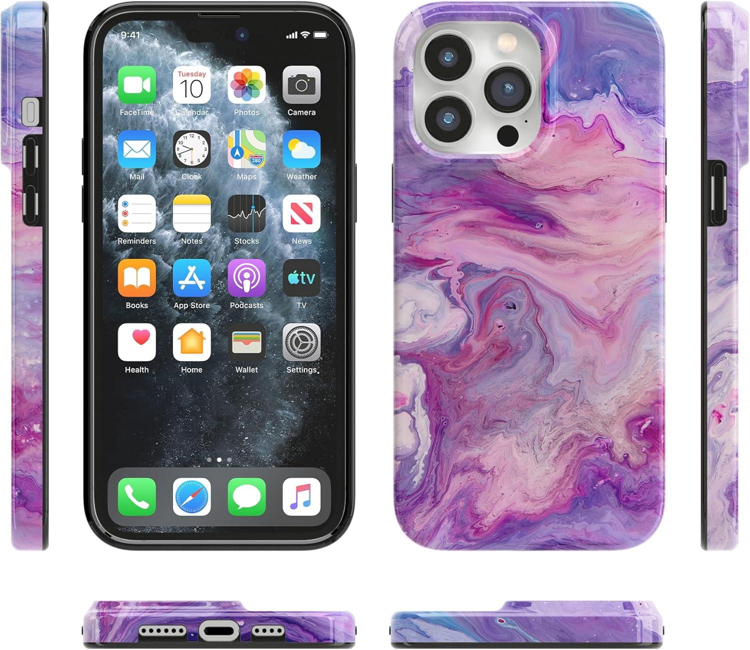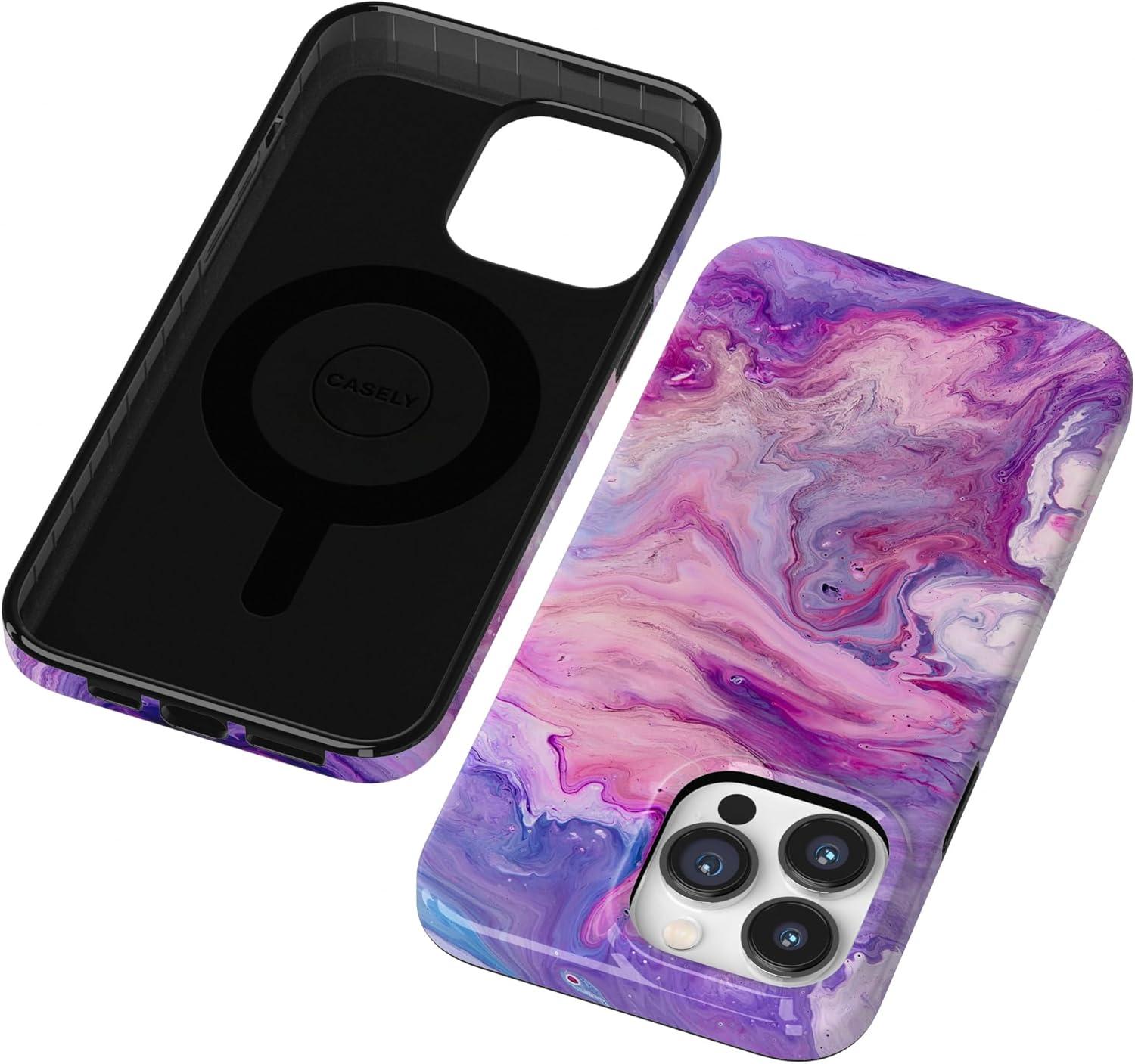 Casely iPhone 14 Pro Case | Black Pearl Marble | Compatible with MagSafe | Classic Ultra Thin Design(Tie Dying Over You | Purple Marble)