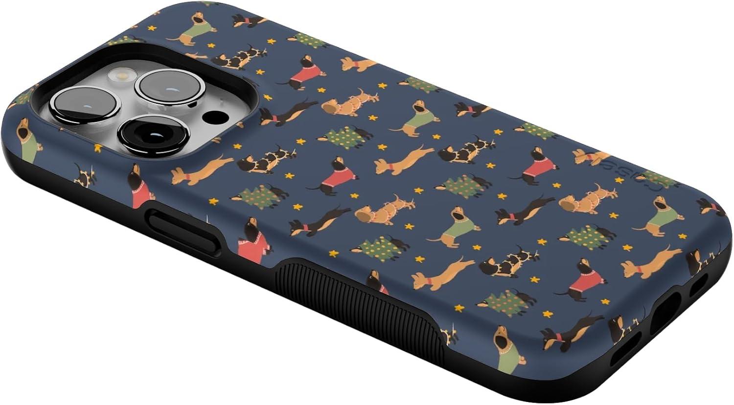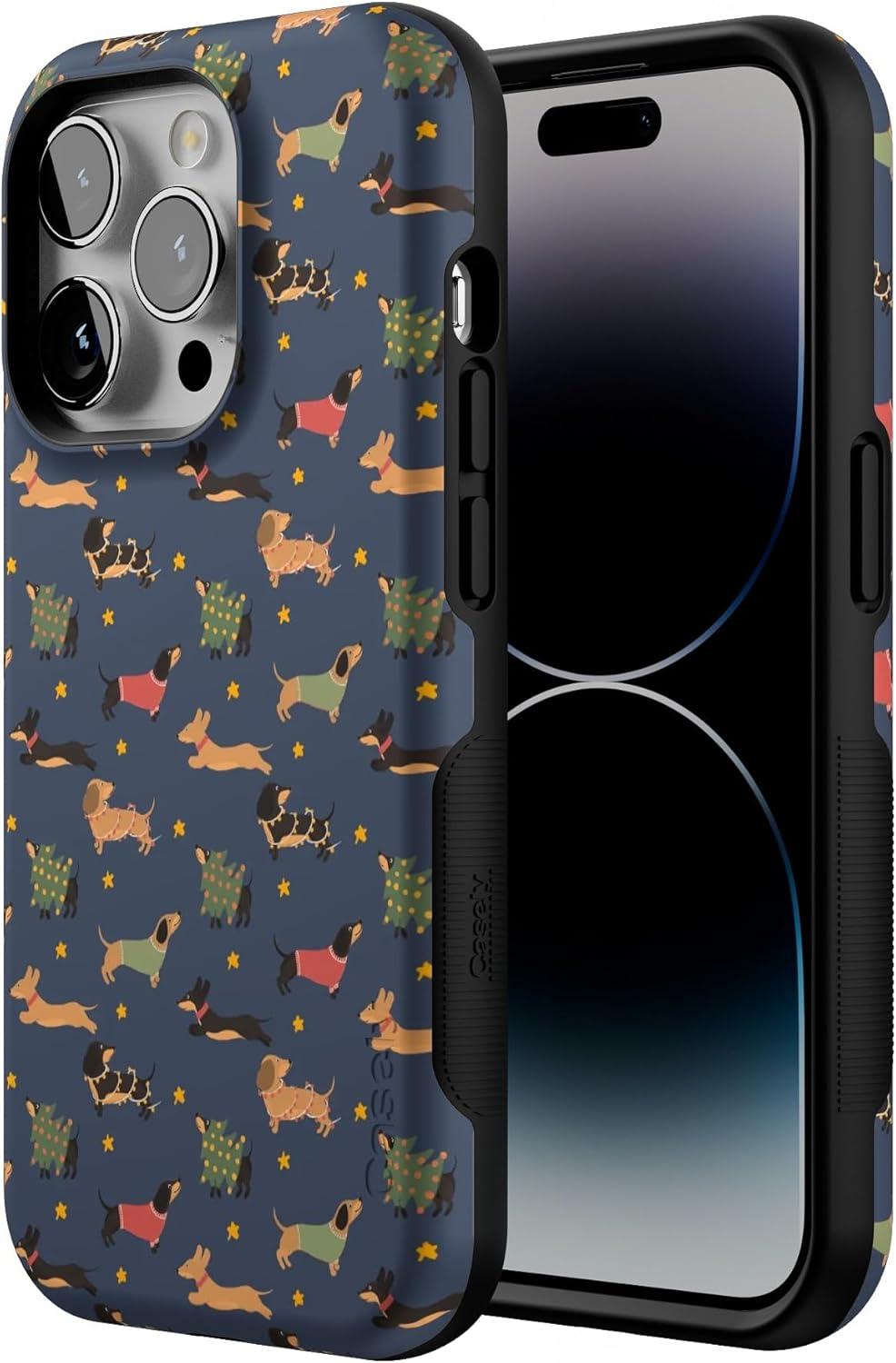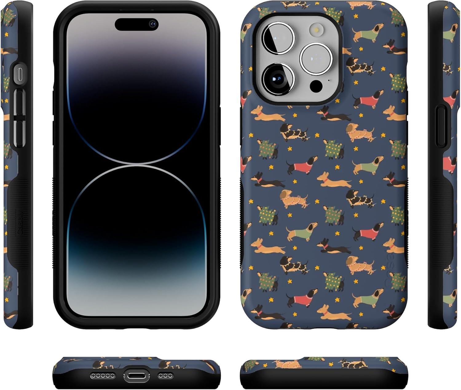 Casely iPhone 14 Pro Case | Dashing Doxies | Dachshund Dog | Bold Protective Design | MagSafe Compatible Design