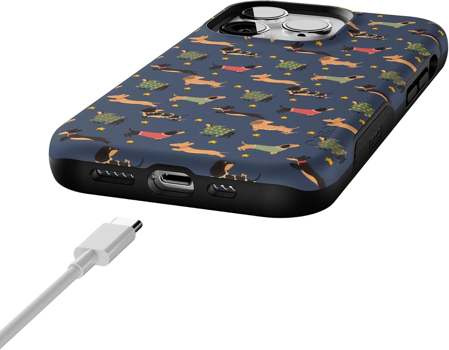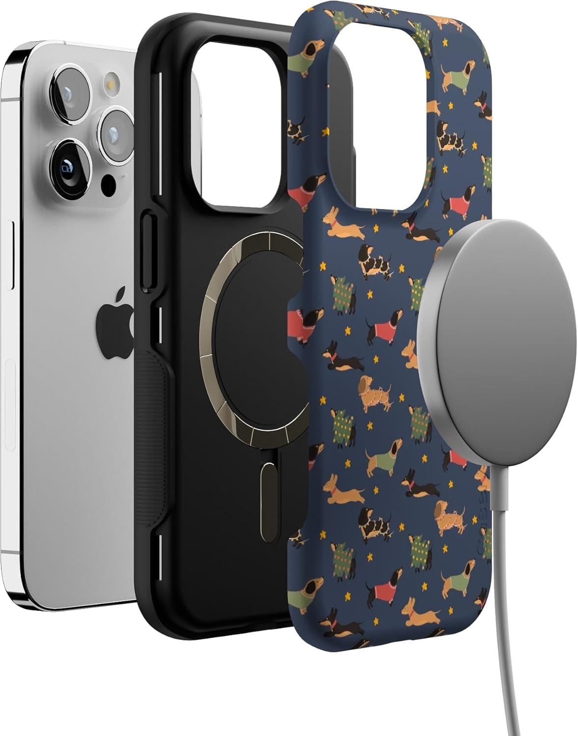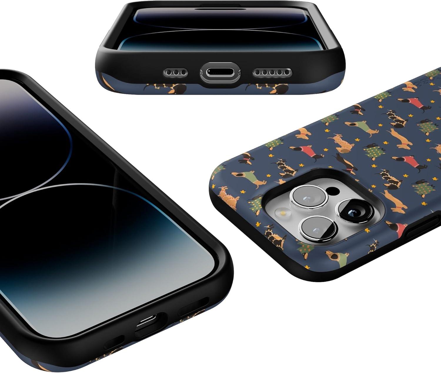 Casely iPhone 14 Pro Case | Dashing Doxies | Dachshund Dog | Bold Protective Design | MagSafe Compatible Design