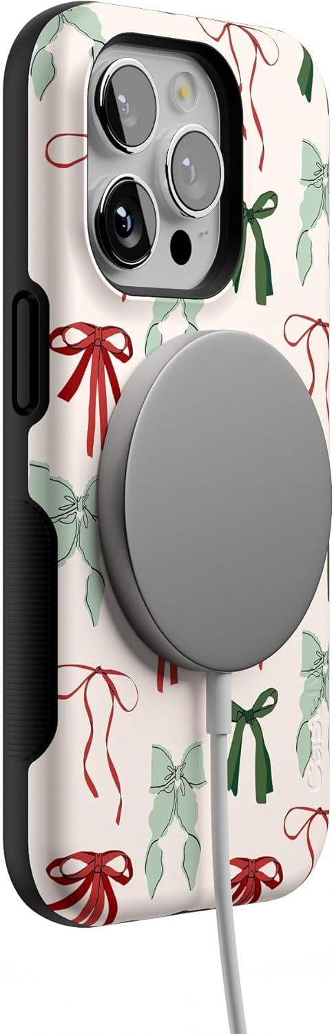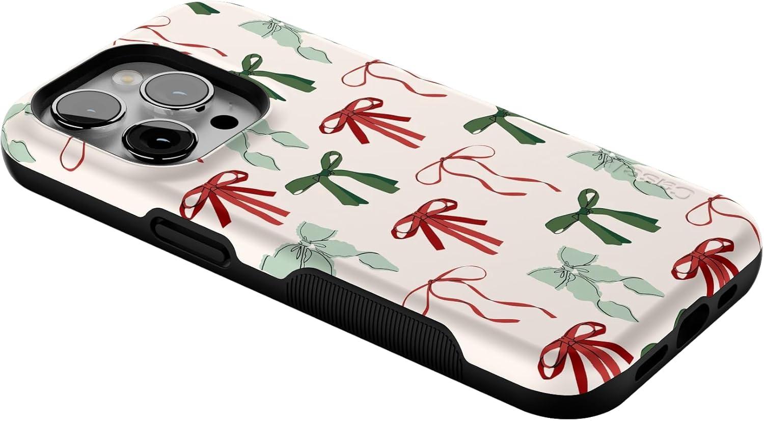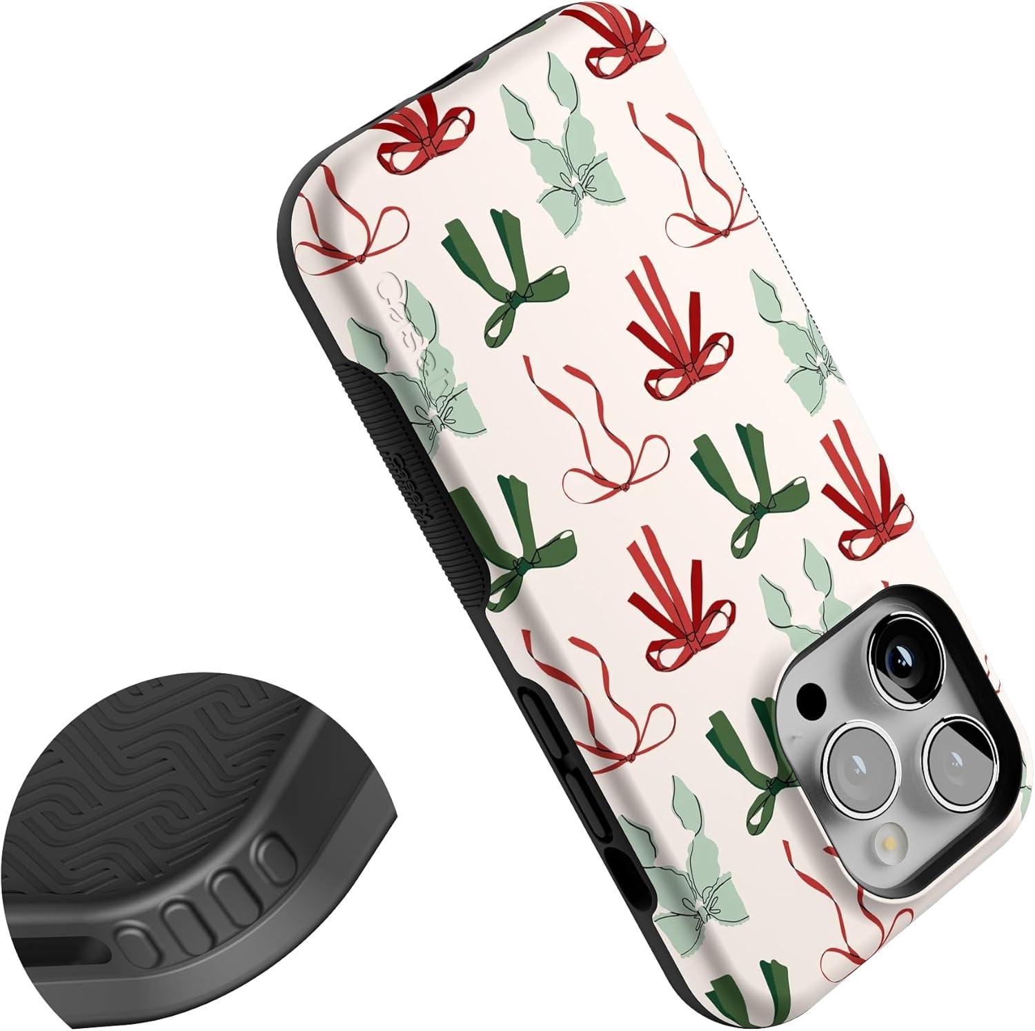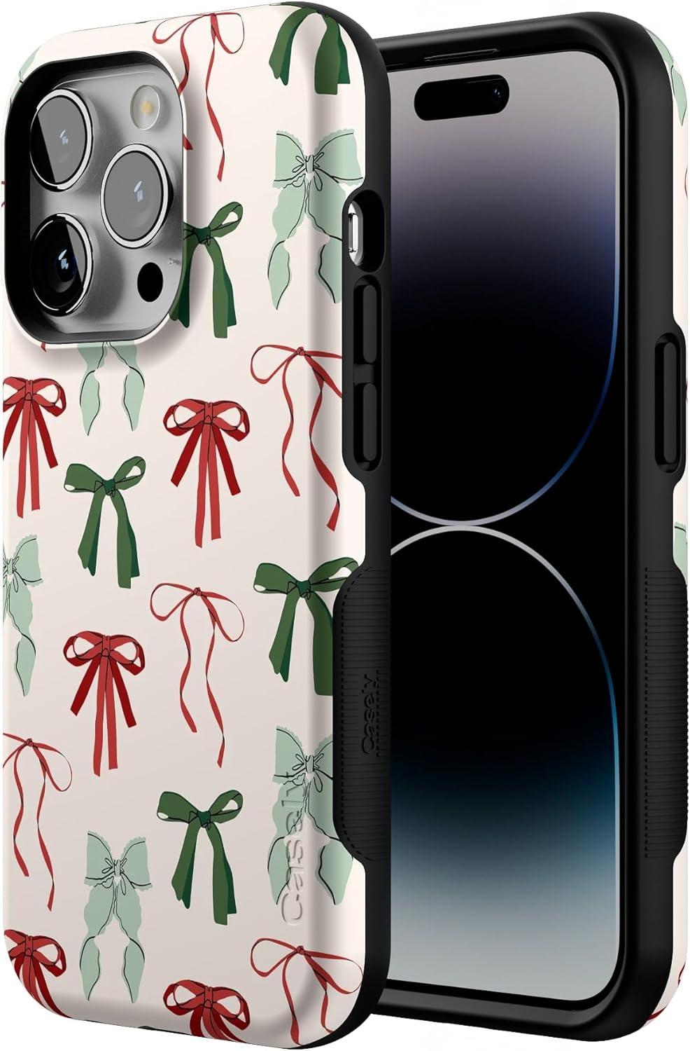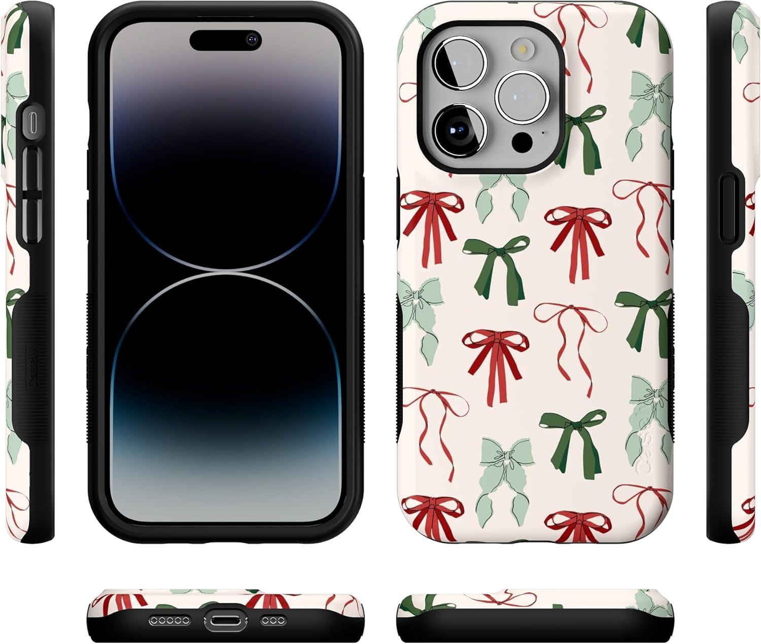 Casely iPhone 14 Pro Case | Festive Girlie | Holiday Bows | Bold Protective Design | MagSafe Compatible Design
