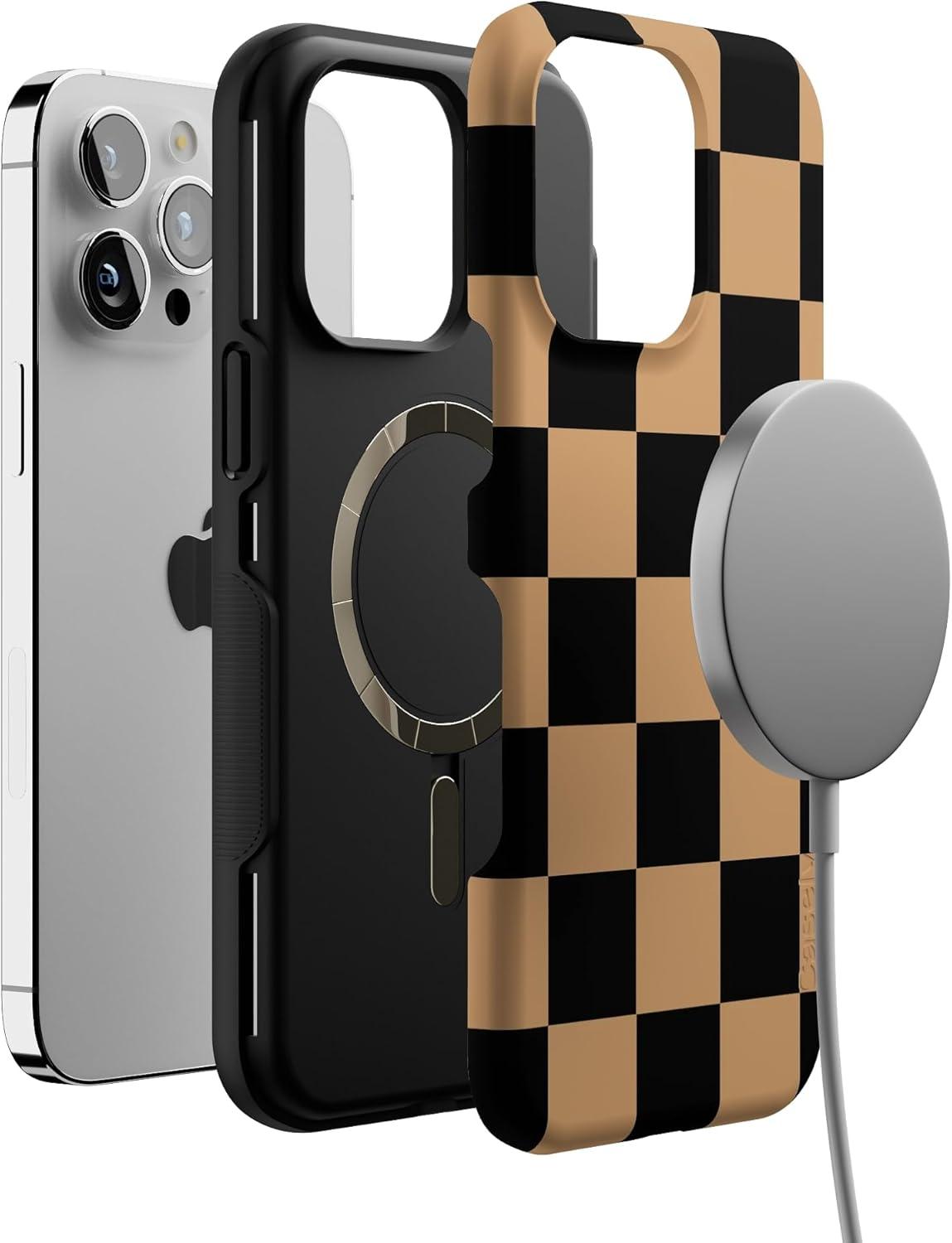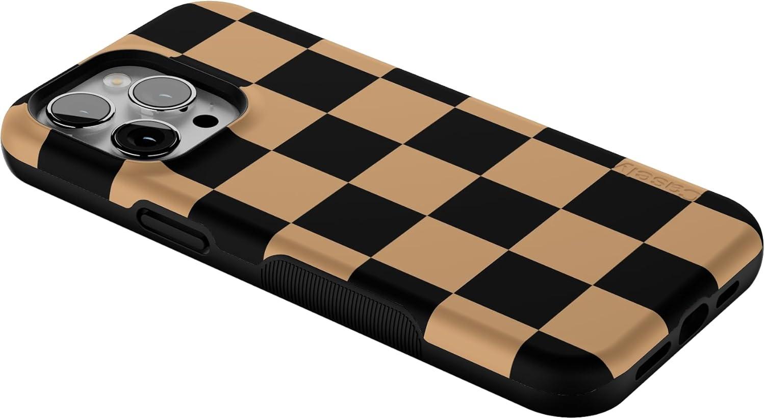Casely iPhone 14 Pro Case | Fit Check | Black & Brown Checkerboard | Compatible with MagSafe | Bold Protective Design