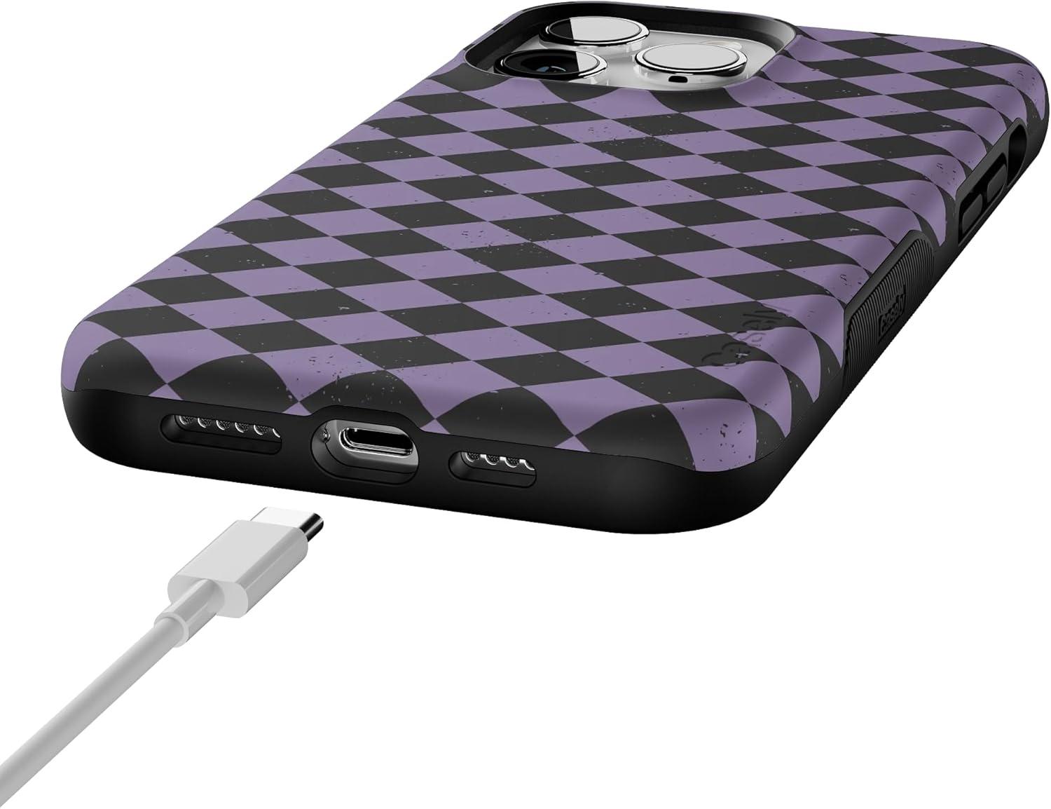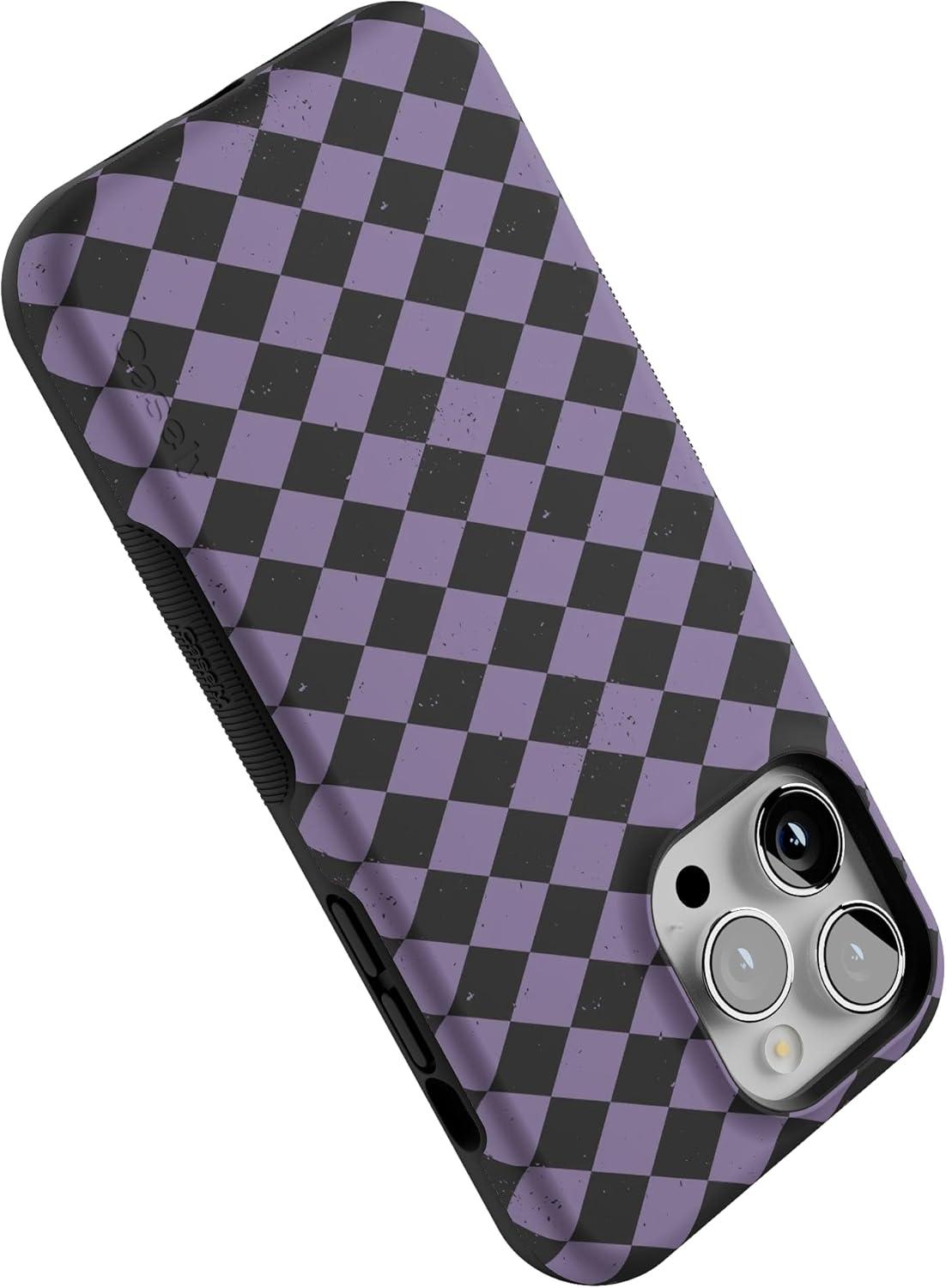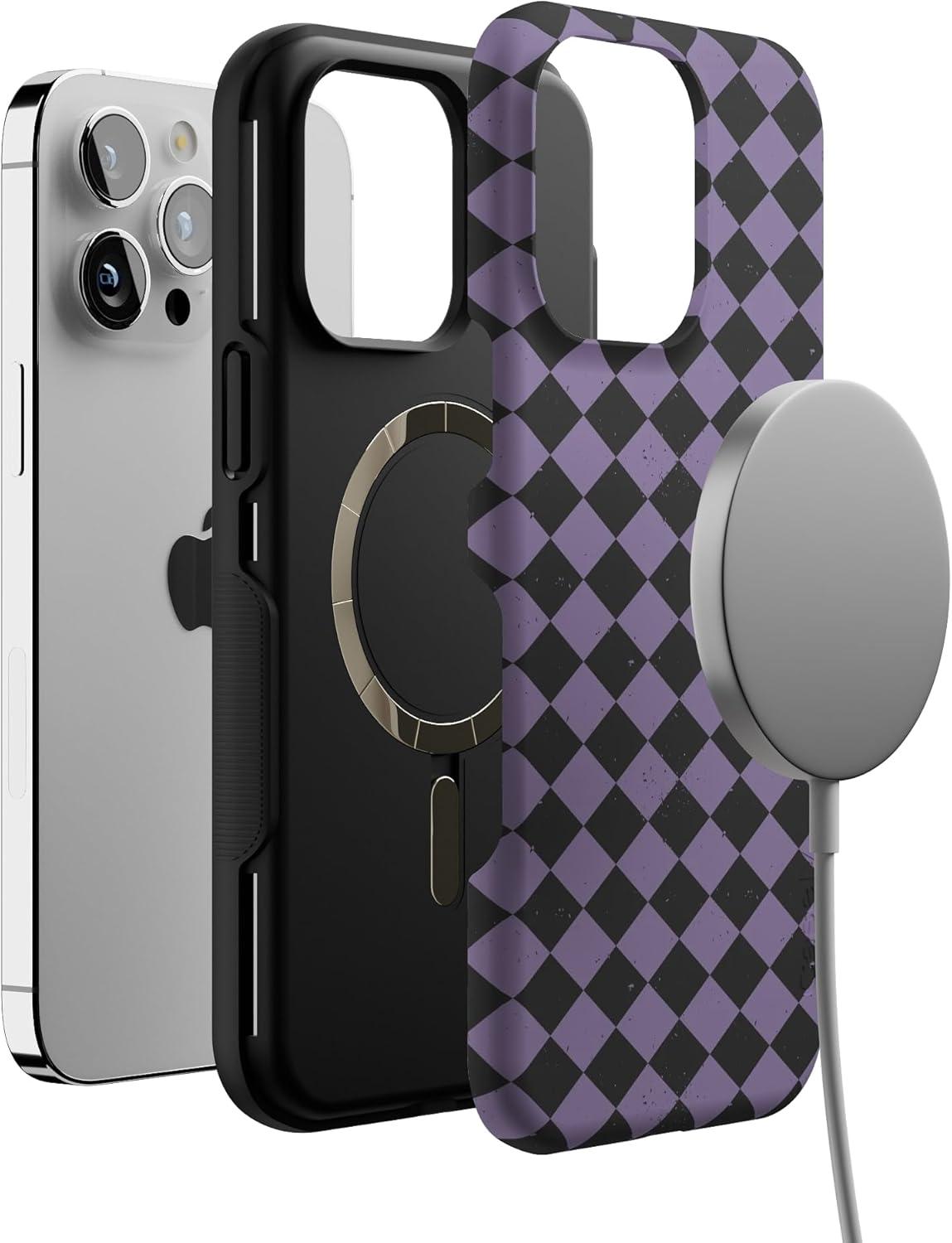 Casely iPhone 14 Pro Case | Harlequin Midnight Diamond | Black and Purple | Bold Protective Design | MagSafe Compatible Design