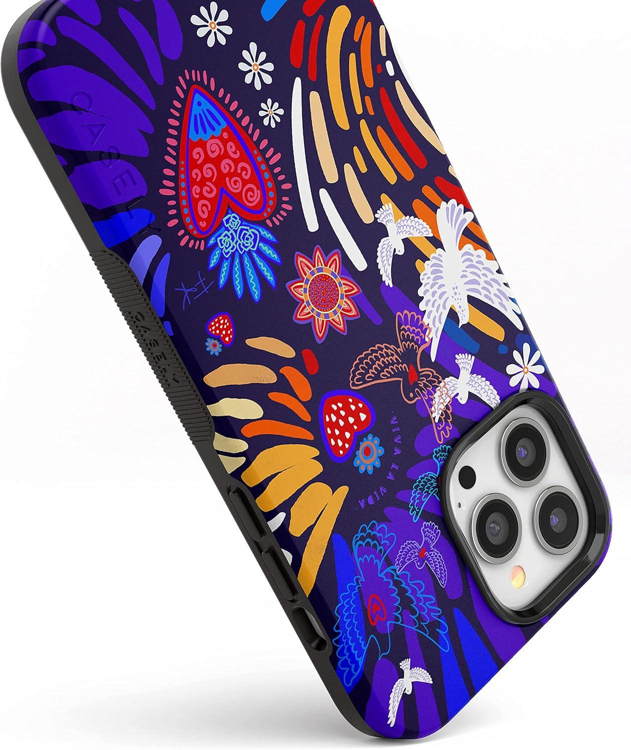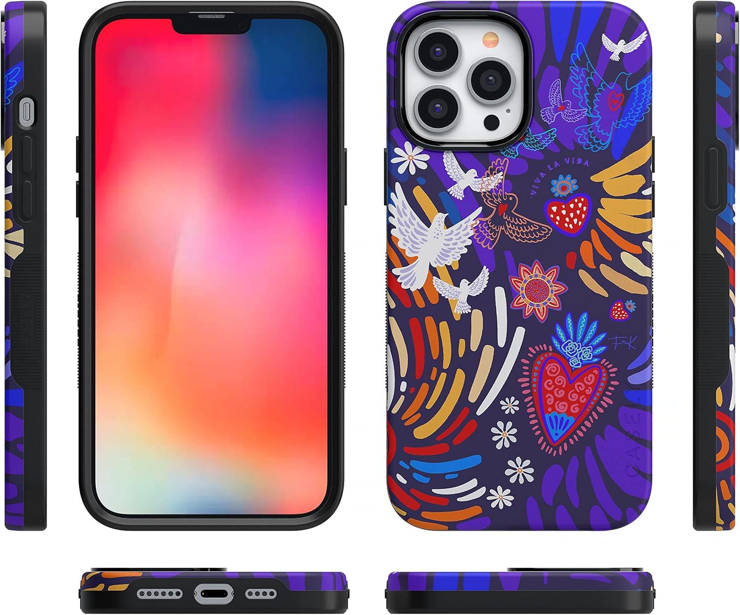 Casely iPhone 14 Pro Case | Opposites Attract | Day & Night Mountains | Compatible with MagSafe | Bold Protective Design(05 Frida Kahlo | Viva La Vida | Floral Collage)