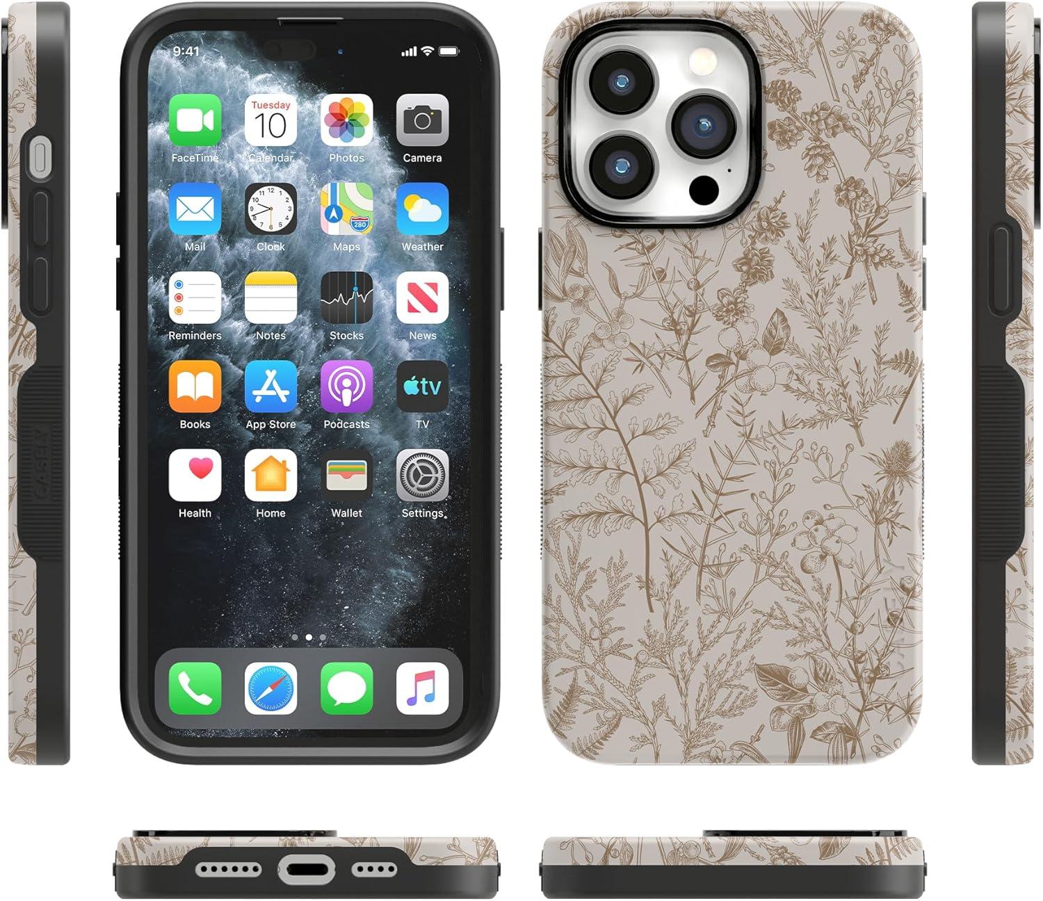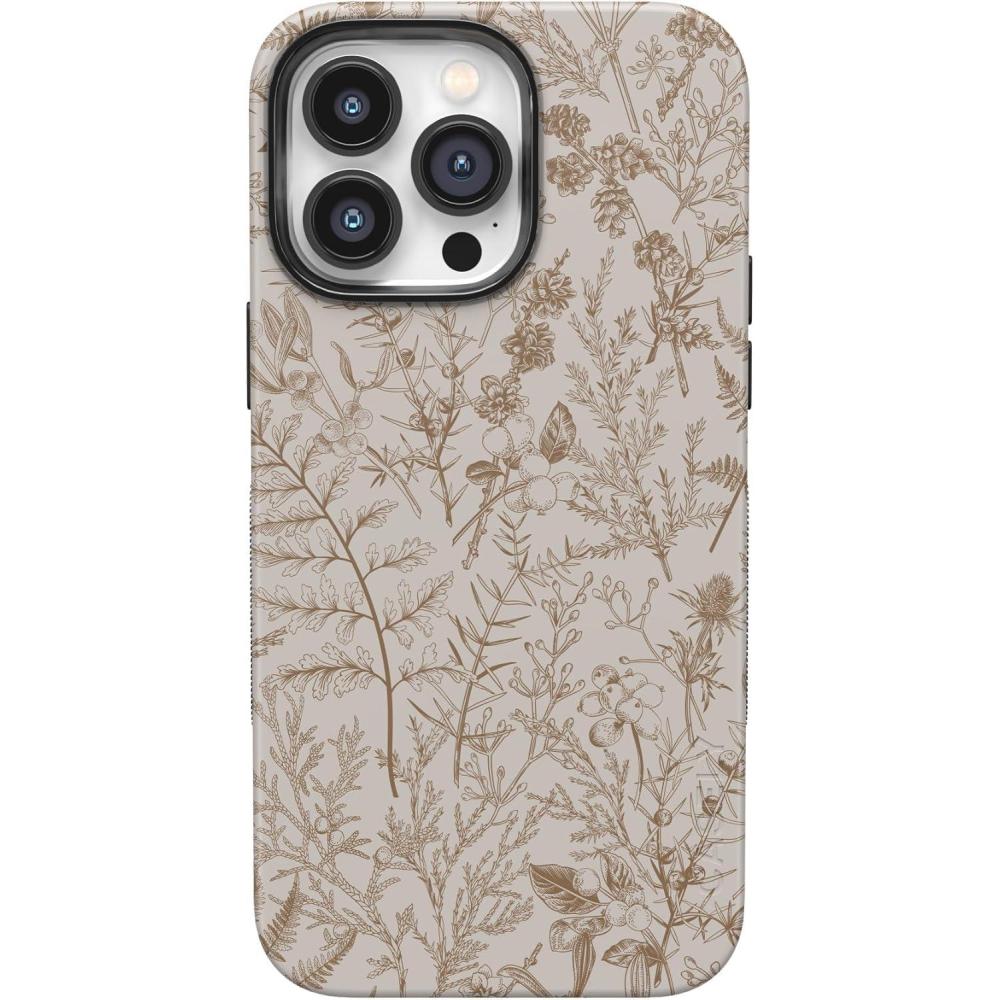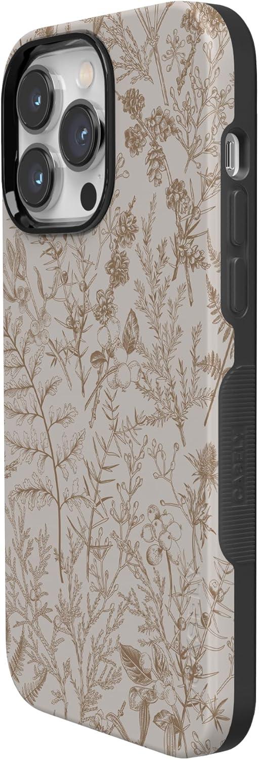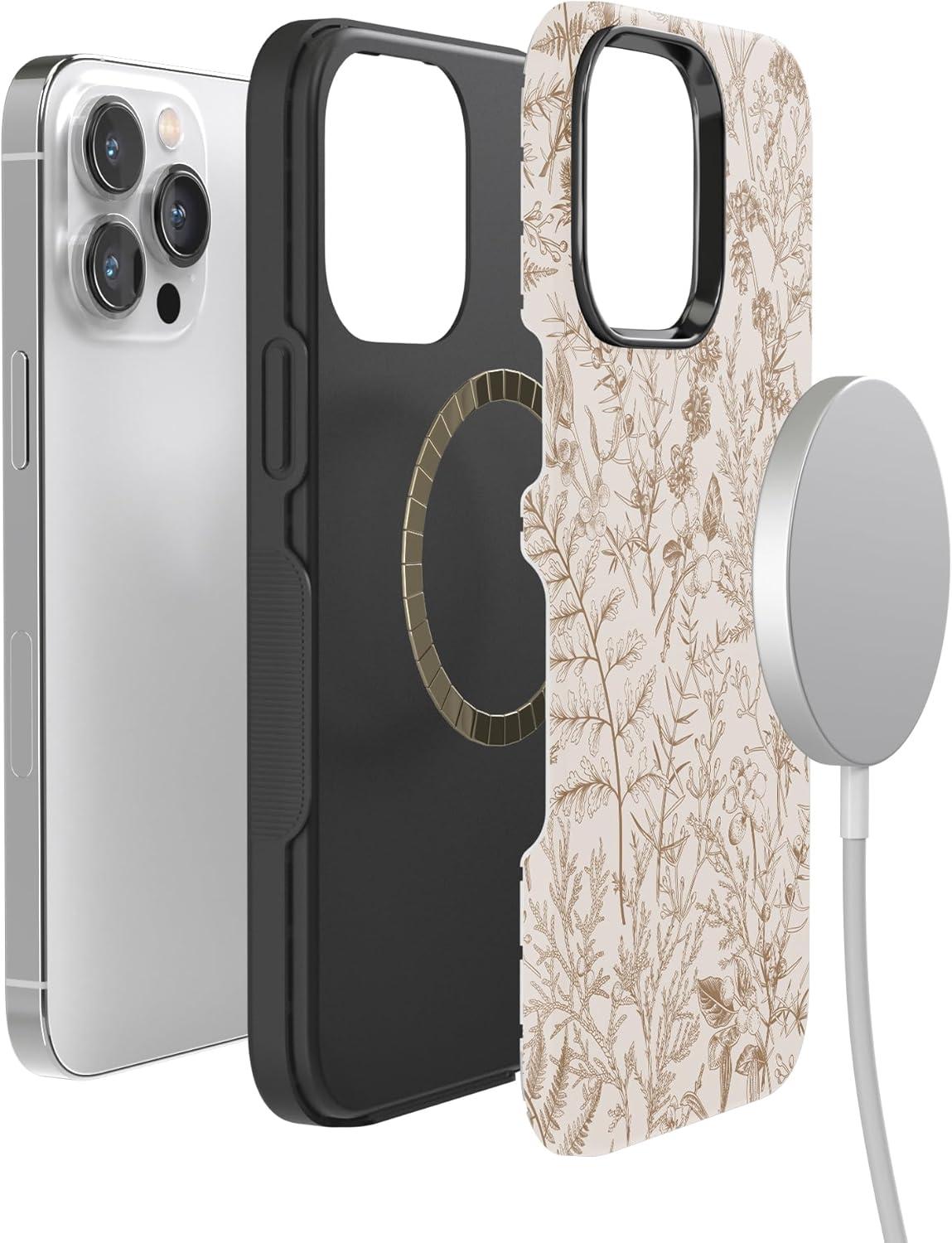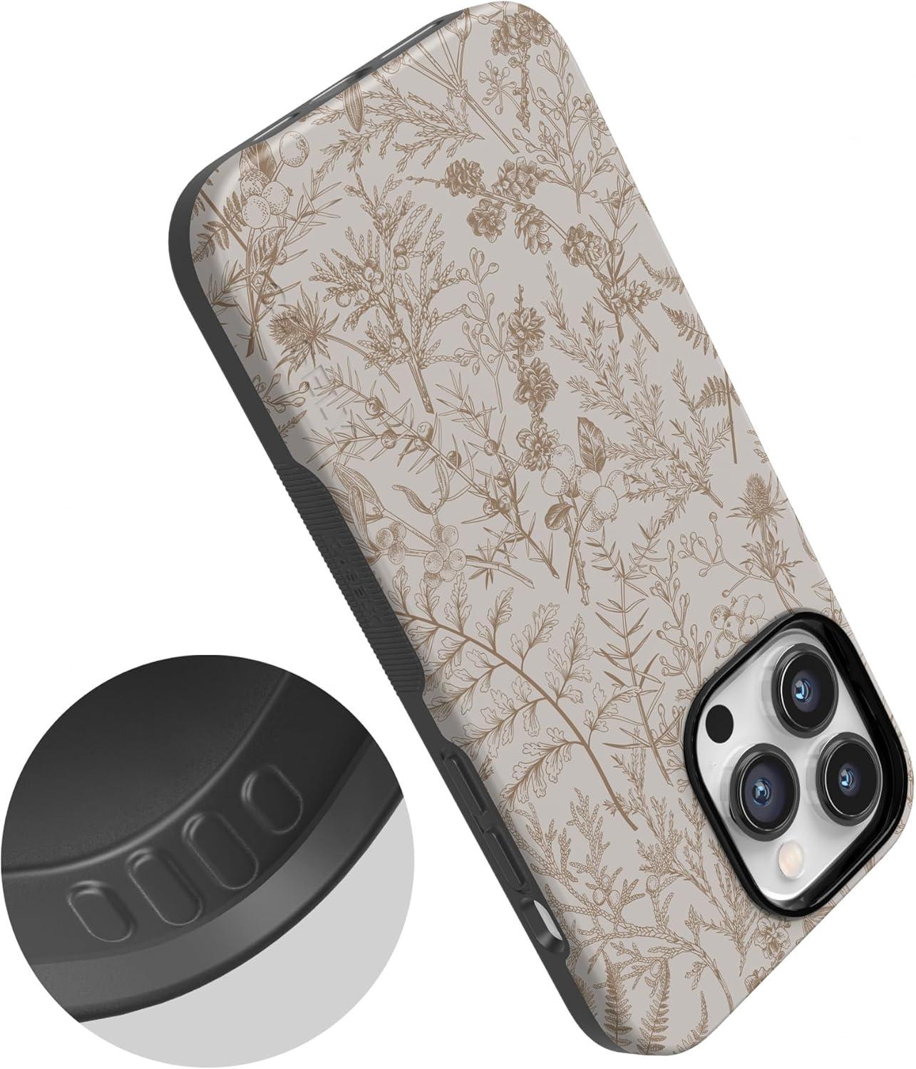 Casely iPhone 14 Pro Case | Opposites Attract | Day & Night Mountains | Compatible with MagSafe | Bold Protective Design(Beige Garden | Neutral Floral)