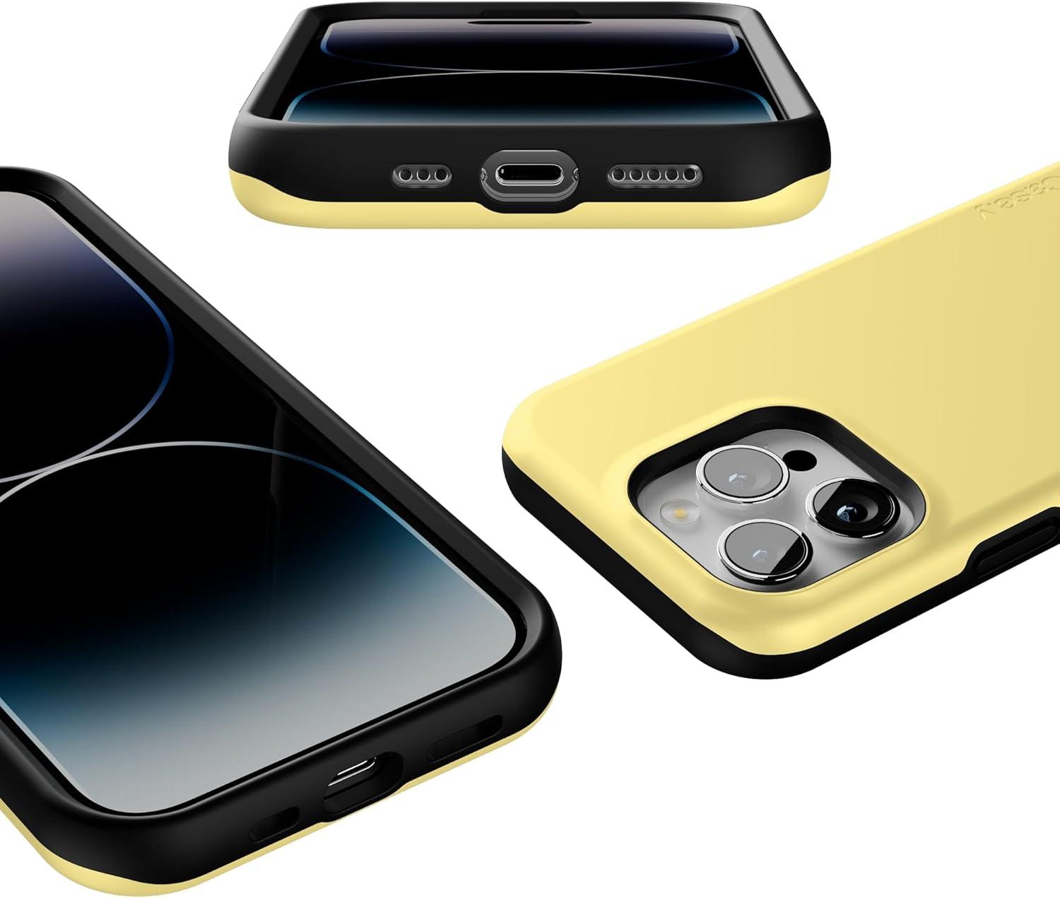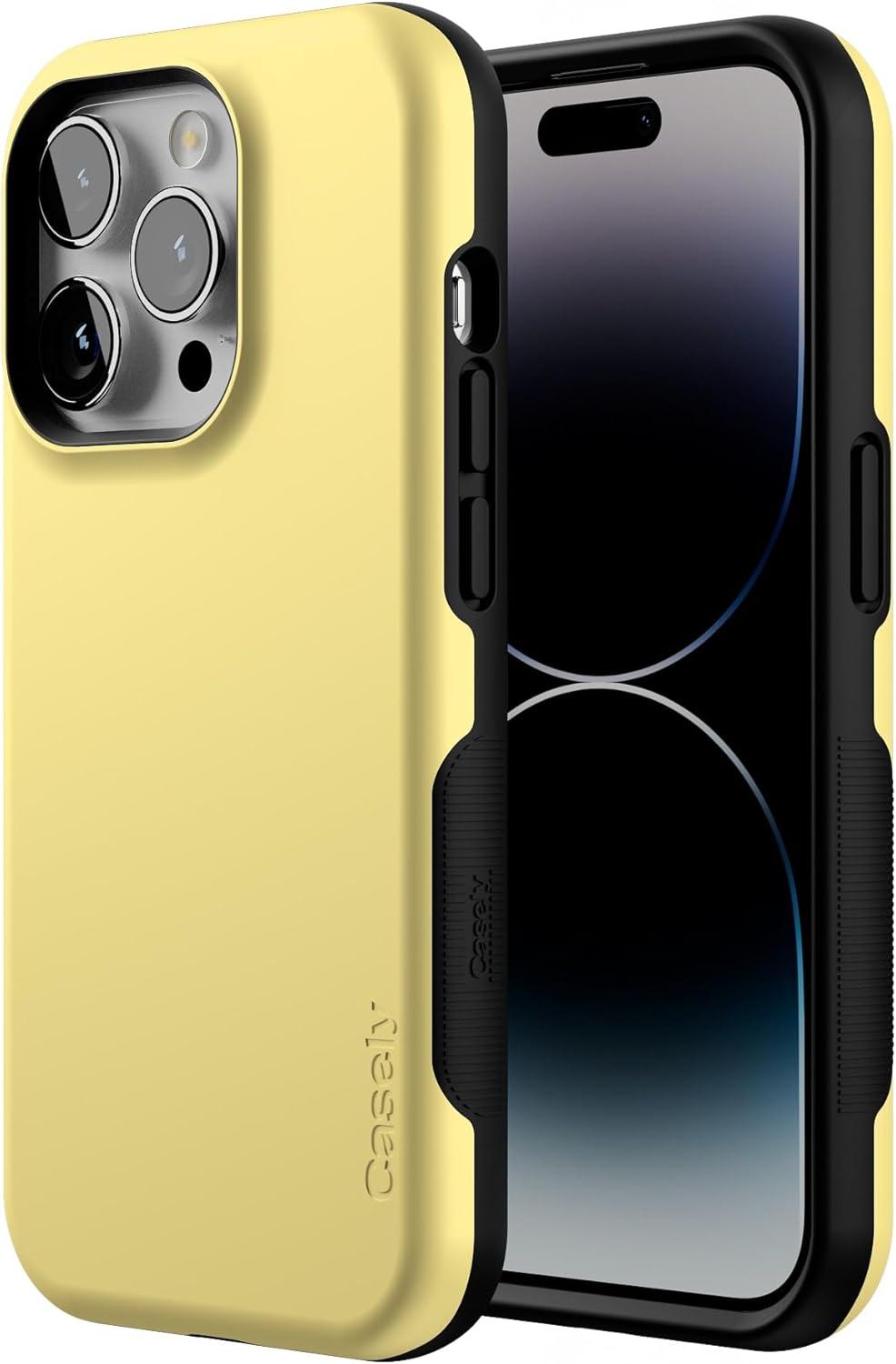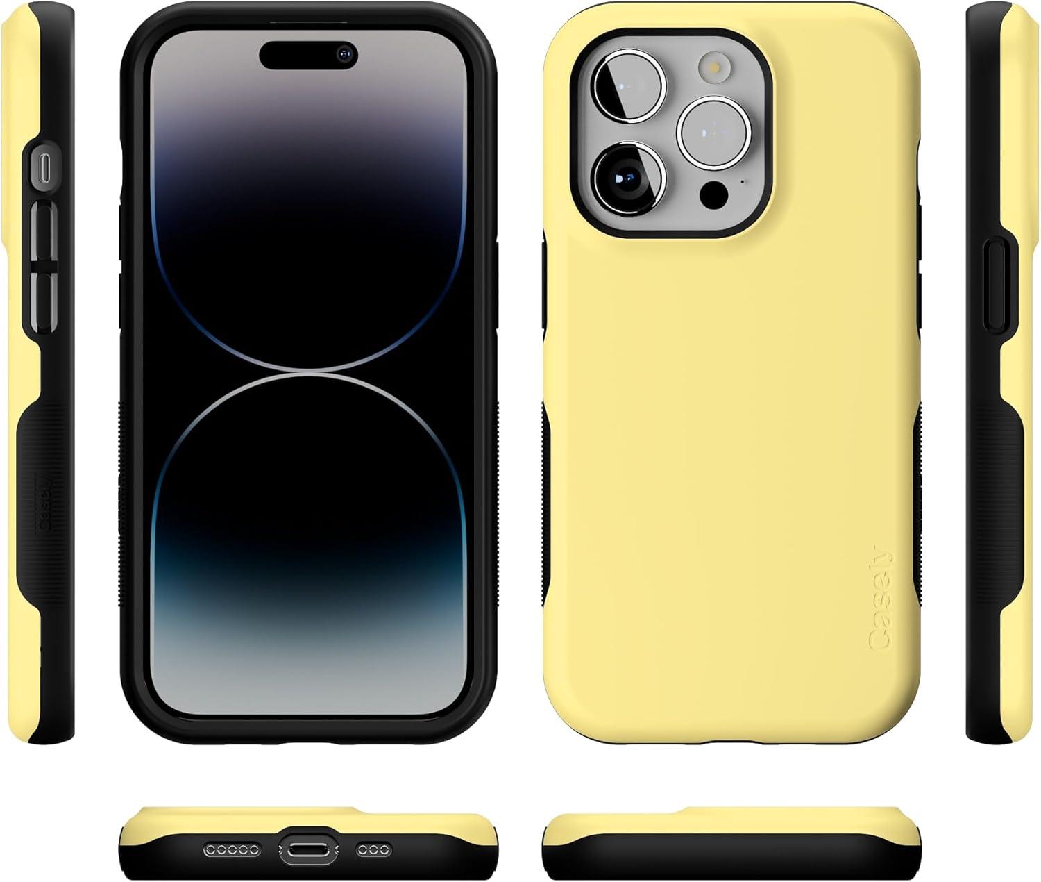 Casely iPhone 14 Pro Case | Opposites Attract | Day & Night Mountains | Compatible with MagSafe | Bold Protective Design(Butter Me Up | Butter Yellow)
