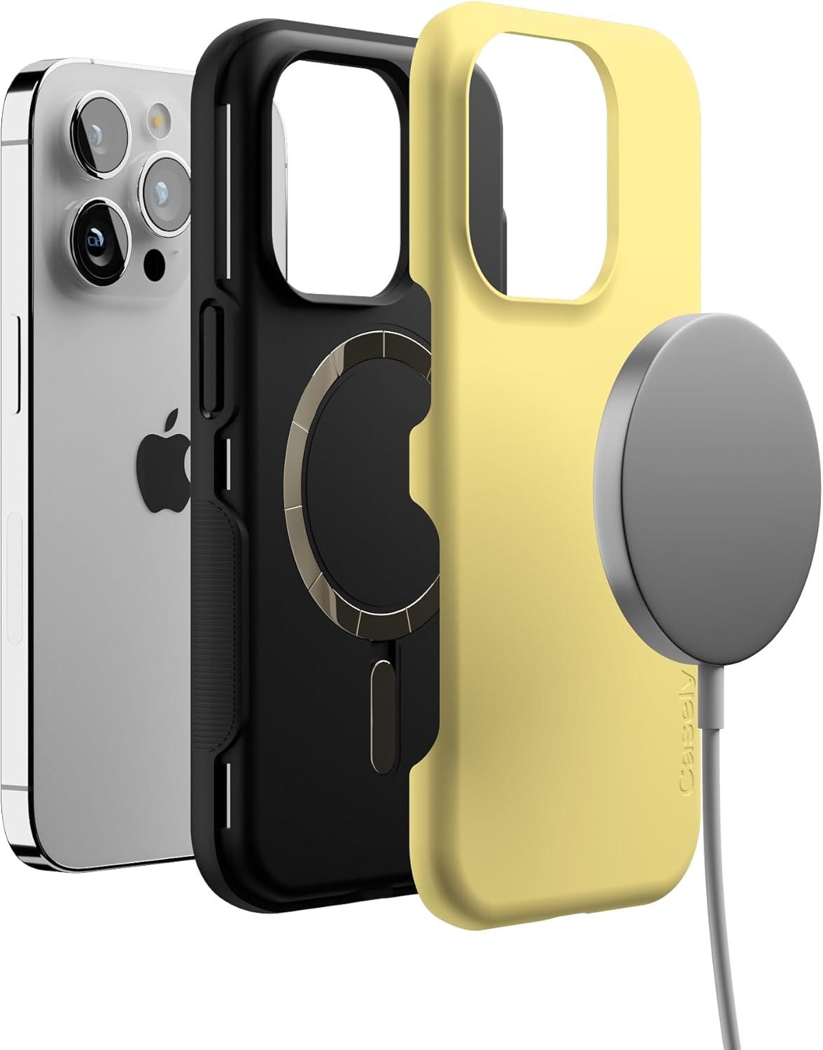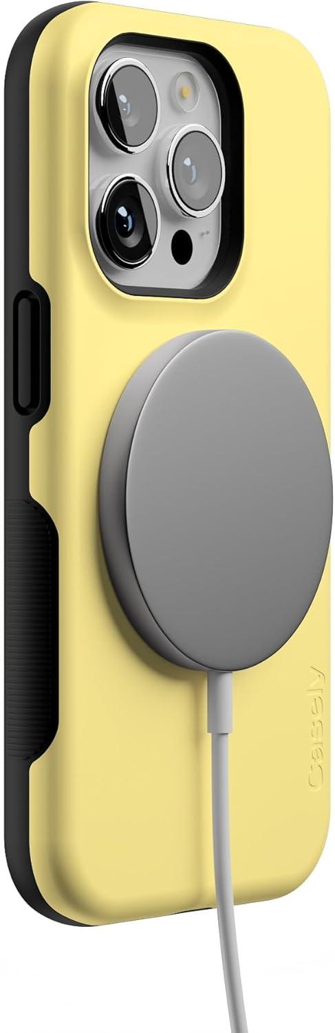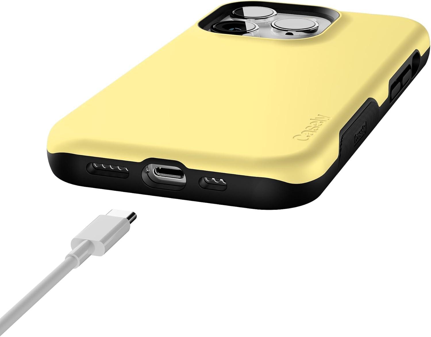 Casely iPhone 14 Pro Case | Opposites Attract | Day & Night Mountains | Compatible with MagSafe | Bold Protective Design(Butter Me Up | Butter Yellow)