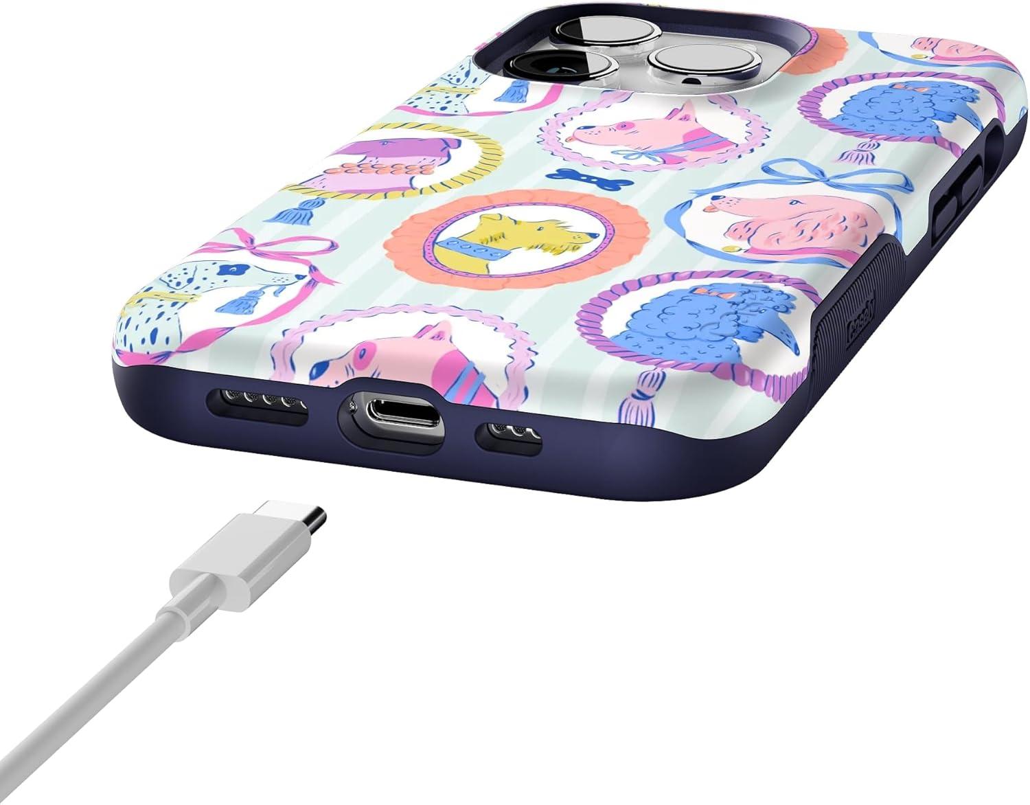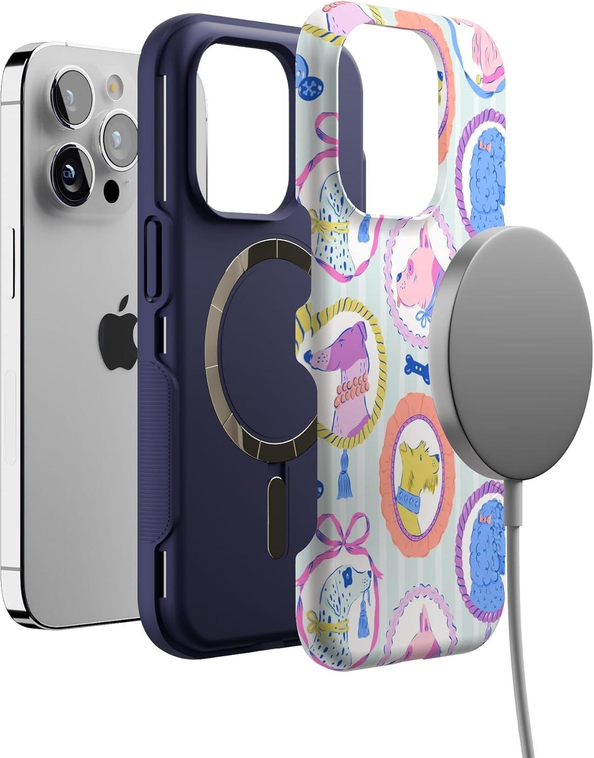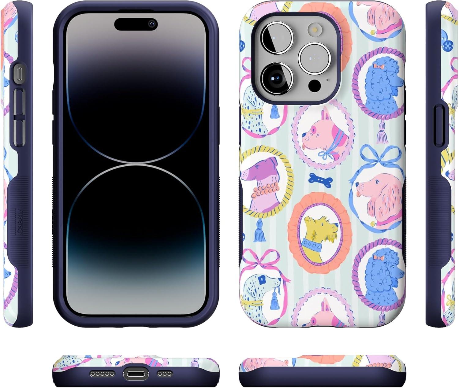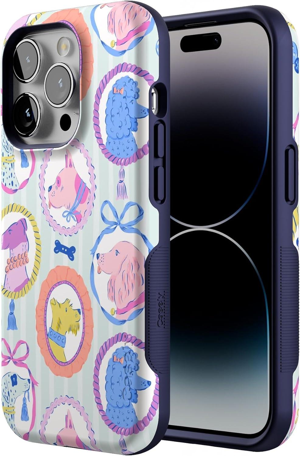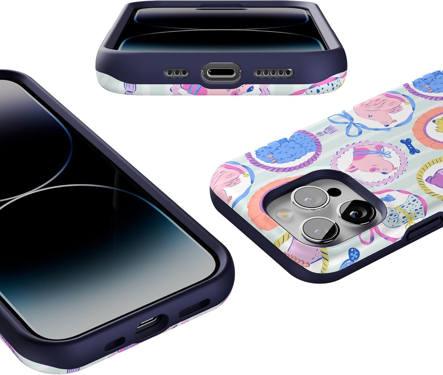 Casely iPhone 14 Pro Case | Opposites Attract | Day & Night Mountains | Compatible with MagSafe | Bold Protective Design(Chateau Pups | French Dog)