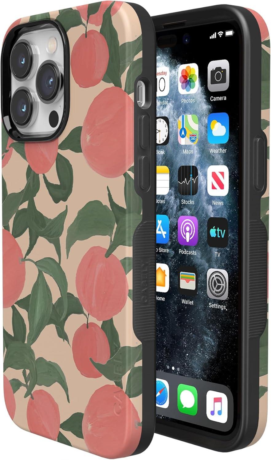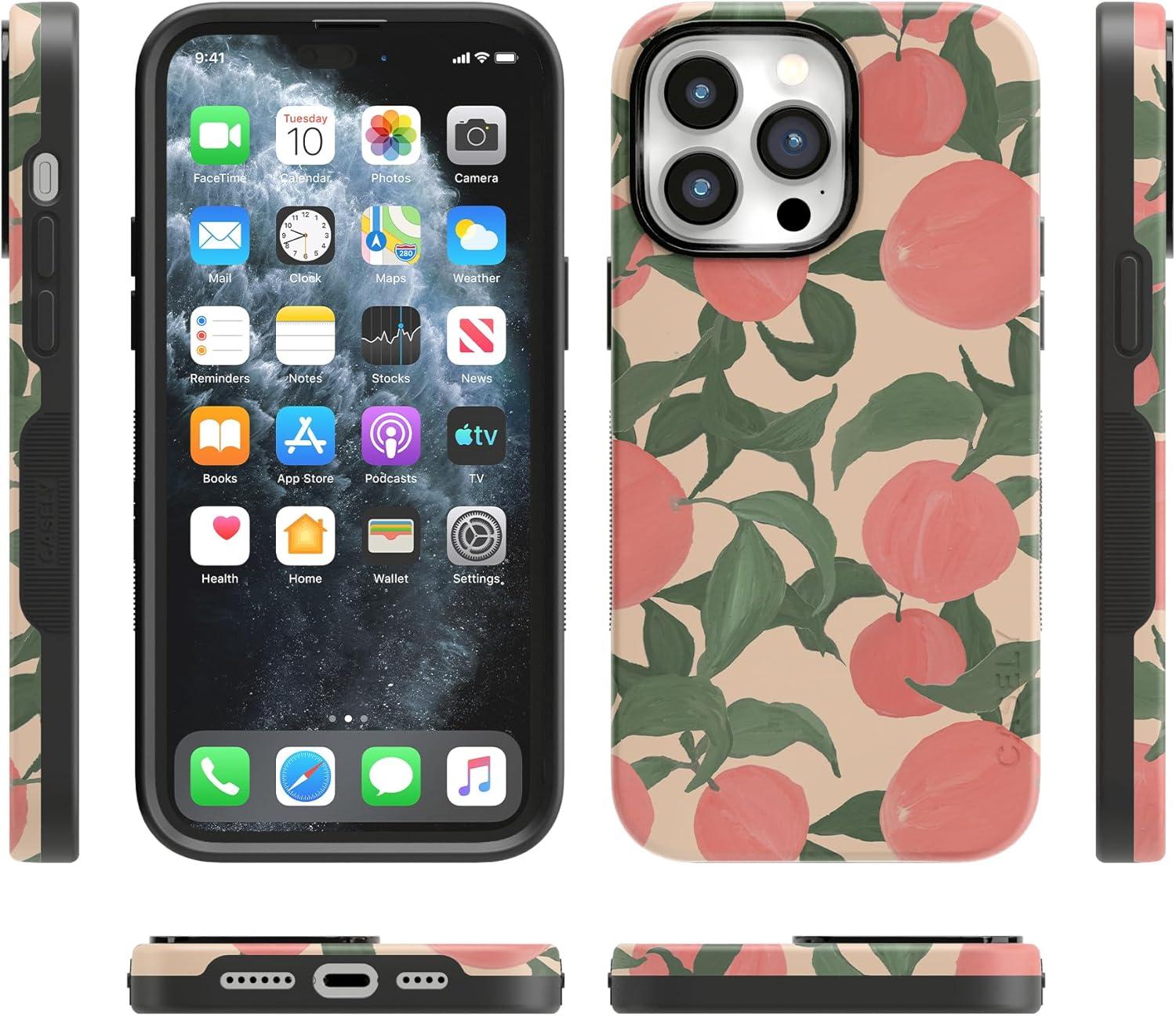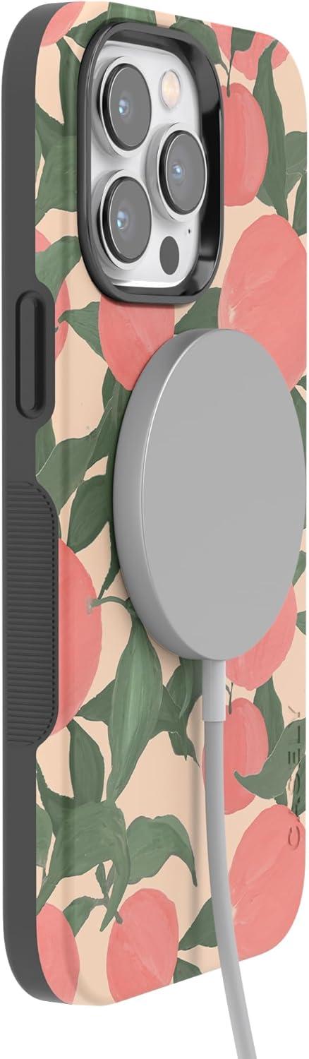 Casely iPhone 14 Pro Case | Opposites Attract | Day & Night Mountains | Compatible with MagSafe | Bold Protective Design(Feeling Peachy | Blush Vines)