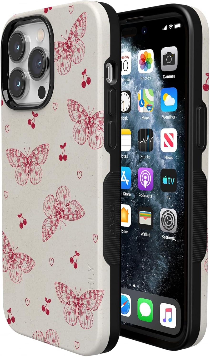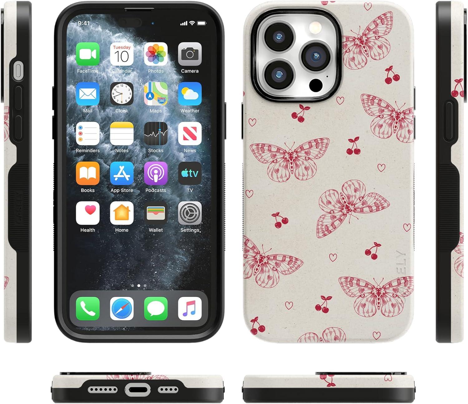 Casely iPhone 14 Pro Case | Opposites Attract | Day & Night Mountains | Compatible with MagSafe | Bold Protective Design(Heart Flutters | Butterfly)