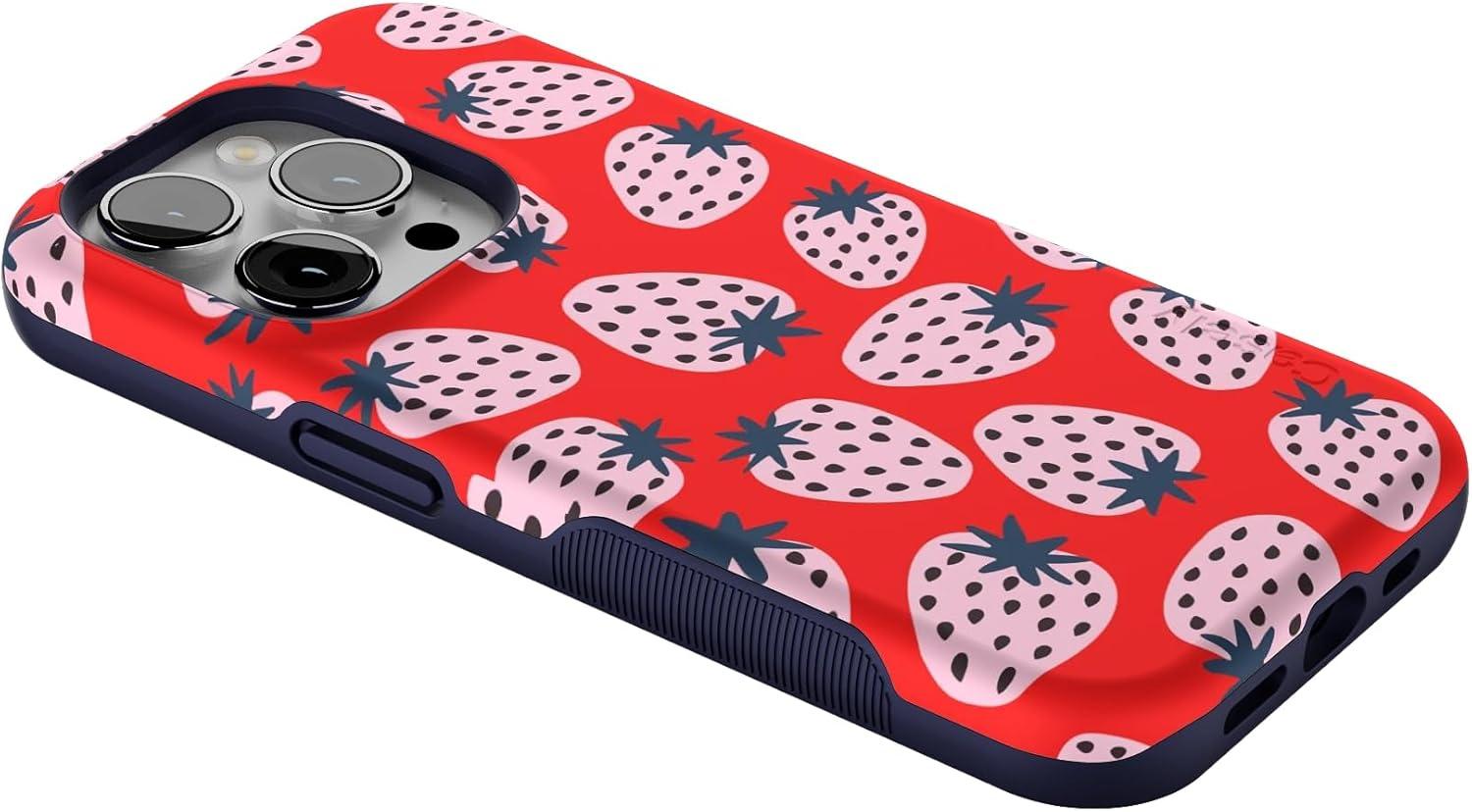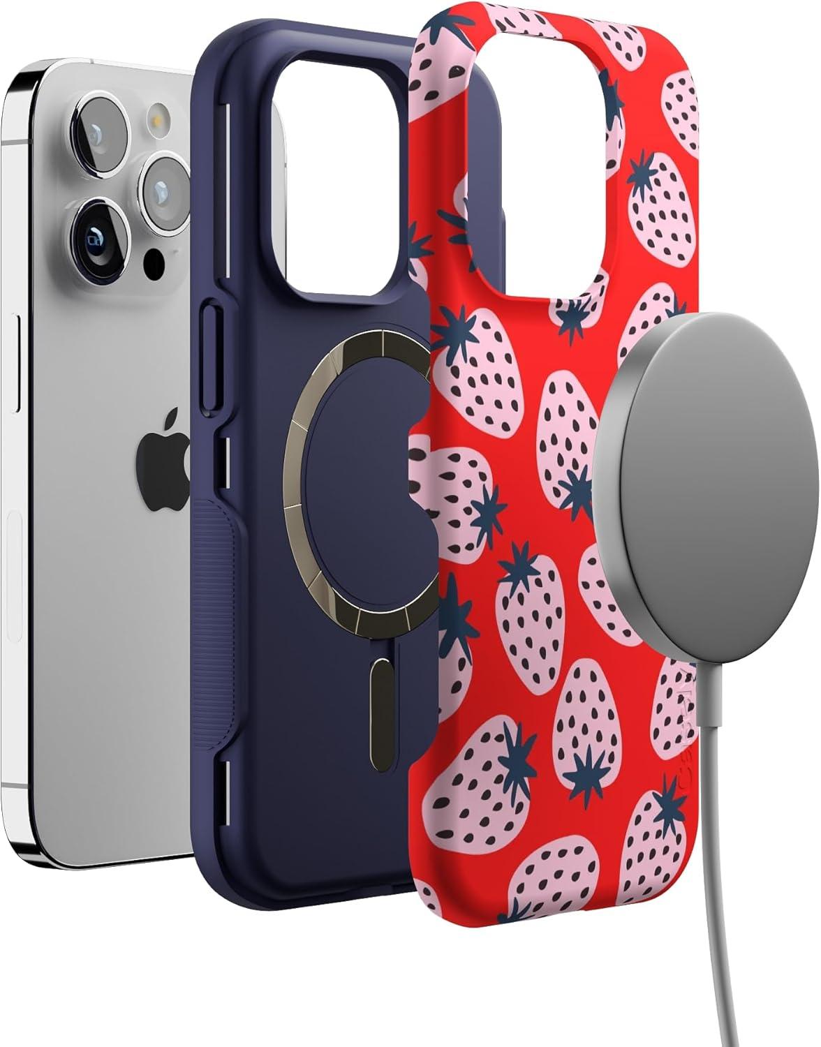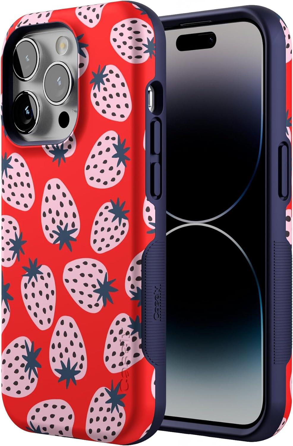 Casely iPhone 14 Pro Case | Opposites Attract | Day & Night Mountains | Compatible with MagSafe | Bold Protective Design(I’d Pick You | Red Strawberry)