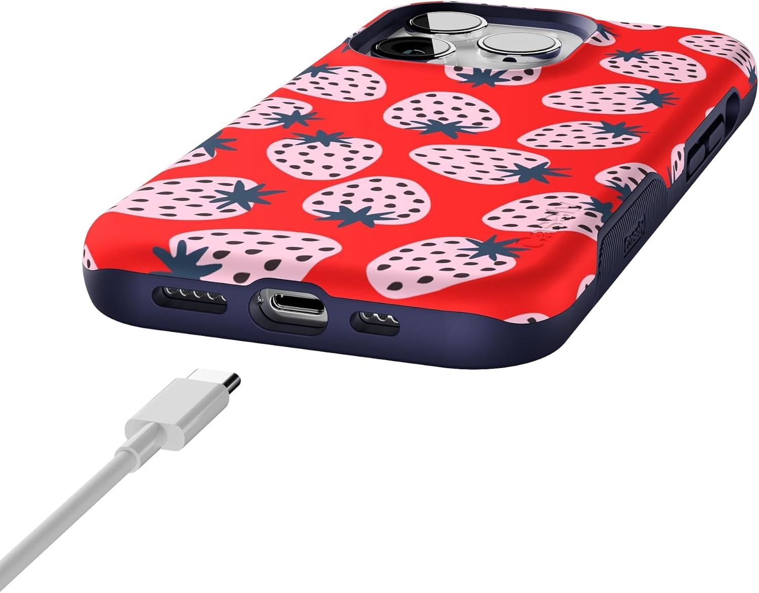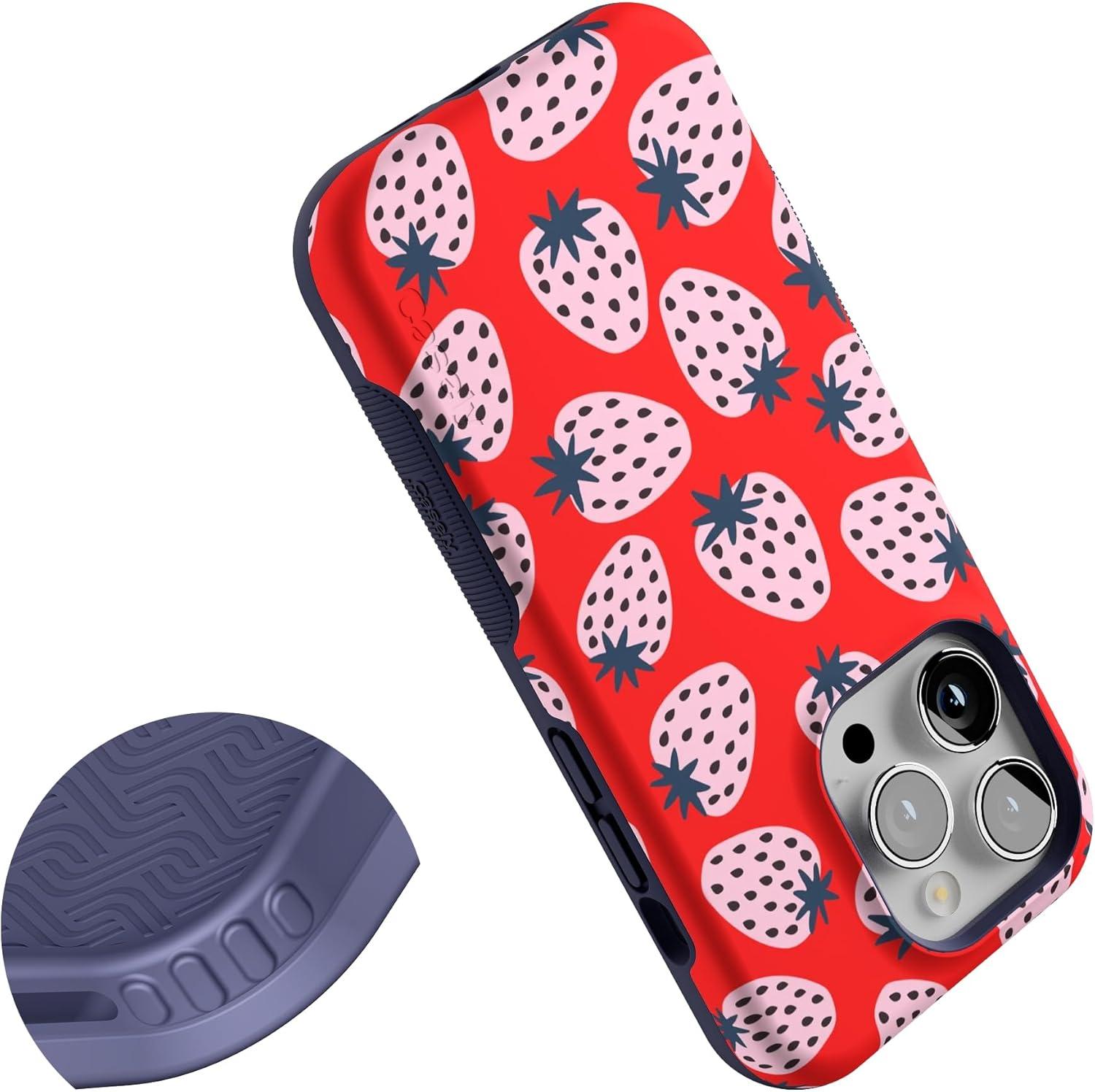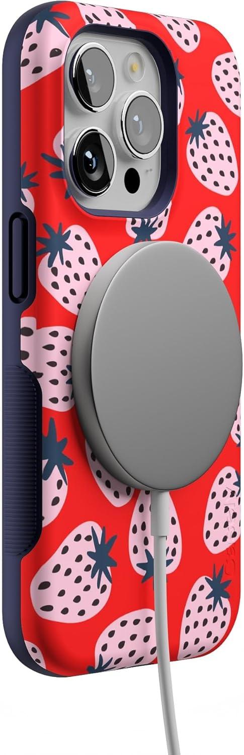 Casely iPhone 14 Pro Case | Opposites Attract | Day & Night Mountains | Compatible with MagSafe | Bold Protective Design(I’d Pick You | Red Strawberry)