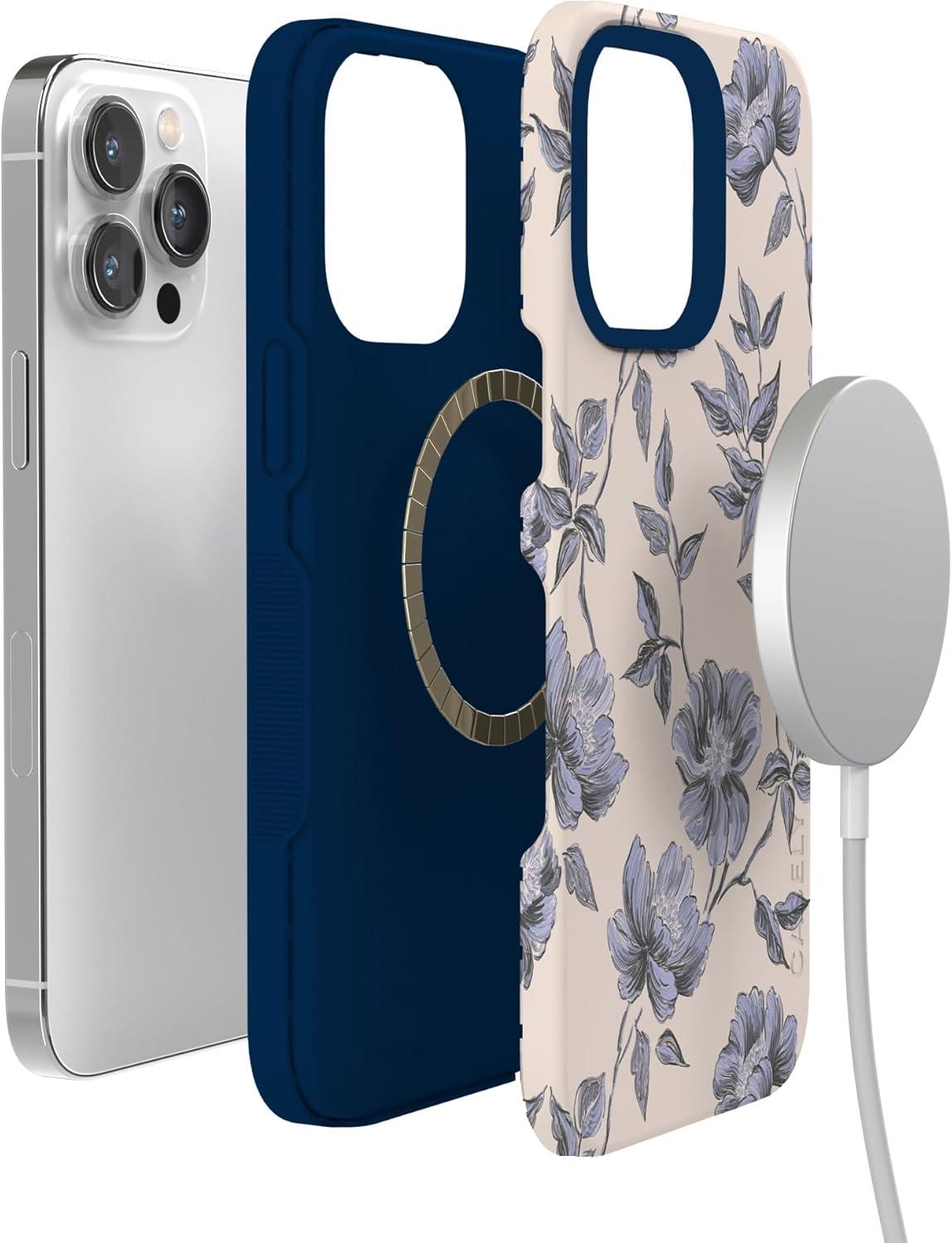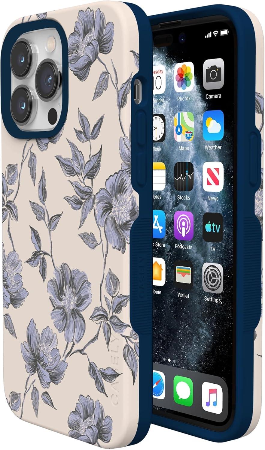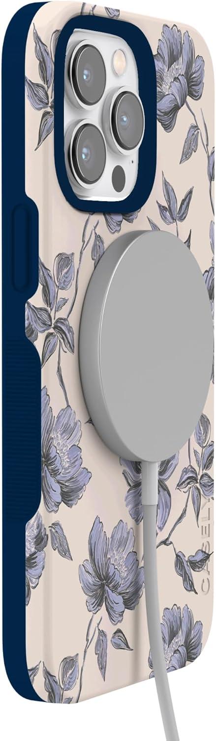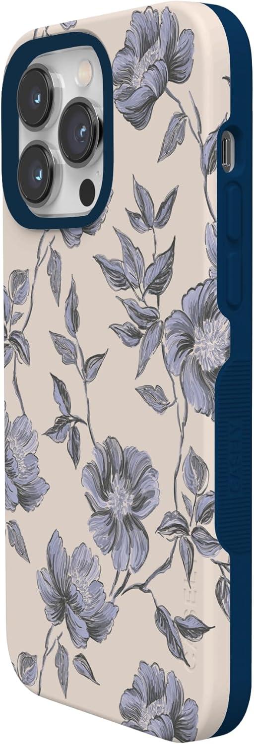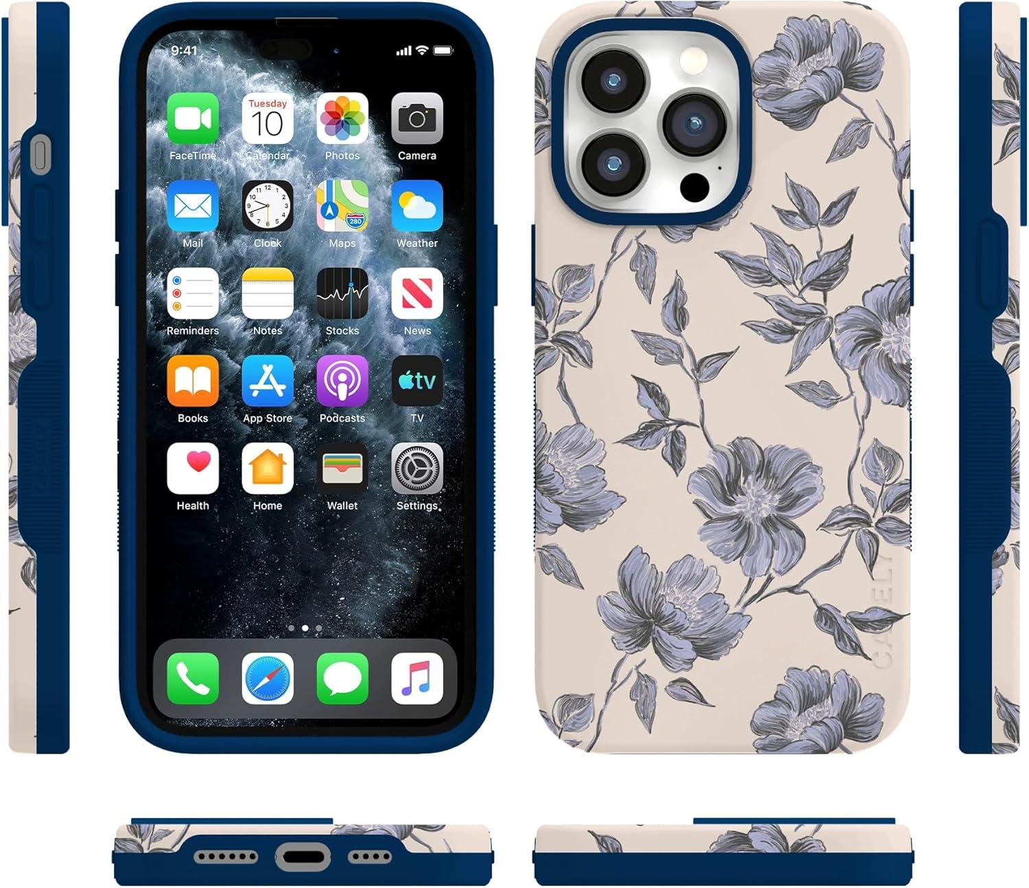 Casely iPhone 14 Pro Case | Opposites Attract | Day & Night Mountains | Compatible with MagSafe | Bold Protective Design(Ink & Iris | Vintage Floral)