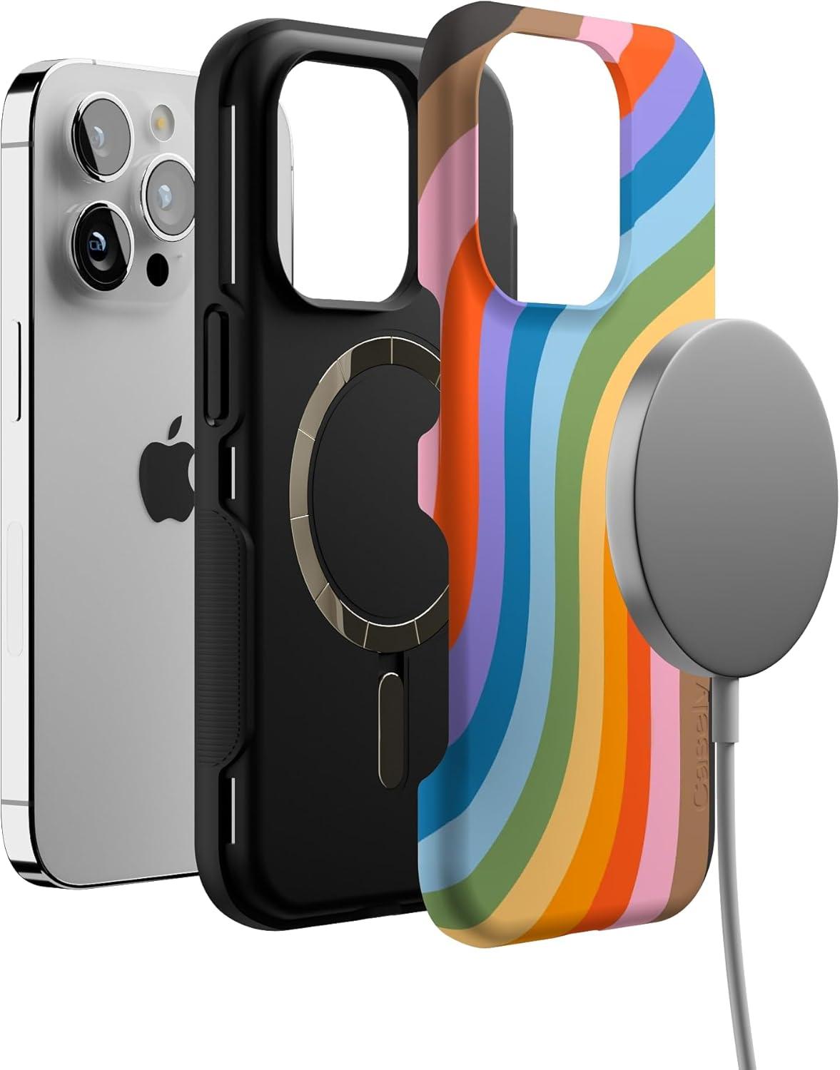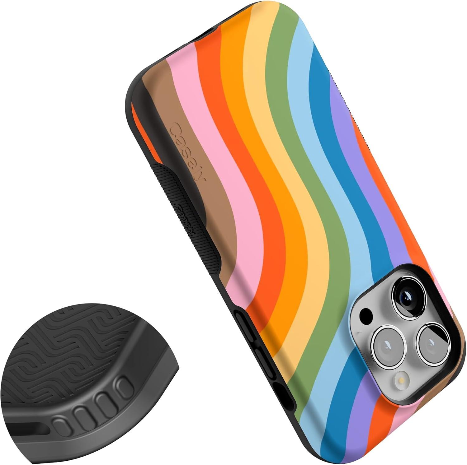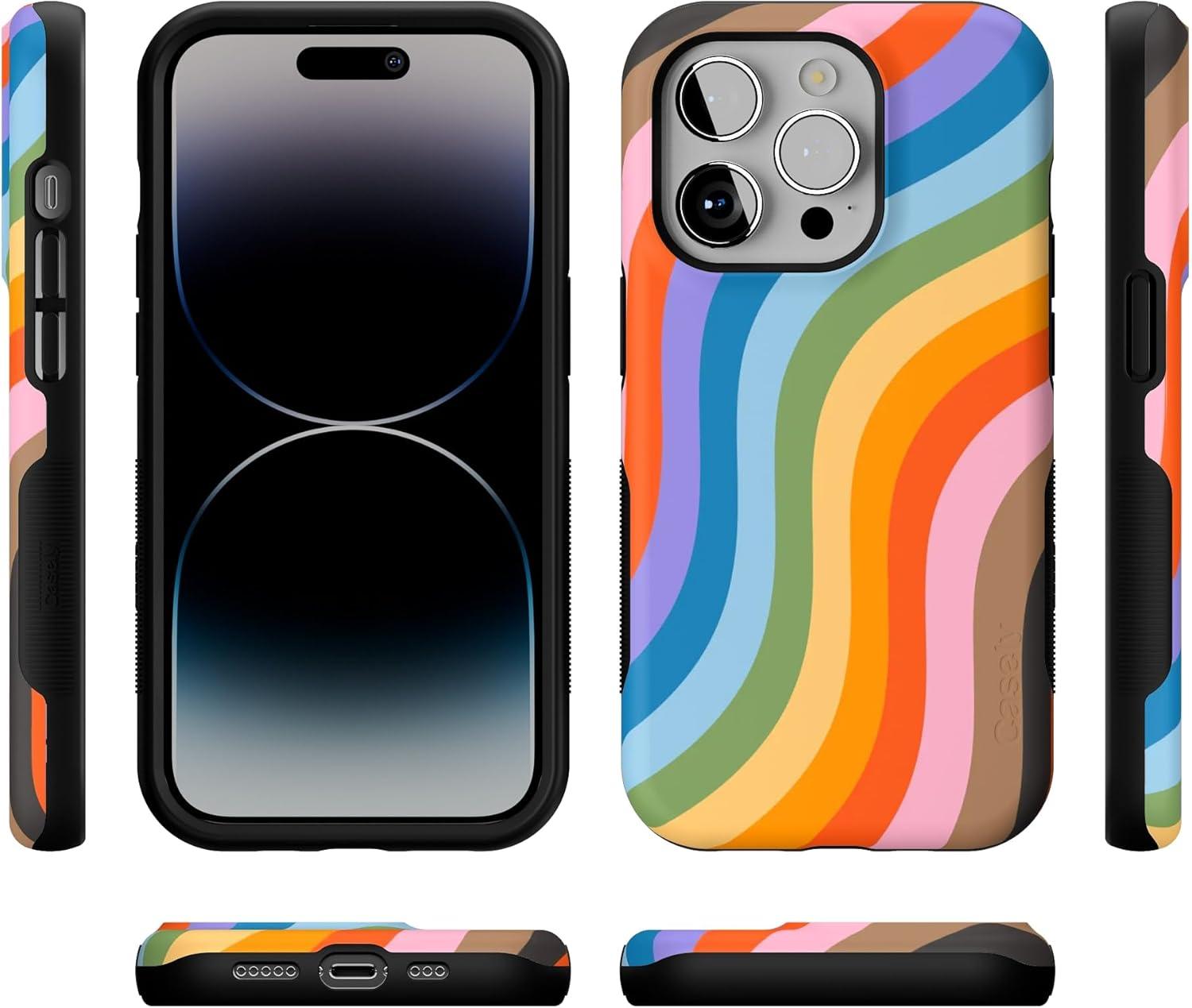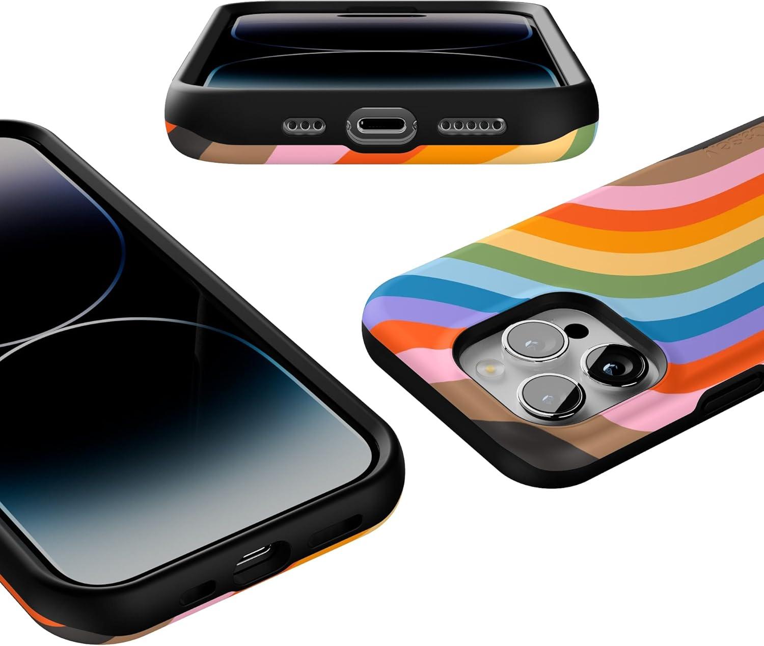 Casely iPhone 14 Pro Case | Opposites Attract | Day & Night Mountains | Compatible with MagSafe | Bold Protective Design(Love for All | Rainbow Pride)