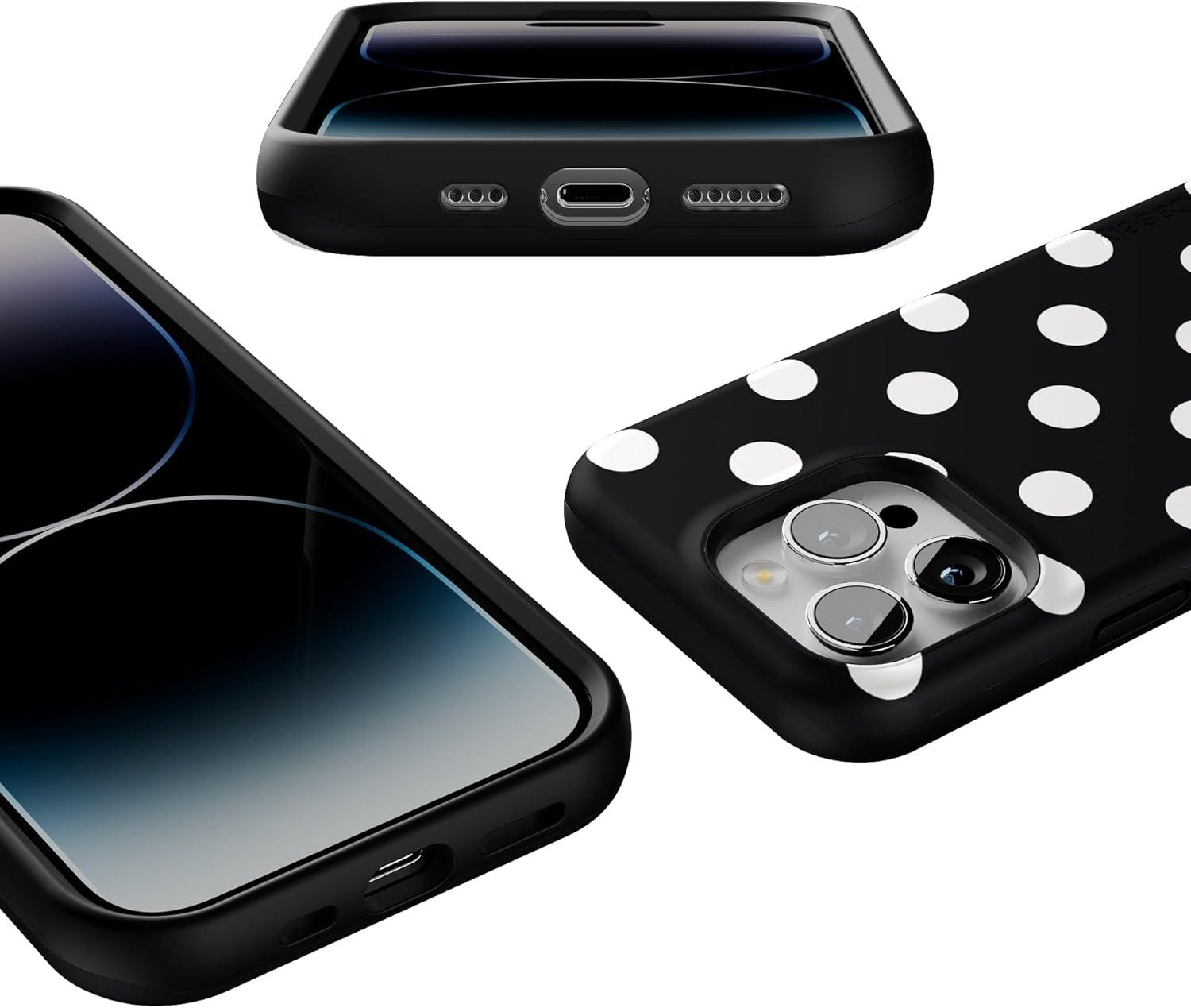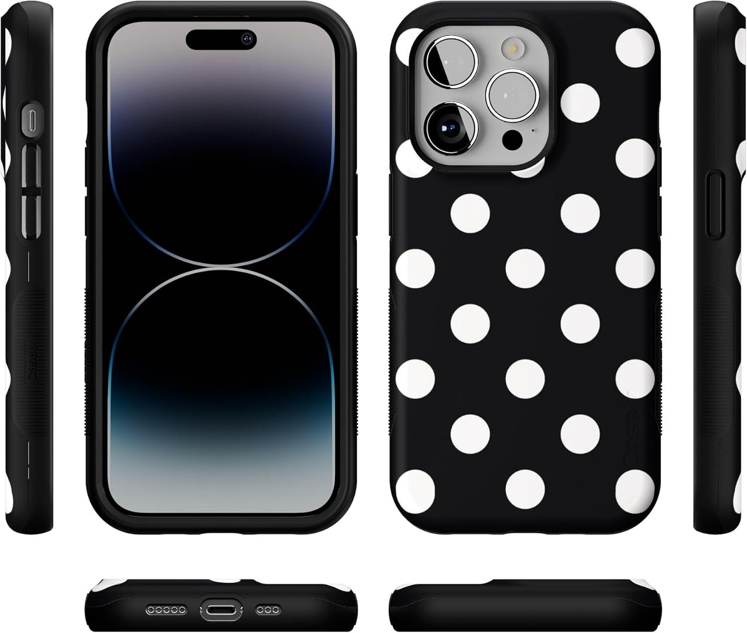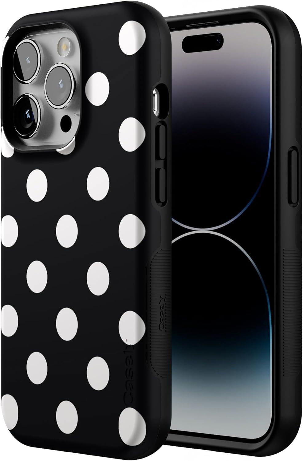 Casely iPhone 14 Pro Case | Opposites Attract | Day & Night Mountains | Compatible with MagSafe | Bold Protective Design(Polka Dots | High Contrast Design)