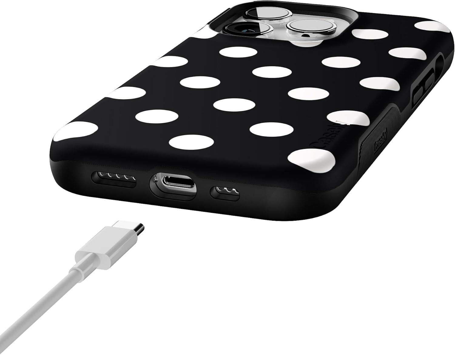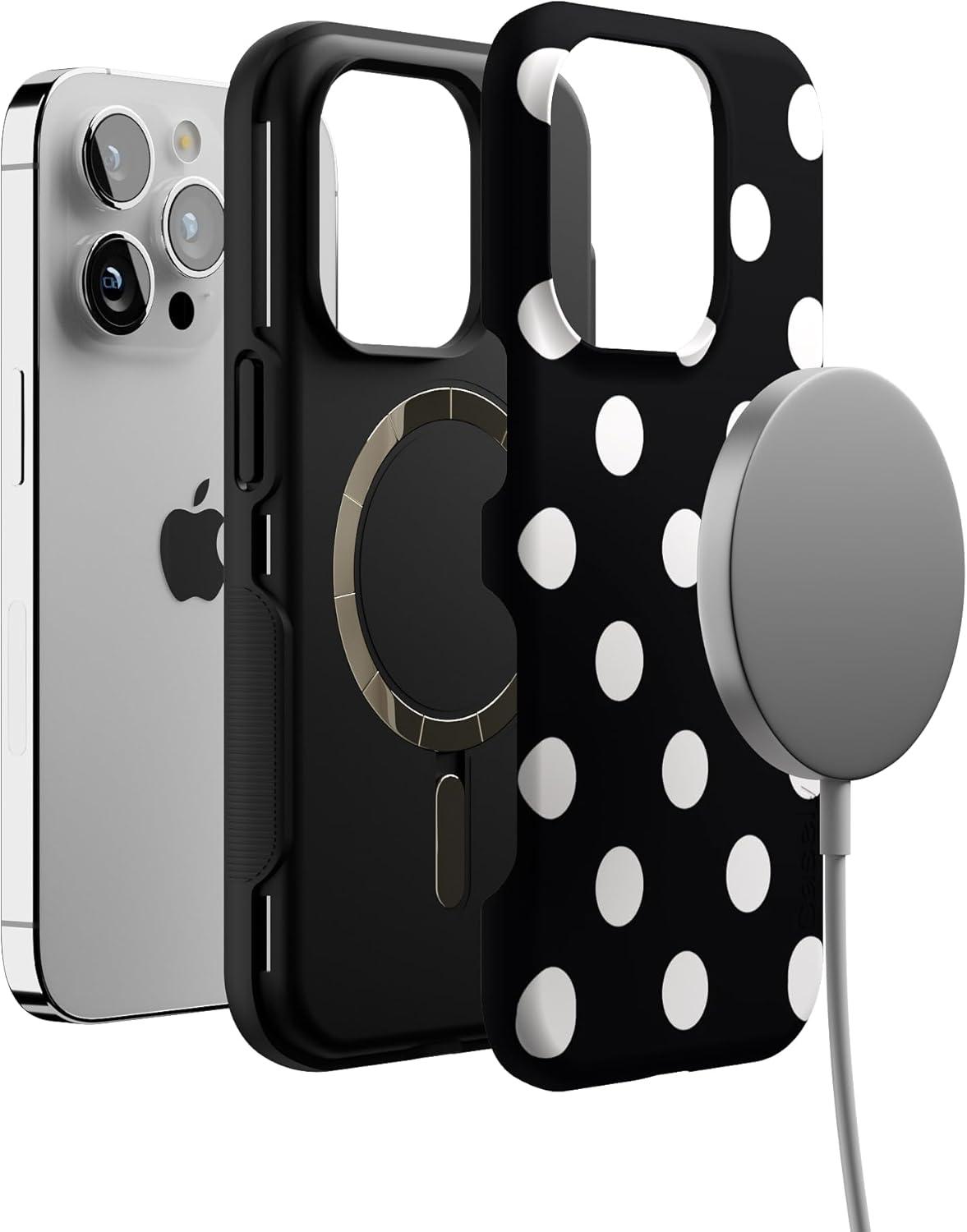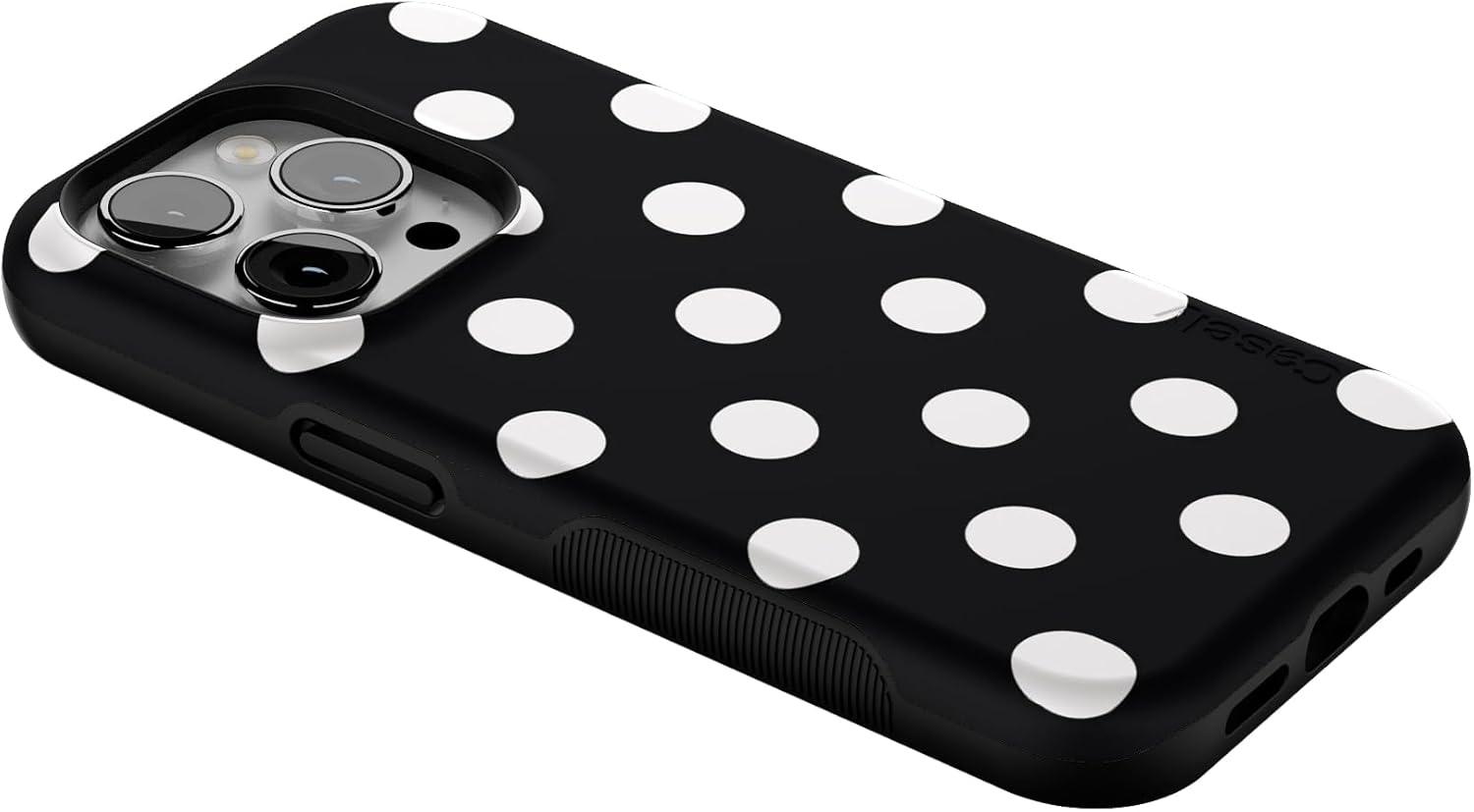 Casely iPhone 14 Pro Case | Opposites Attract | Day & Night Mountains | Compatible with MagSafe | Bold Protective Design(Polka Dots | High Contrast Design)