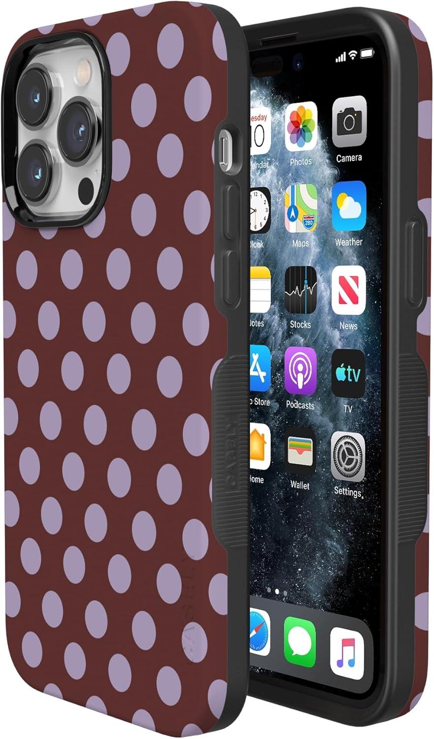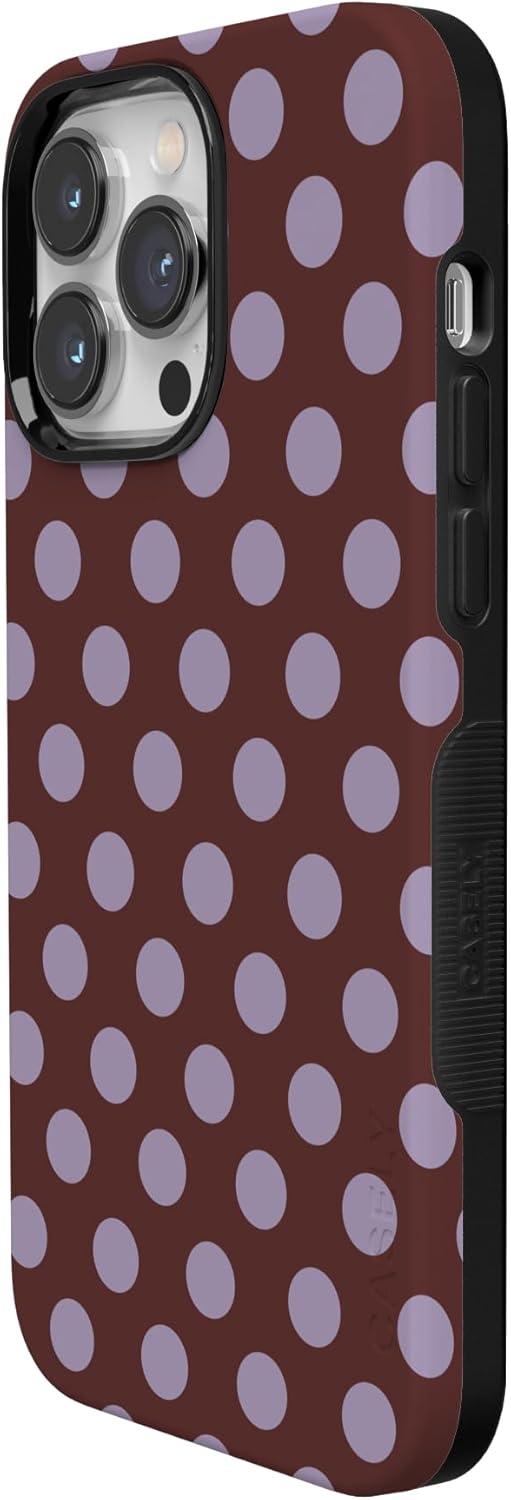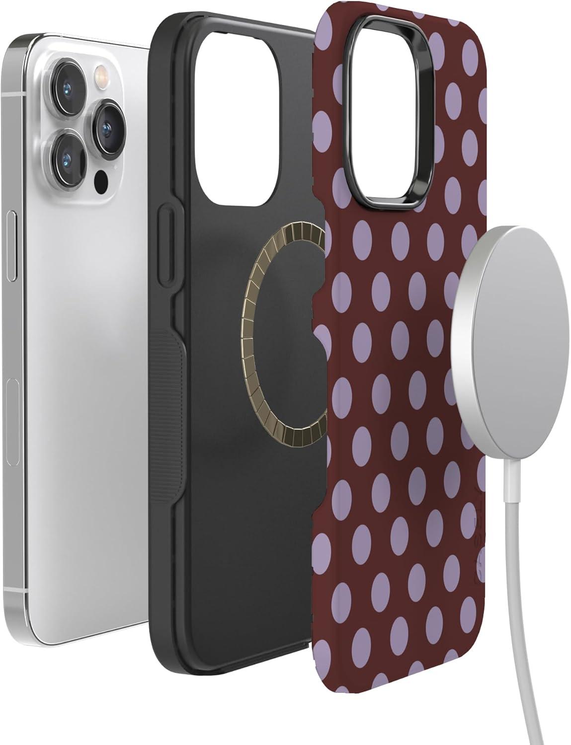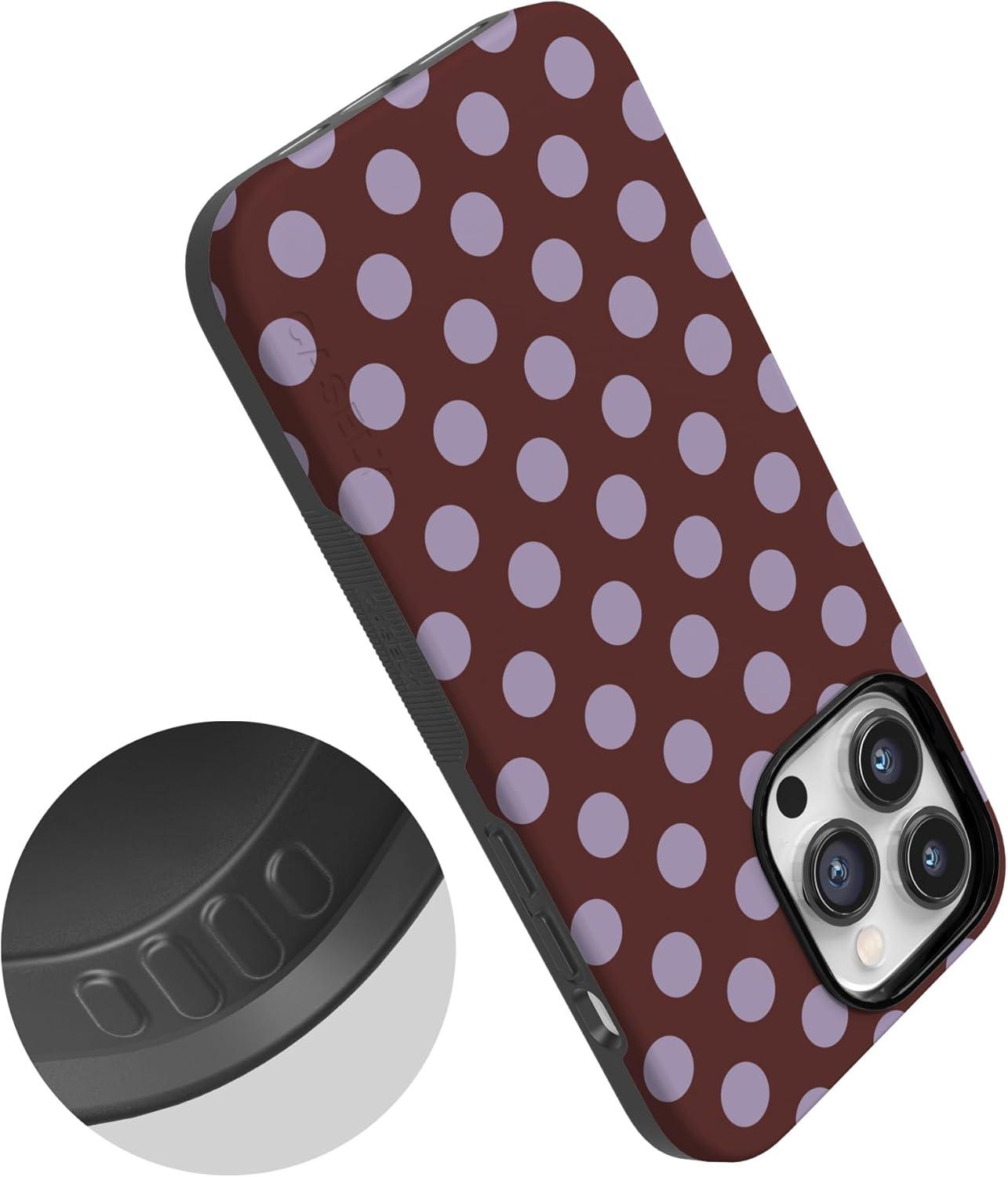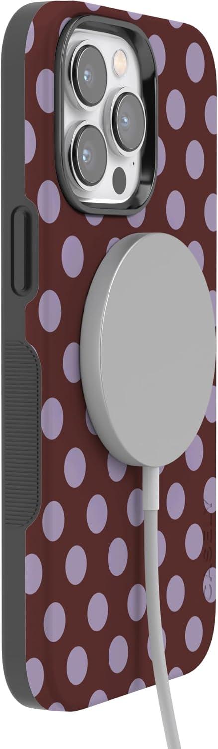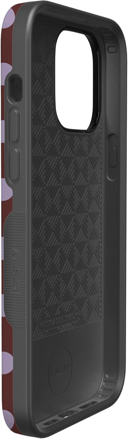 Casely iPhone 14 Pro Case | Opposites Attract | Day & Night Mountains | Compatible with MagSafe | Bold Protective Design(Spotted in SoHo | Burgundy Polka Dot)