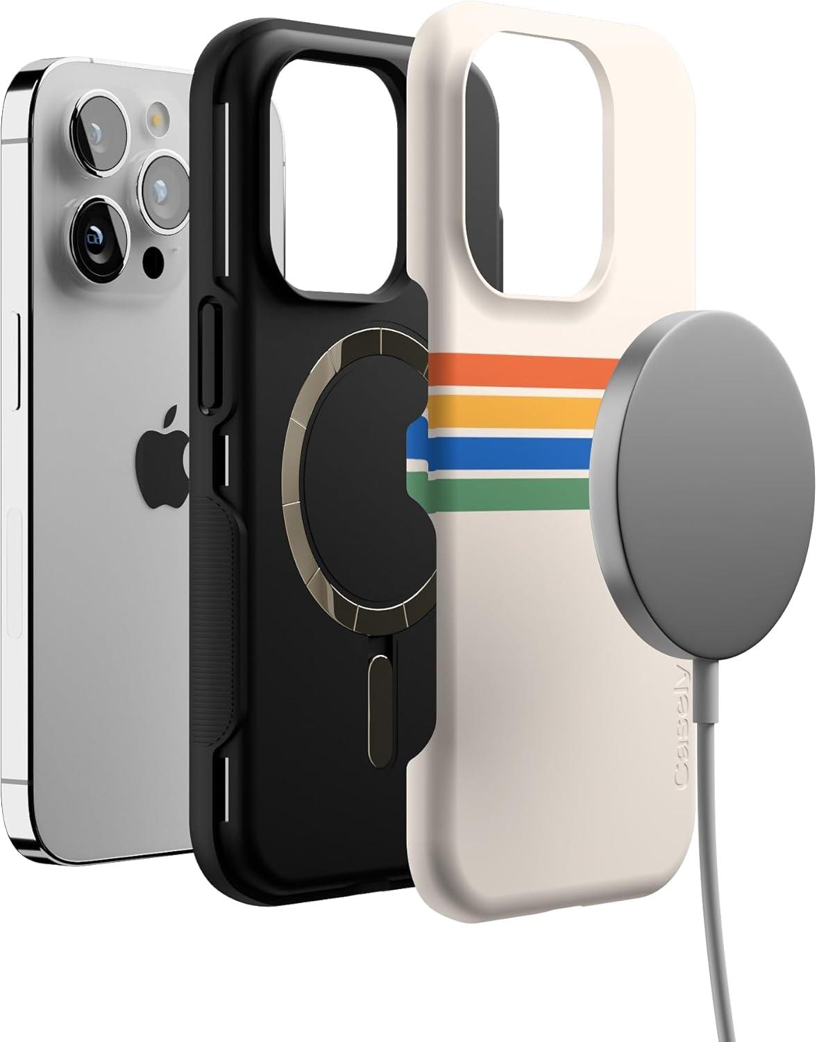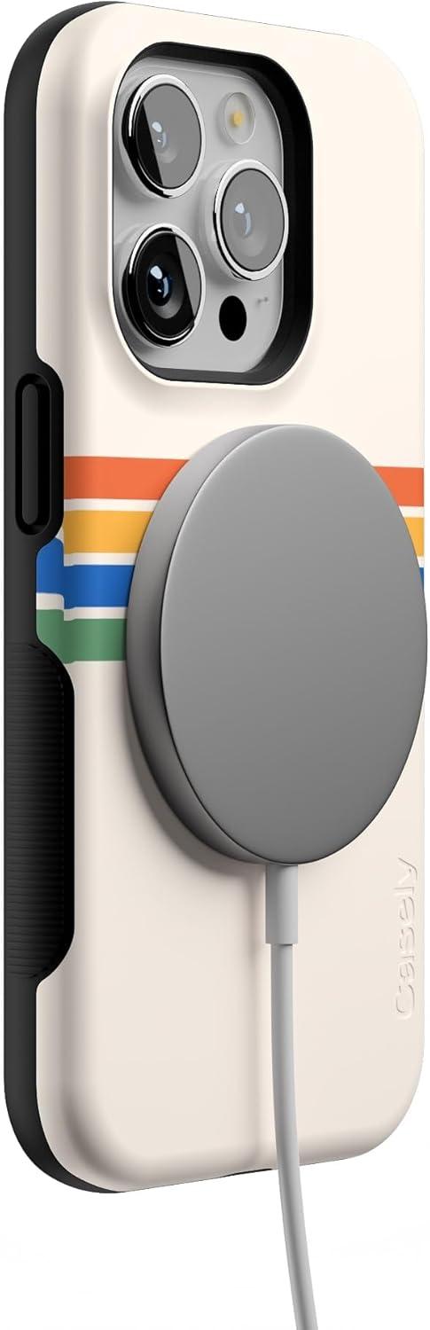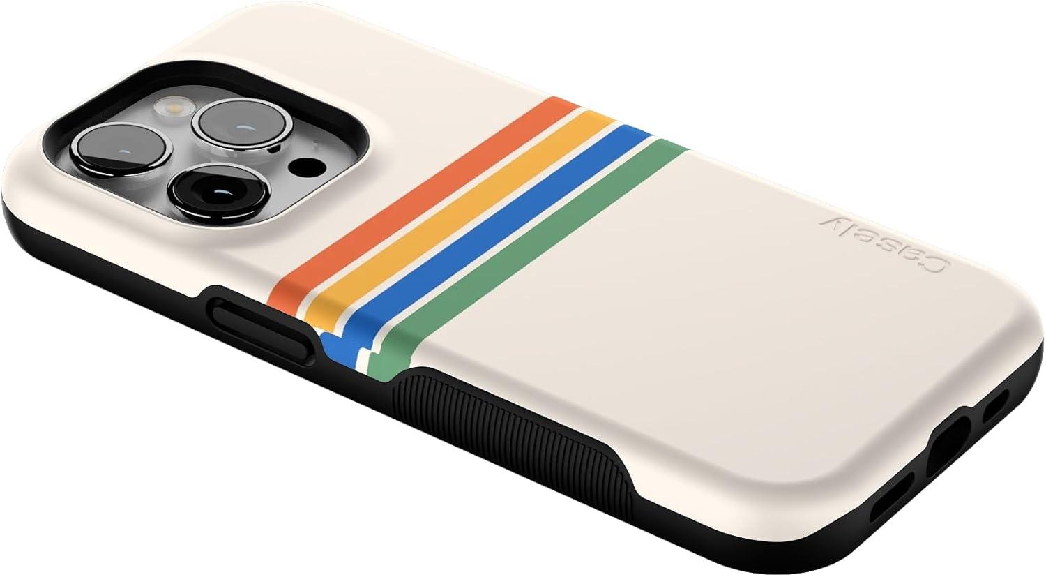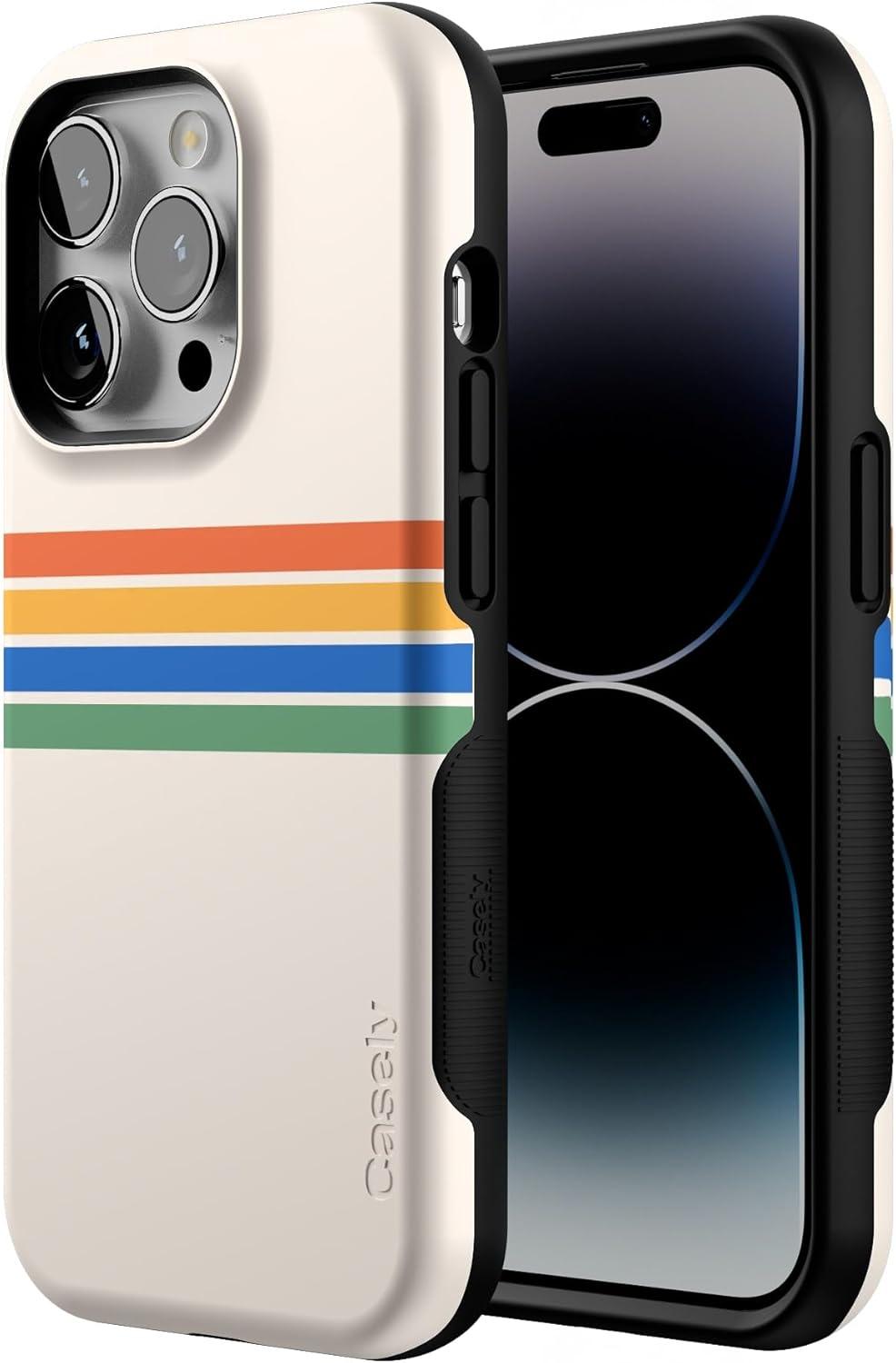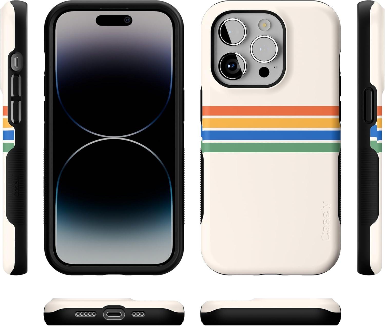 Casely iPhone 14 Pro Case | Opposites Attract | Day & Night Mountains | Compatible with MagSafe | Bold Protective Design(Totally Groovy | Rainbow Stripes Colorblock)