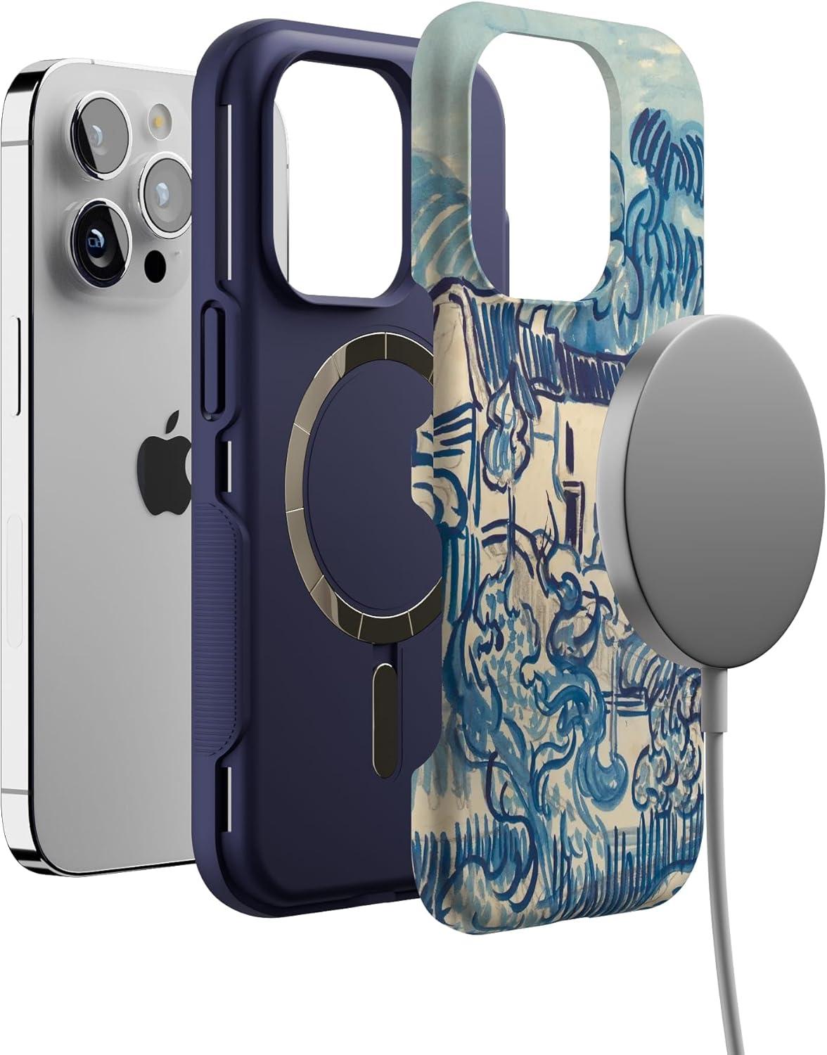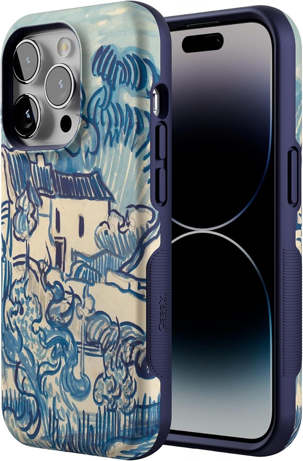 Casely iPhone 14 Pro Case | Opposites Attract | Day & Night Mountains | Compatible with MagSafe | Bold Protective Design(Van Gogh | Landscape With Houses)
