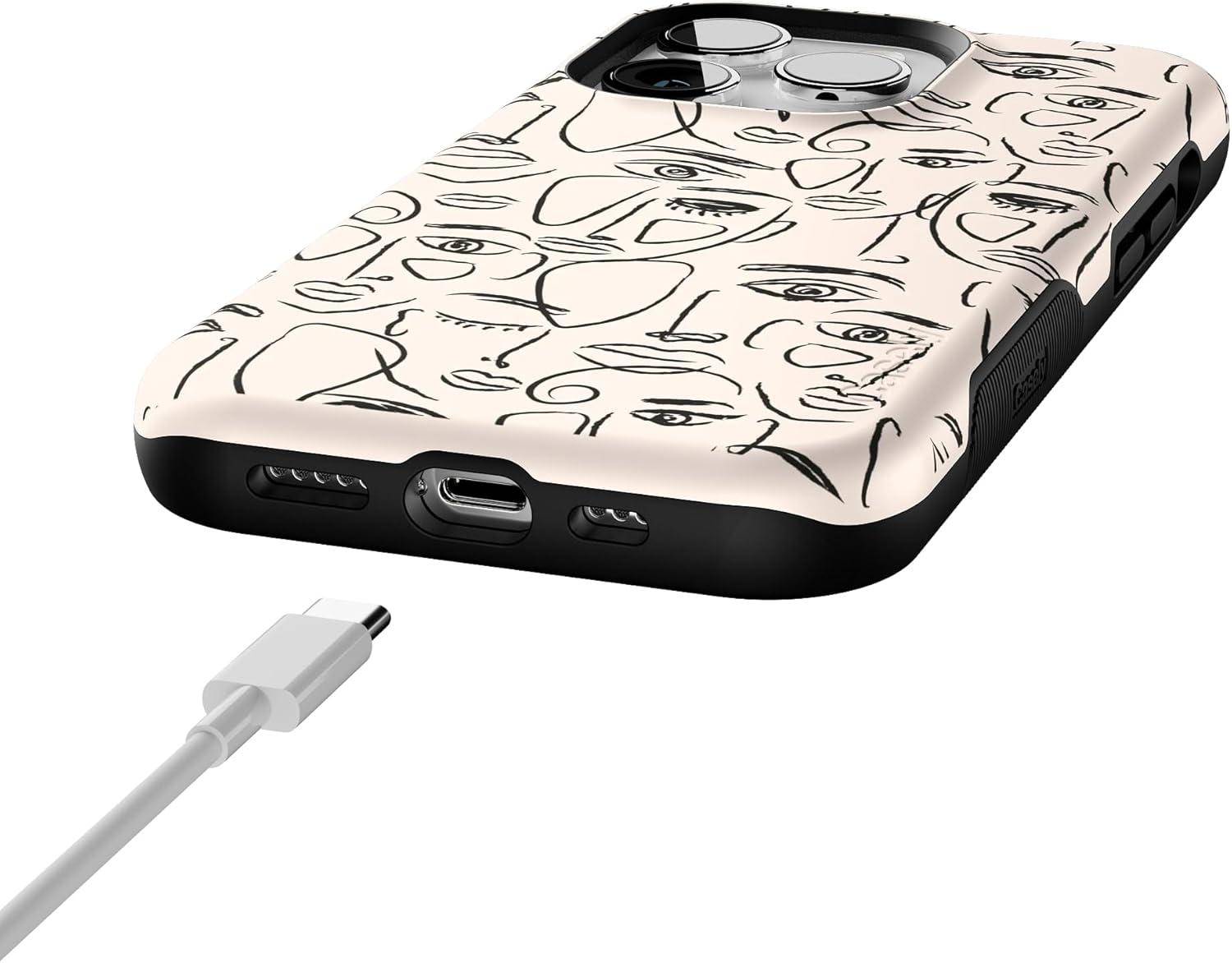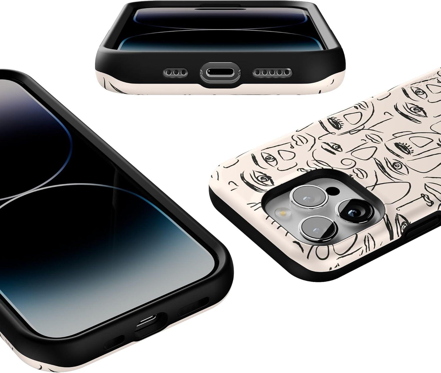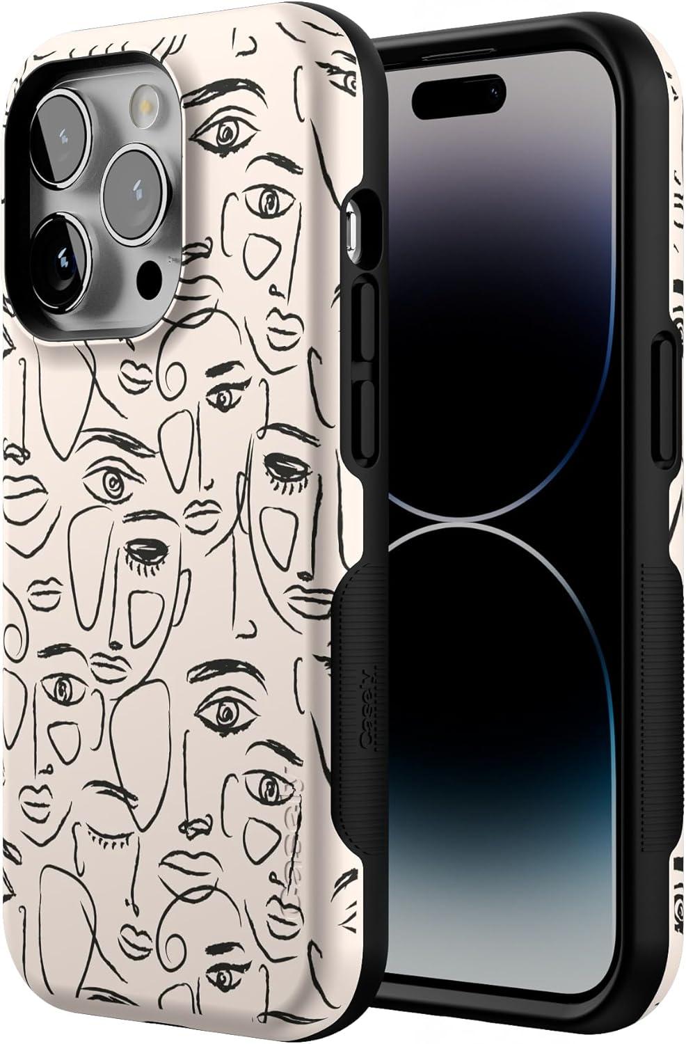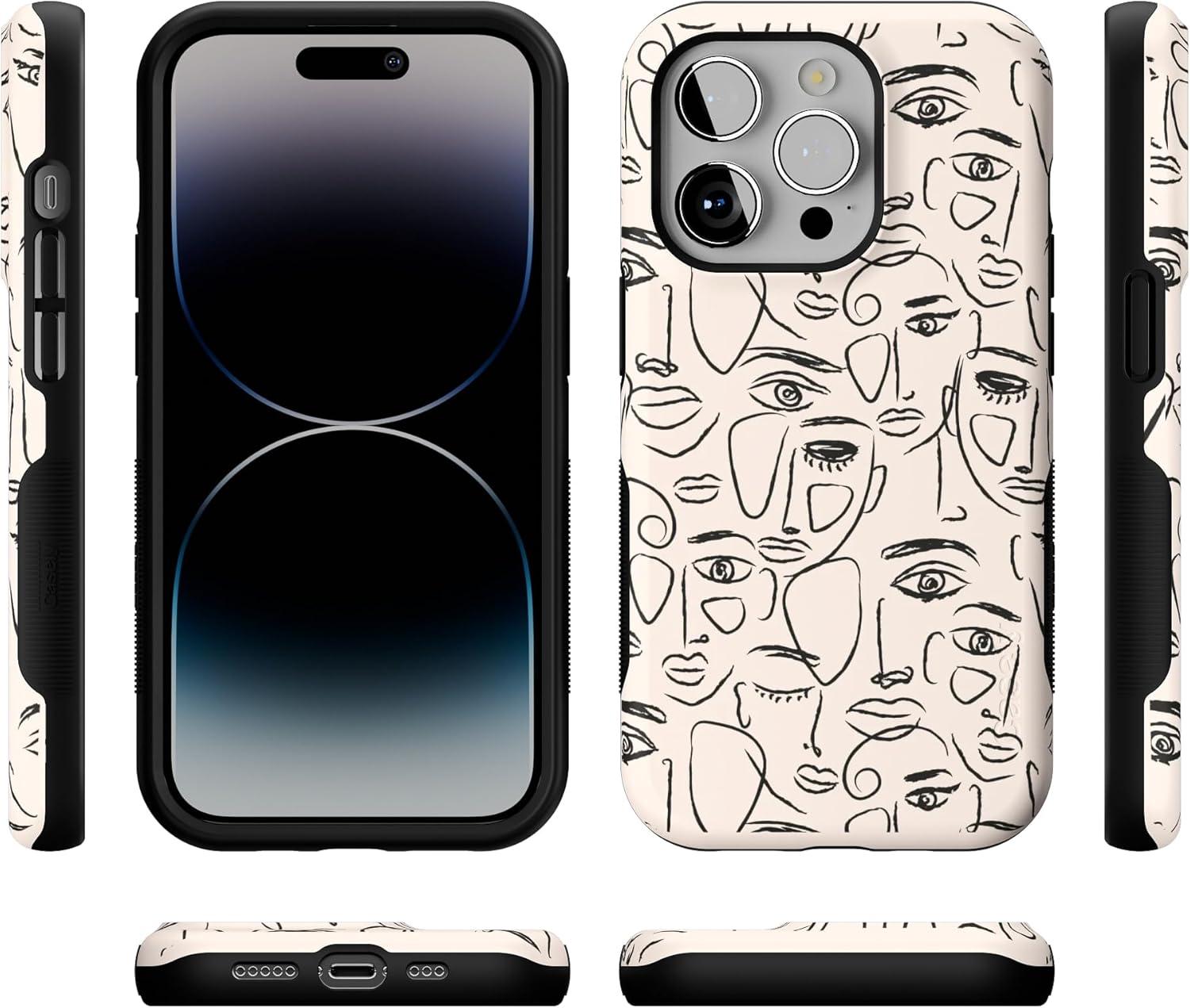 Casely iPhone 14 Pro Case | Opposites Attract | Day & Night Mountains | Compatible with MagSafe | Bold Protective Design(We’re All Human | Minimal Face Art)