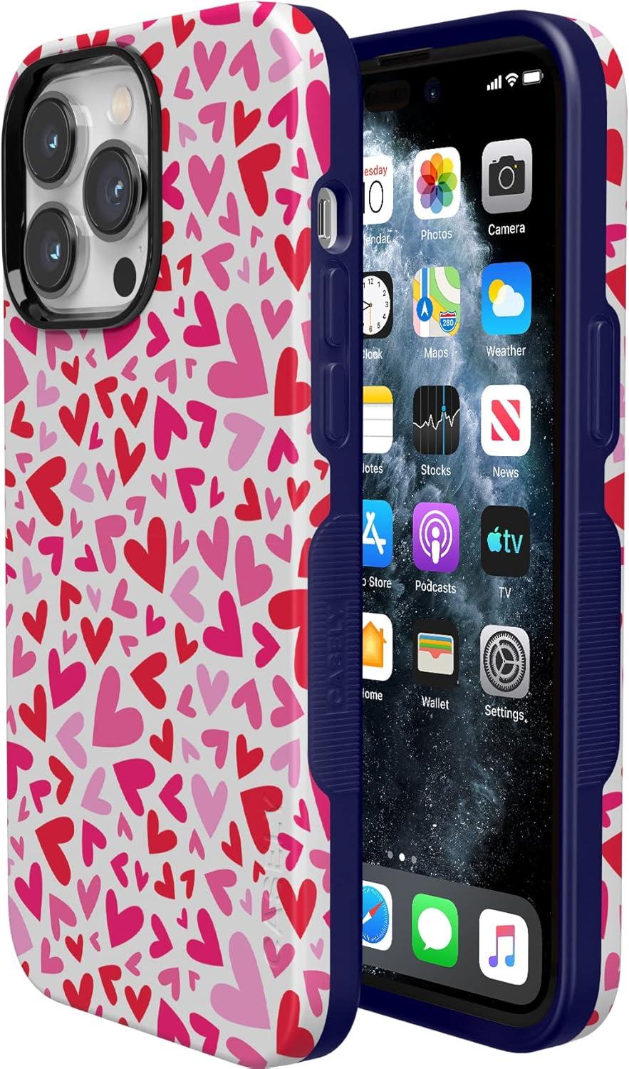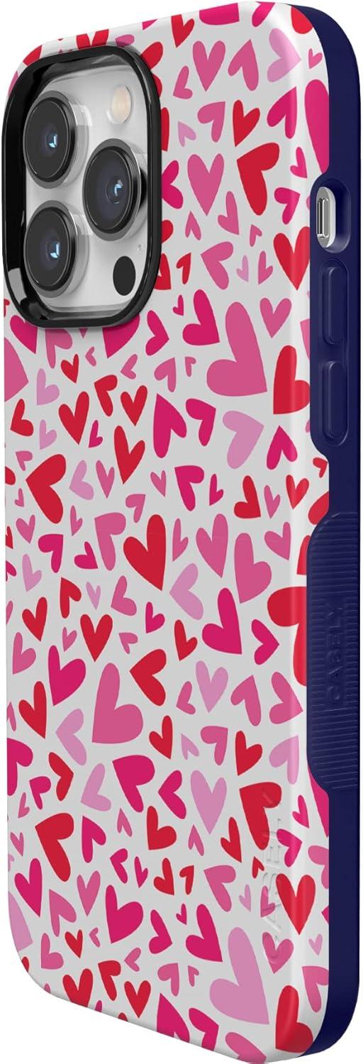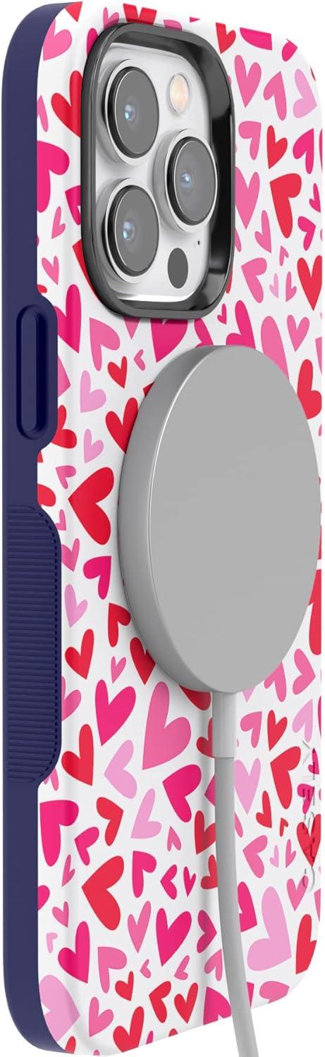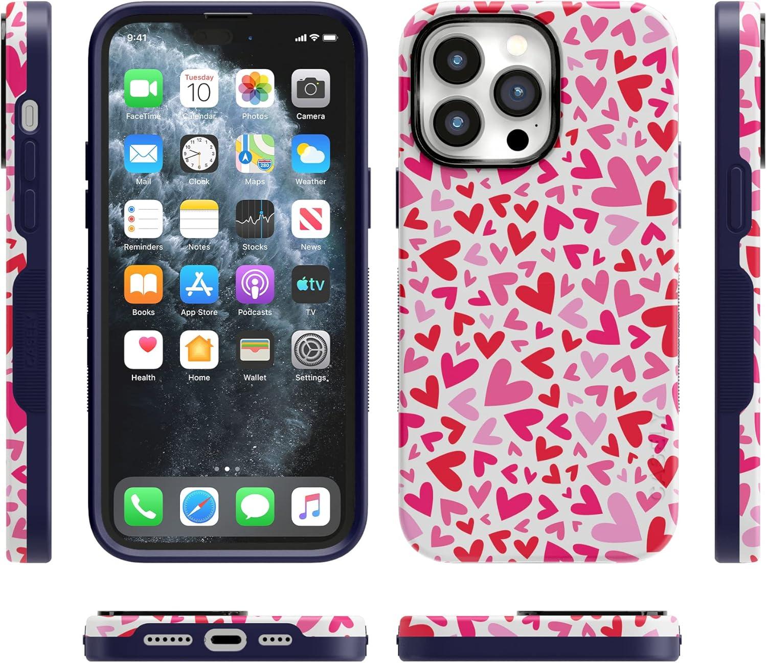 Casely iPhone 14 Pro Case | Opposites Attract | Day & Night Mountains | Compatible with MagSafe | Bold Protective Design(XOXO | Pink Candy Hearts)