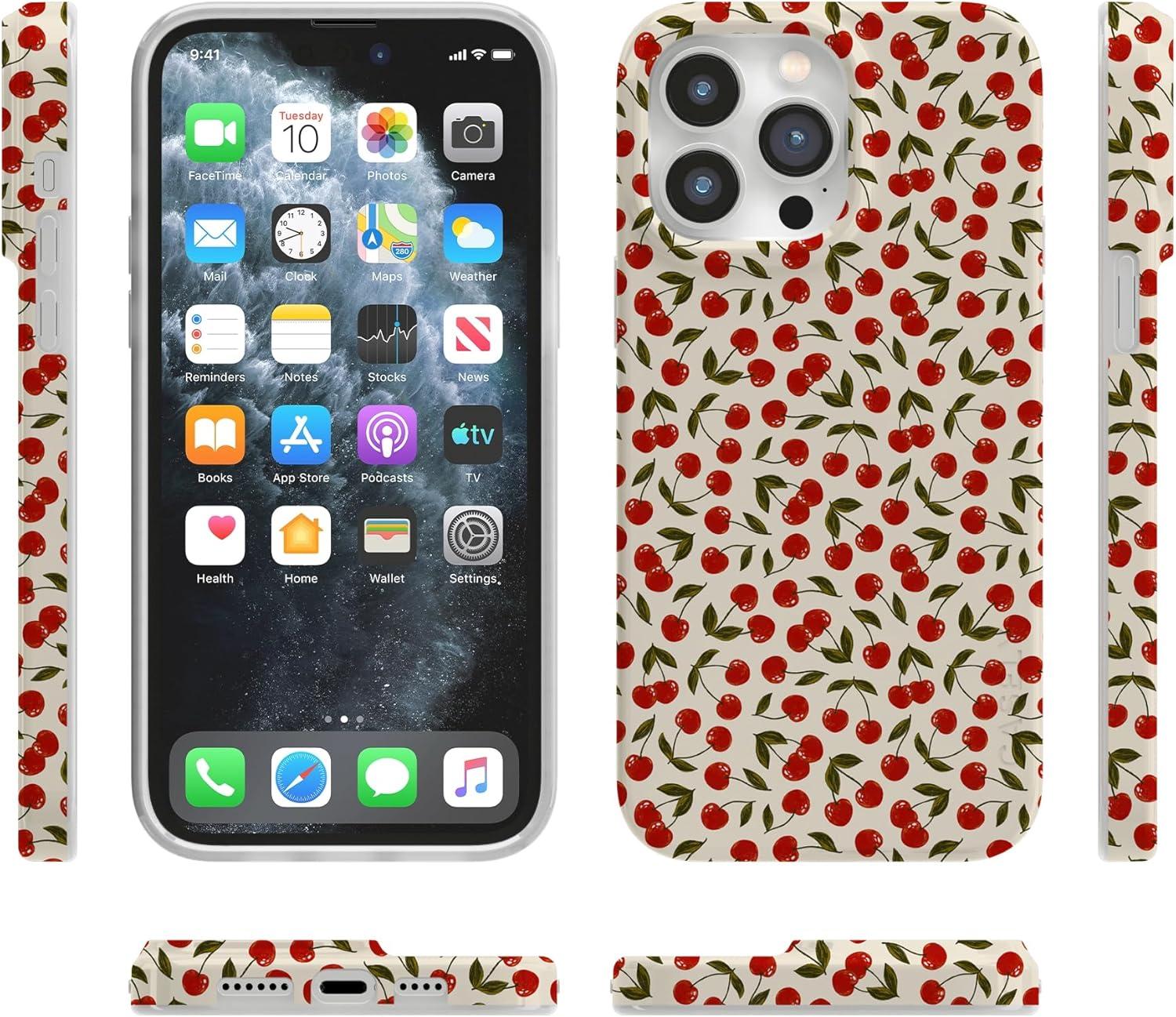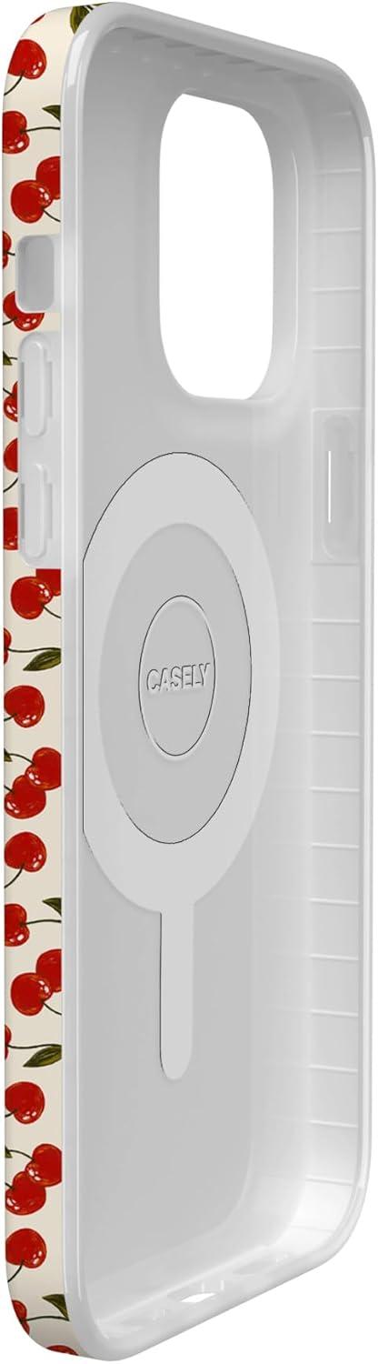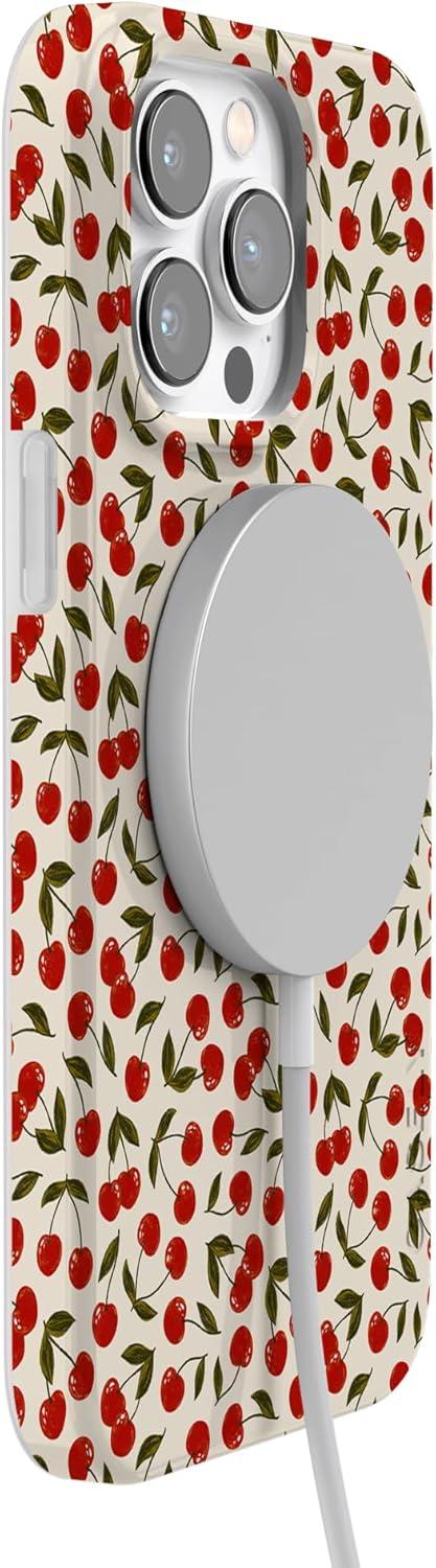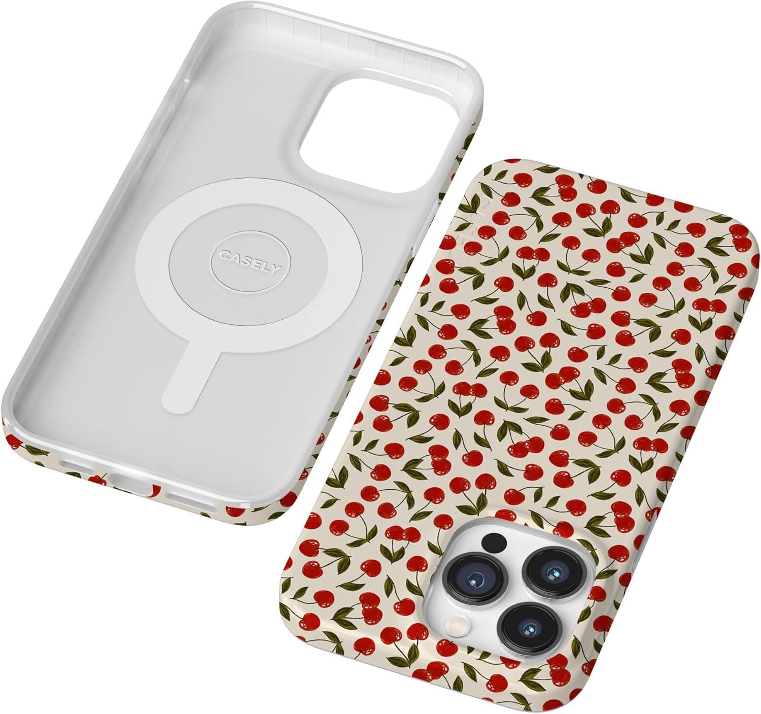 Casely iPhone 14 Pro Case | Sage Garden | Green Floral | Compatible with MagSafe | Classic Ultra-Slim Case Design(Cherry on Top | Red Cherries)