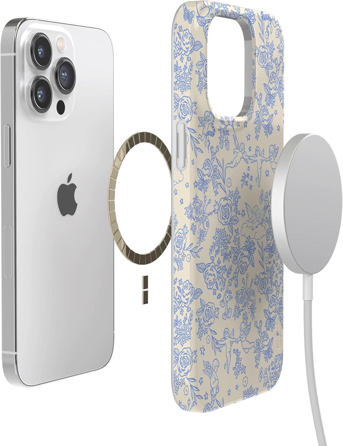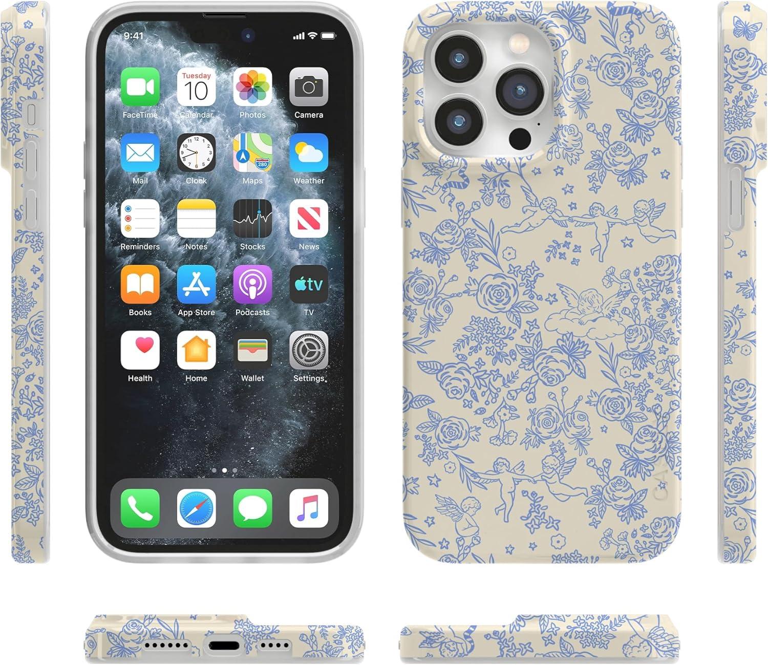 Casely iPhone 14 Pro Case | Sage Garden | Green Floral | Compatible with MagSafe | Classic Ultra-Slim Case Design(Cupid’s Canvas | Periwinkle Floral)