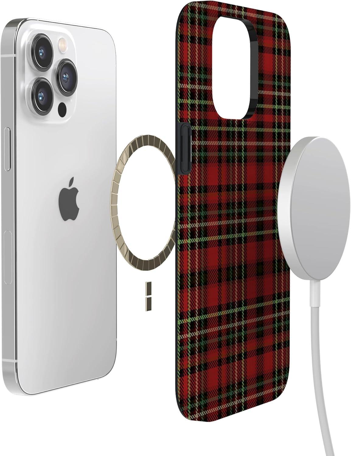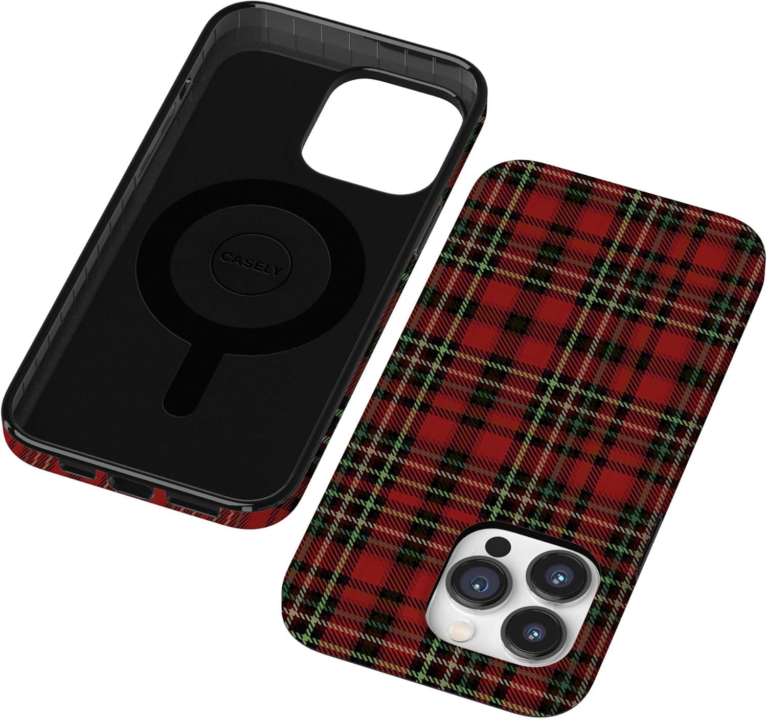 Casely iPhone 14 Pro Case | Sage Garden | Green Floral | Compatible with MagSafe | Classic Ultra-Slim Case Design(Fireside Flannel | Signature Plaid)