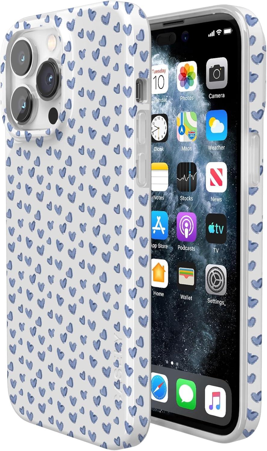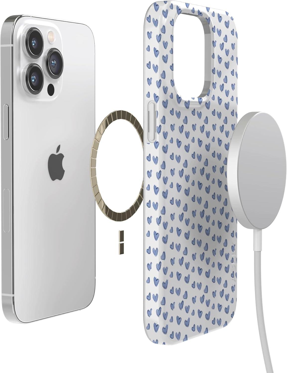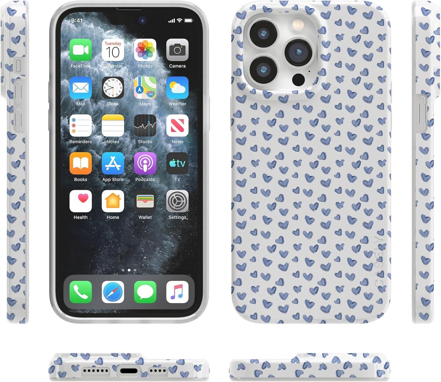Casely iPhone 14 Pro Case | Sage Garden | Green Floral | Compatible with MagSafe | Classic Ultra-Slim Case Design(Lovebug | Blue Hearts)