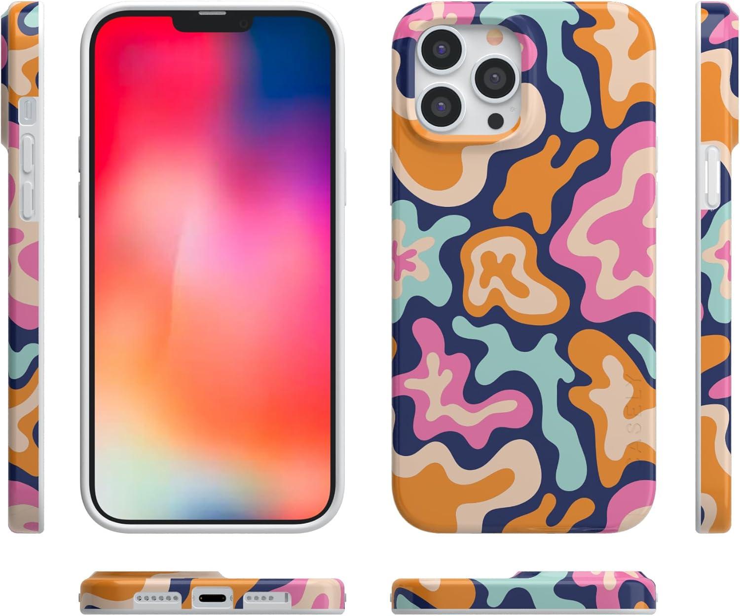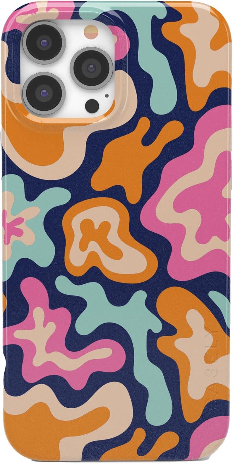 Casely iPhone 14 Pro Case | Sage Garden | Green Floral | Compatible with MagSafe | Classic Ultra-Slim Case Design(Midnight Color Splash | Abstract Retro)