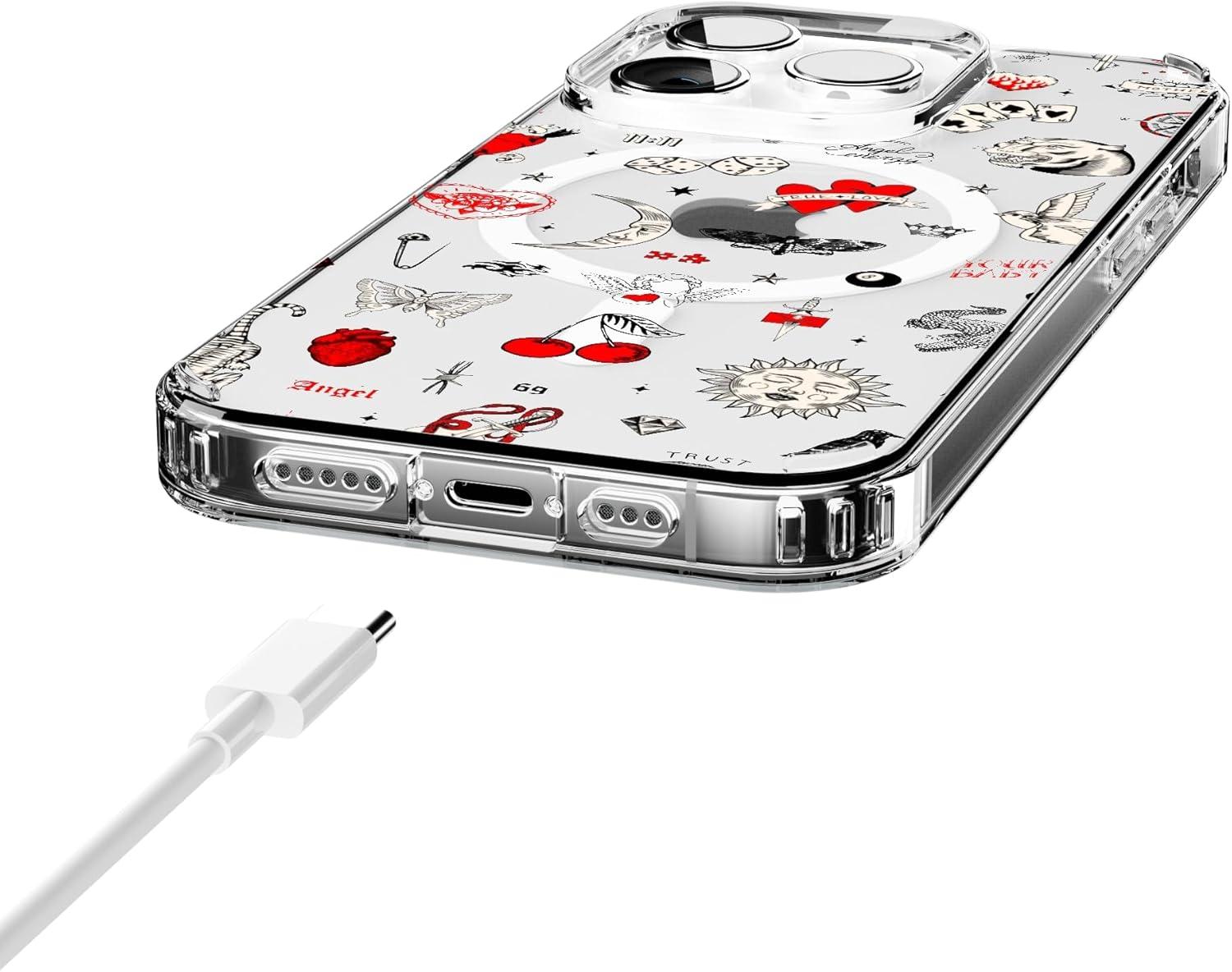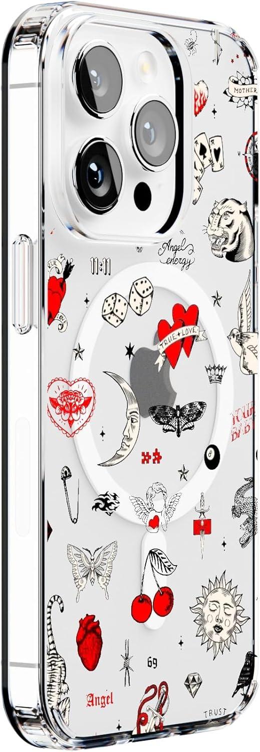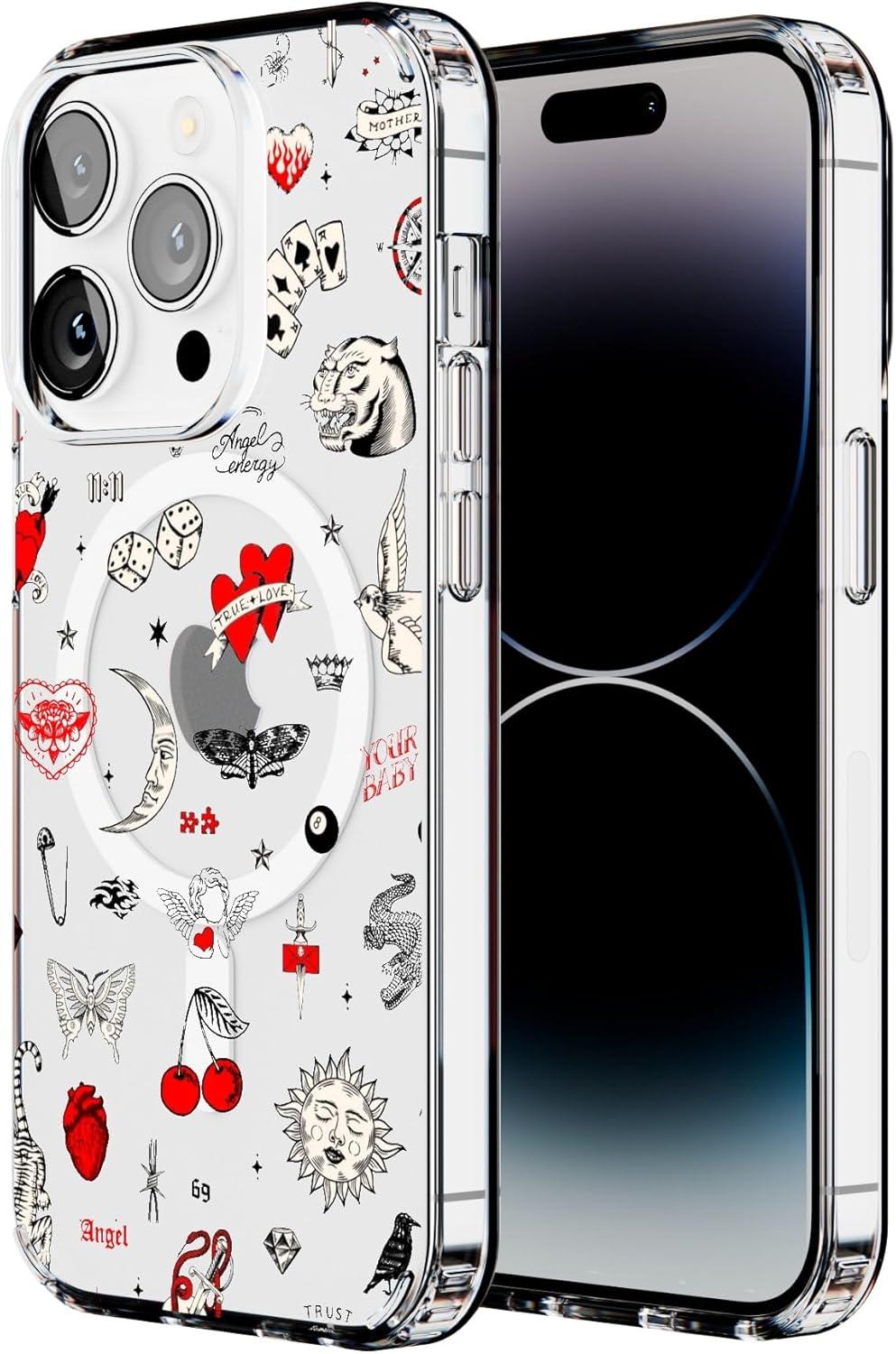 Casely iPhone 14 Pro Case | Sage Garden | Green Floral | Compatible with MagSafe | Classic Ultra-Slim Case Design(Not a Phase | Clear Flash Tattoo)